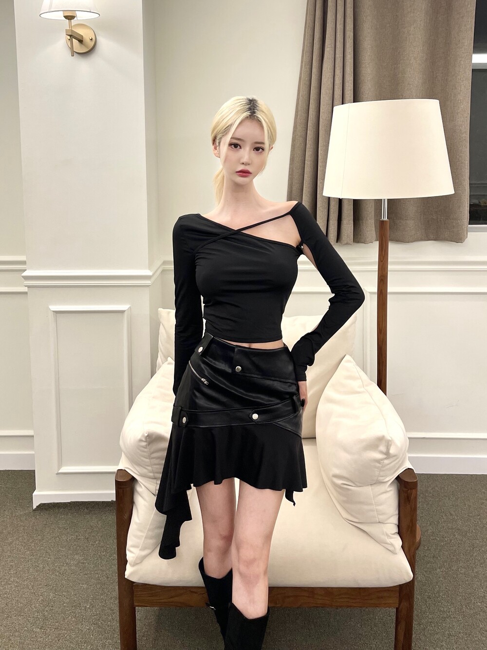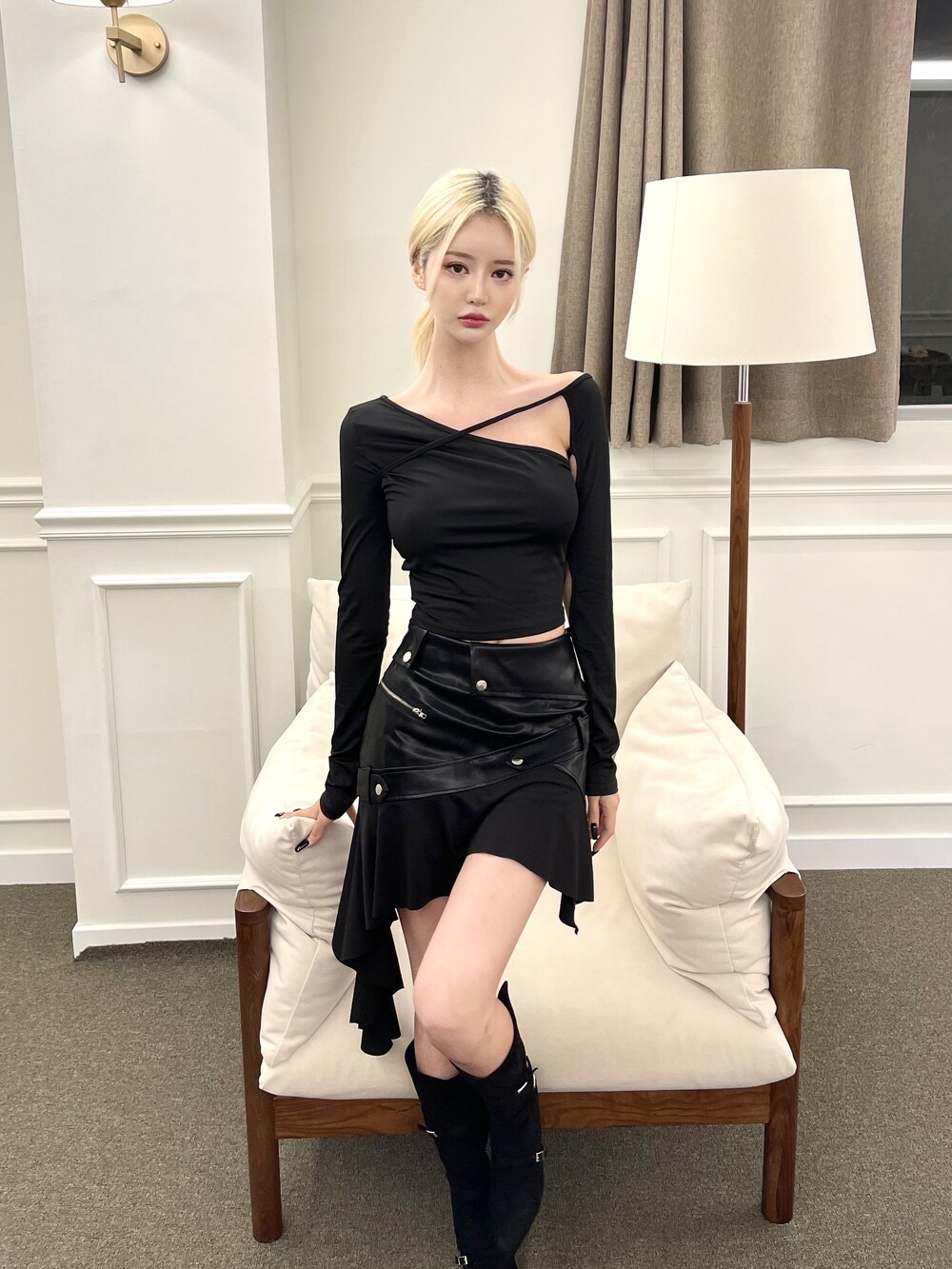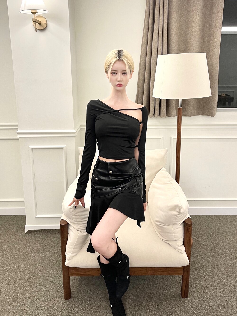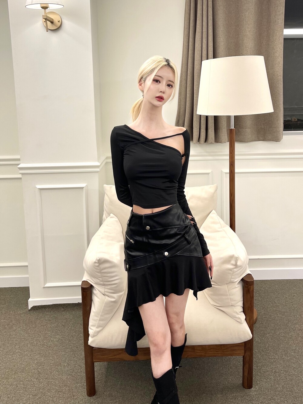 라이더자켓 모티브의 윗단 레더 플랩 디테일과