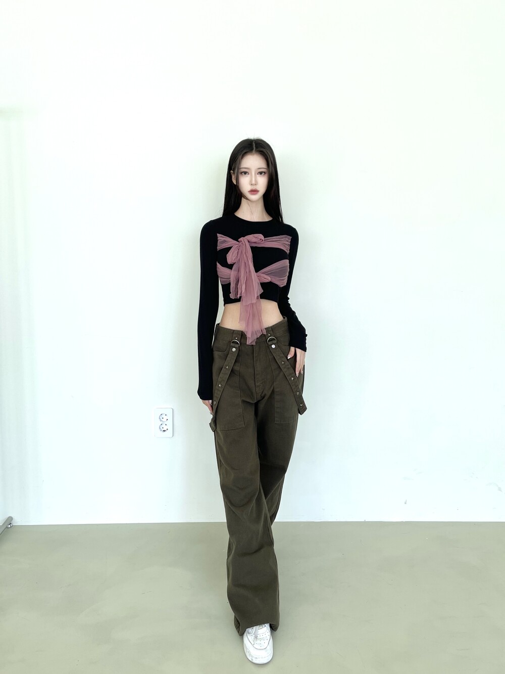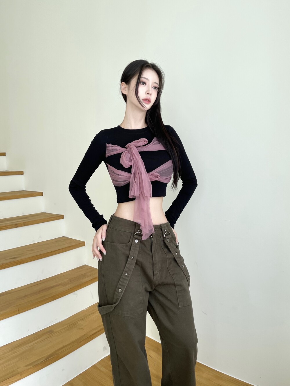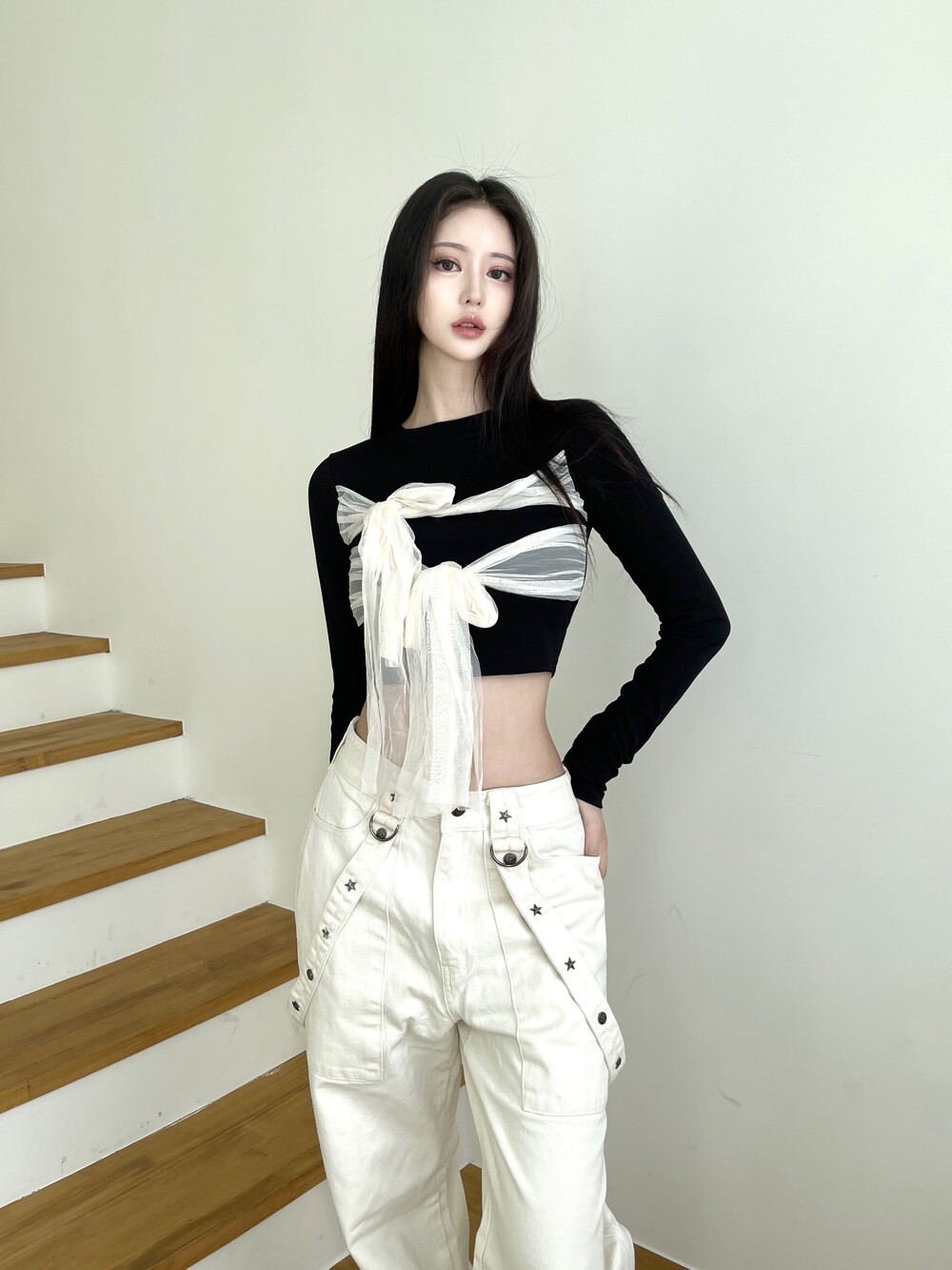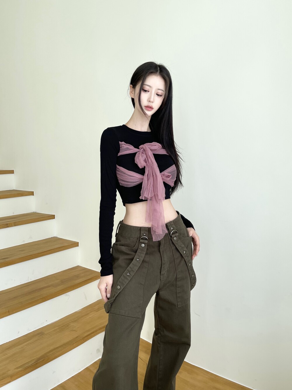 슬림 크롭 핏감으로 여리한 핏감 연출