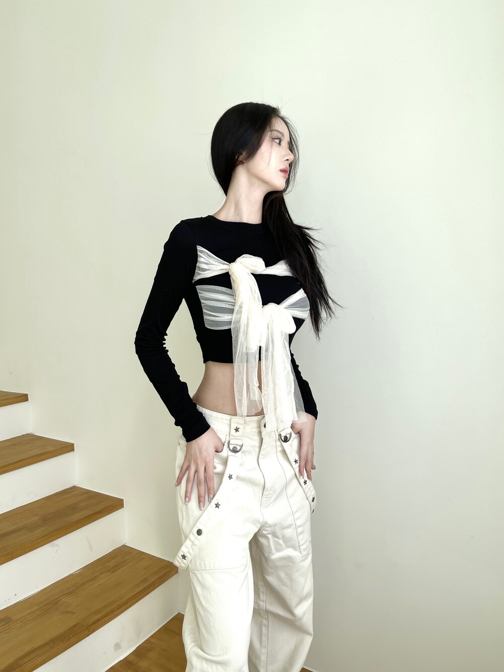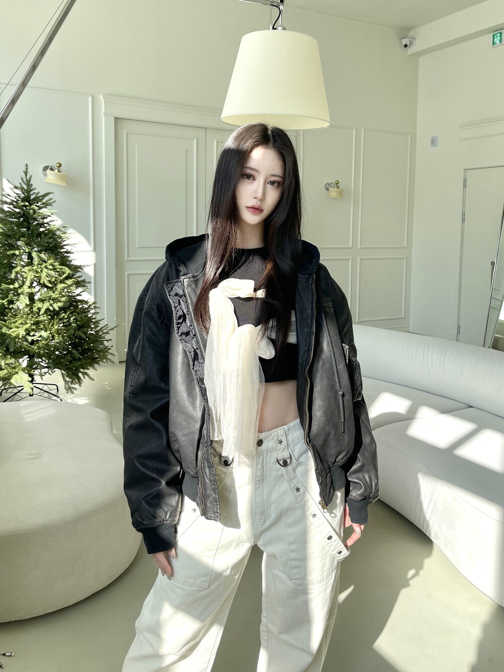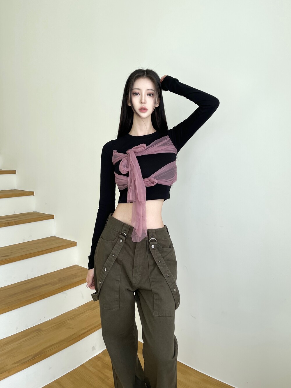 슬림 크롭 핏감으로 여리한 핏감 연출