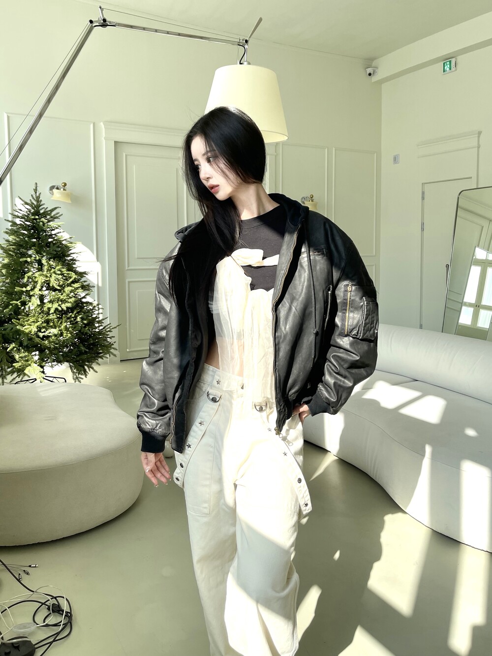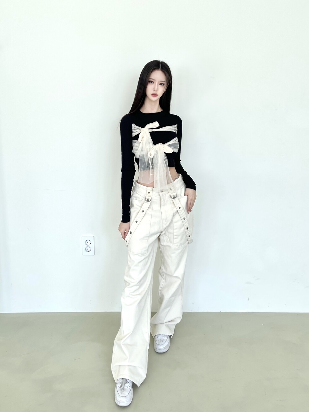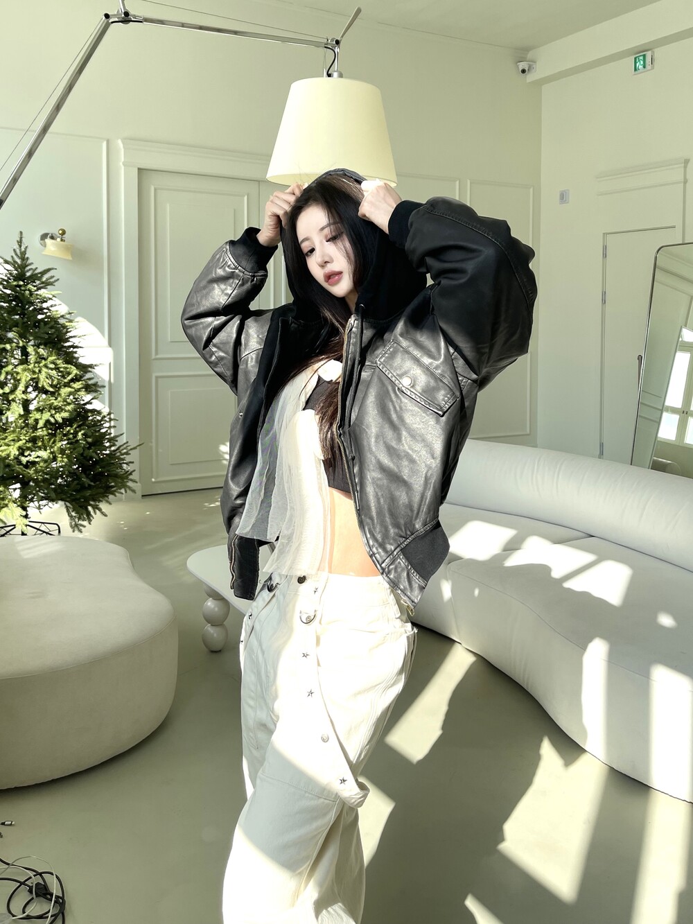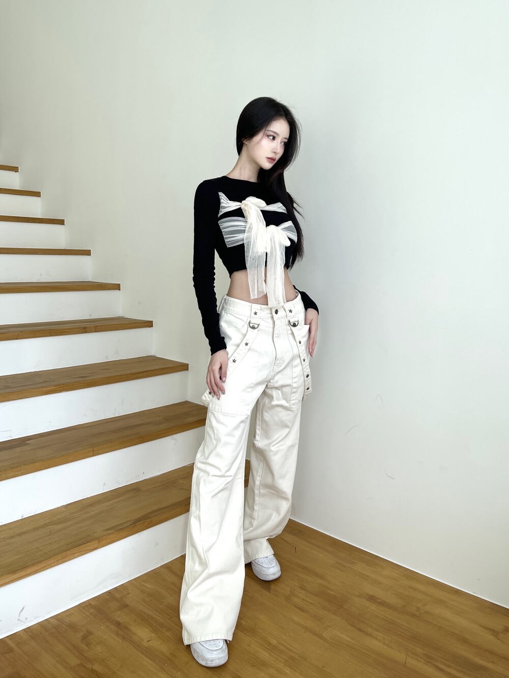 슬림 크롭 핏감으로 여리한 핏감 연출
