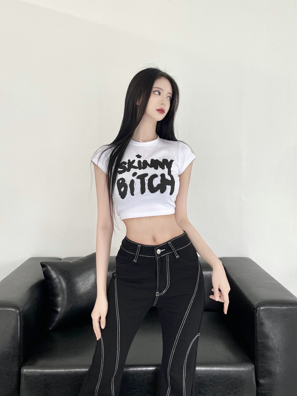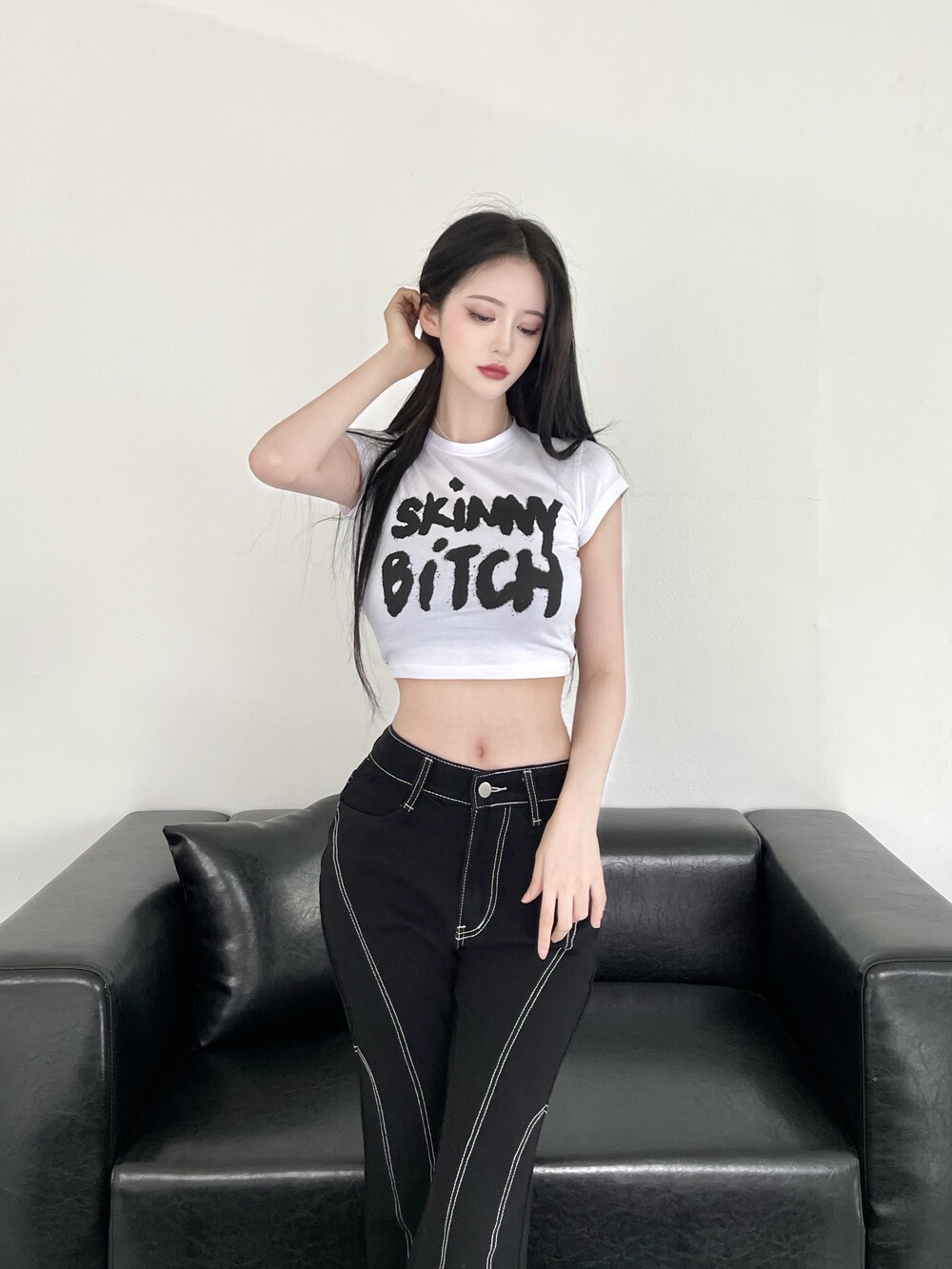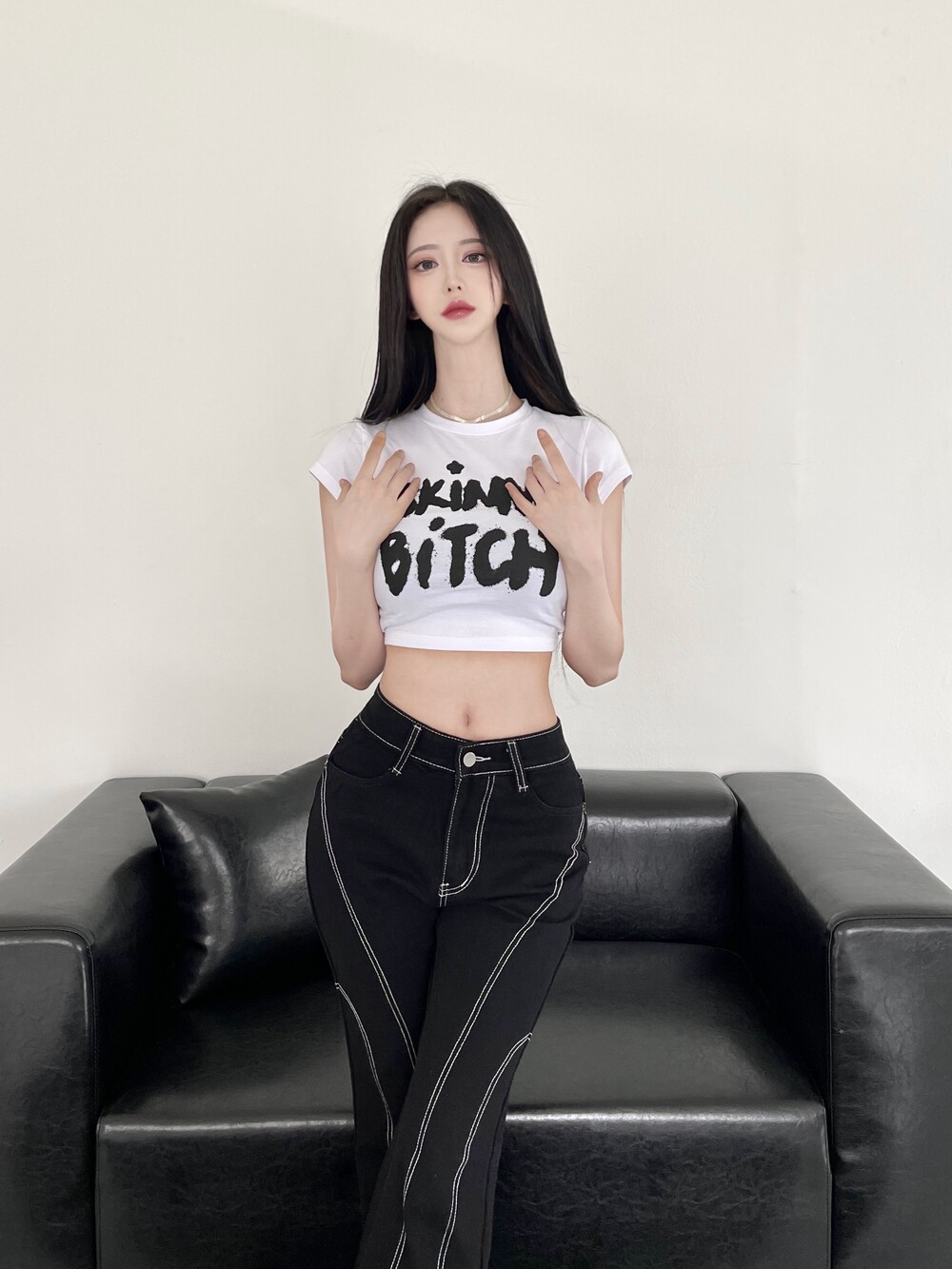 마이크로 크롭 라인으로 더욱 허리를 강조하면서