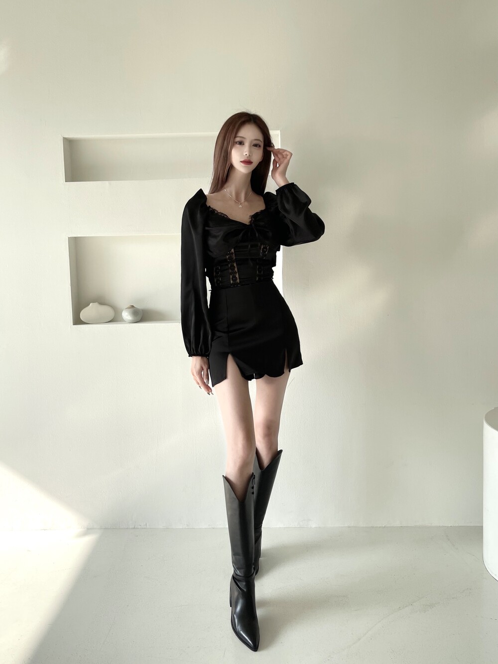 하이웨스트, 측면 지퍼 오픈 클로징으로 핏을 더욱 살려줍니다.