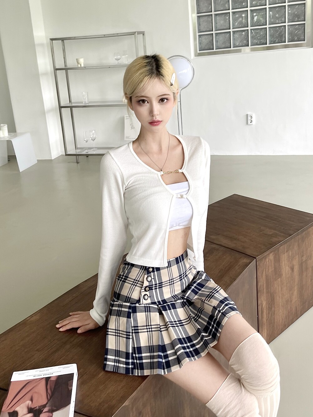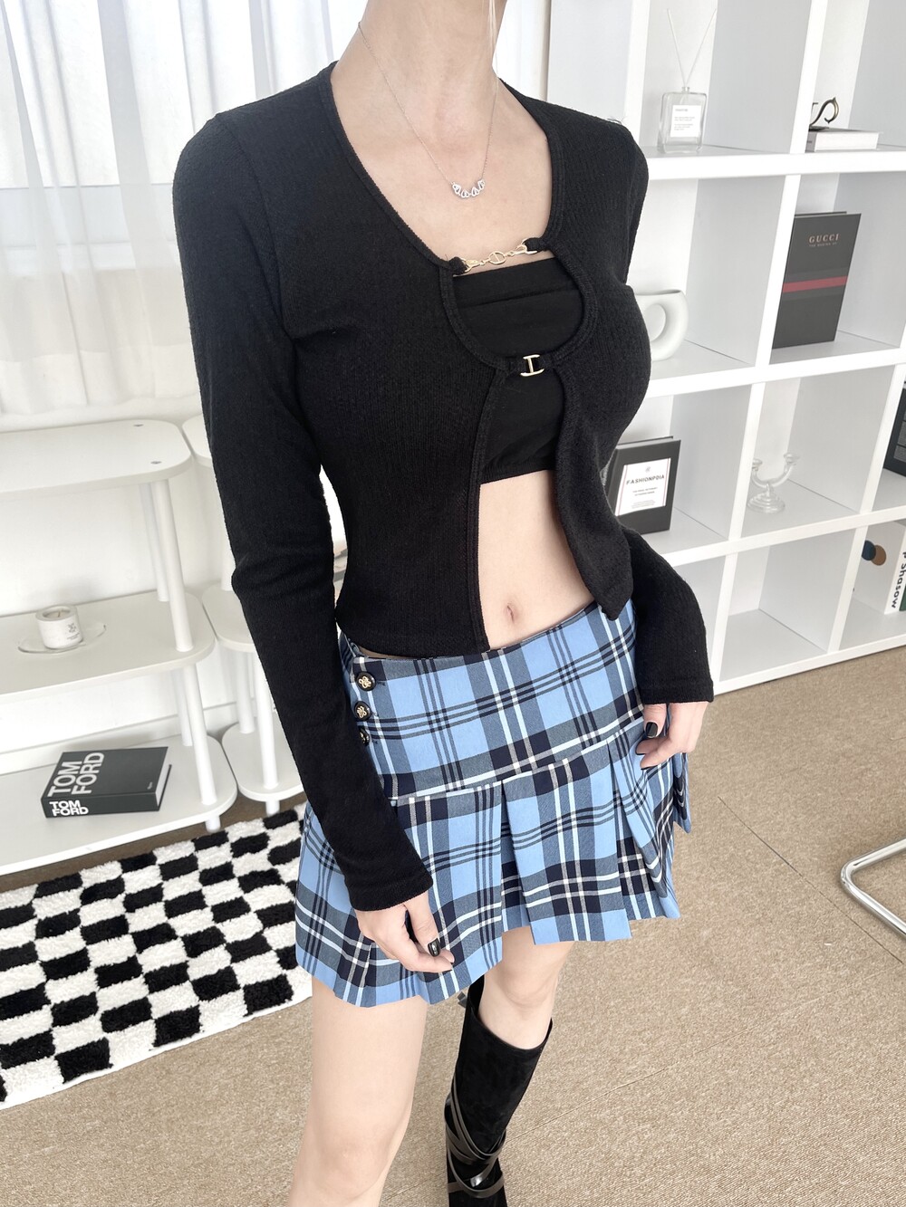 더블 체인 크롭 가디건