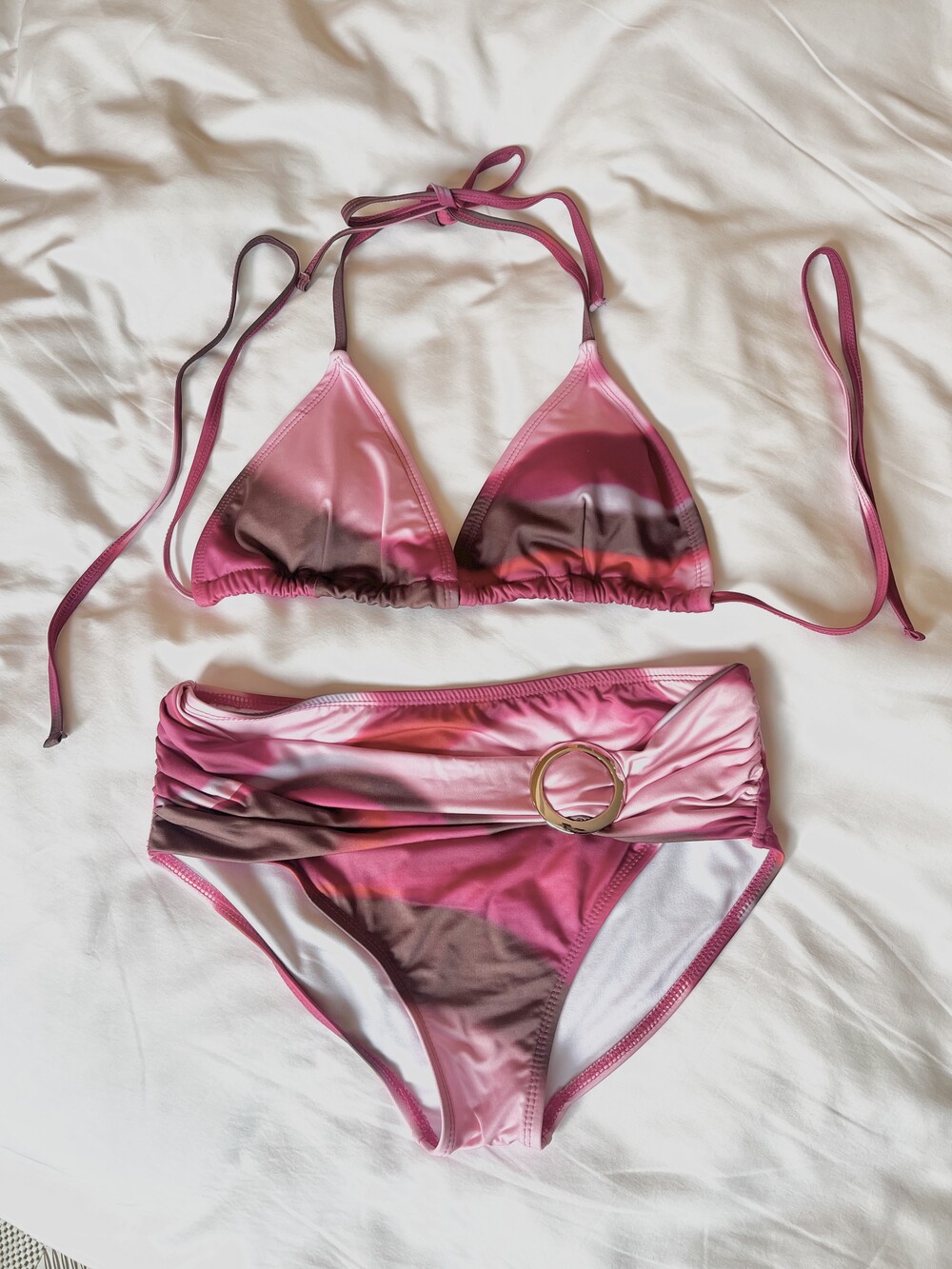 홀터 마블프린팅 미들라이즈 버클 비키니