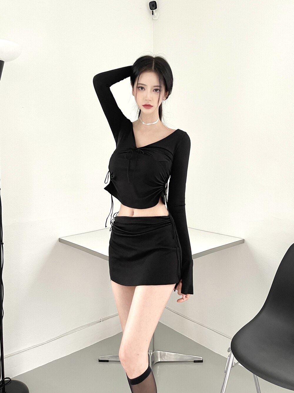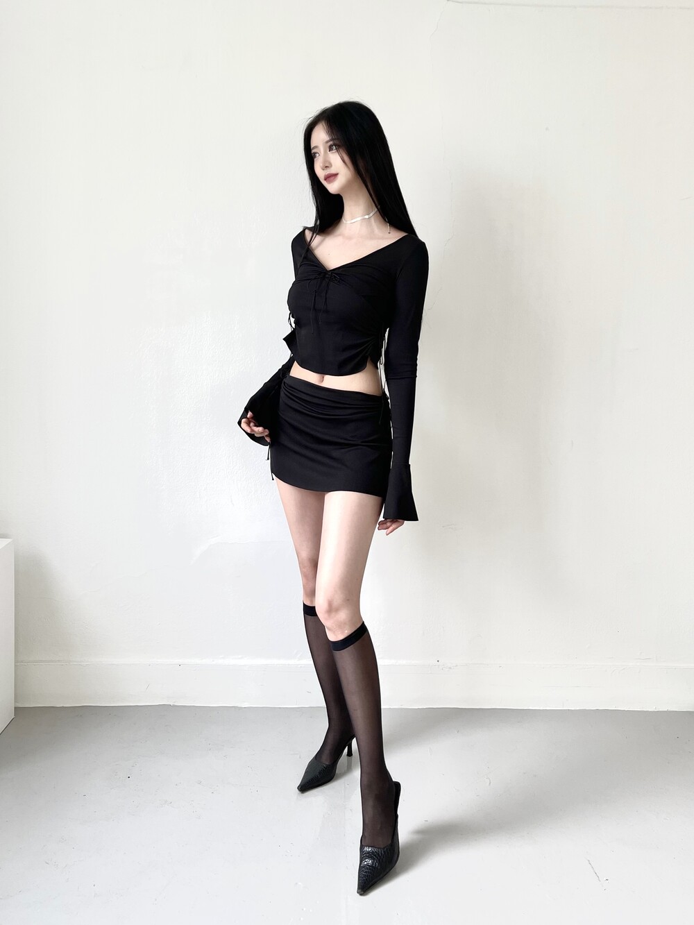 [893. Cota shirring slit ribbon mini sk (2color)]
