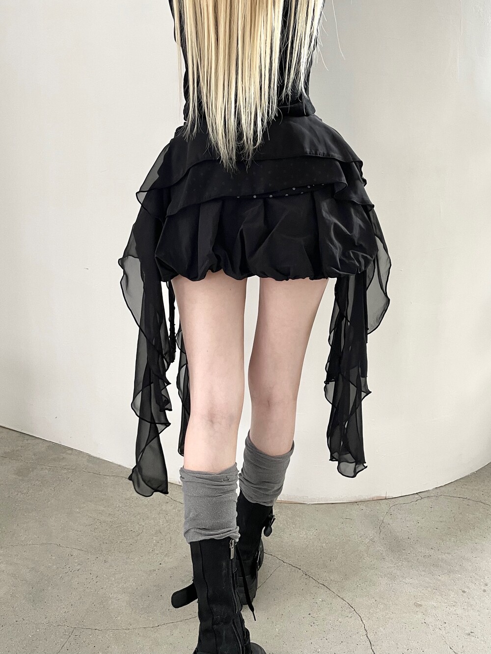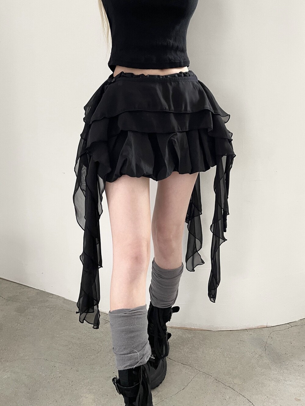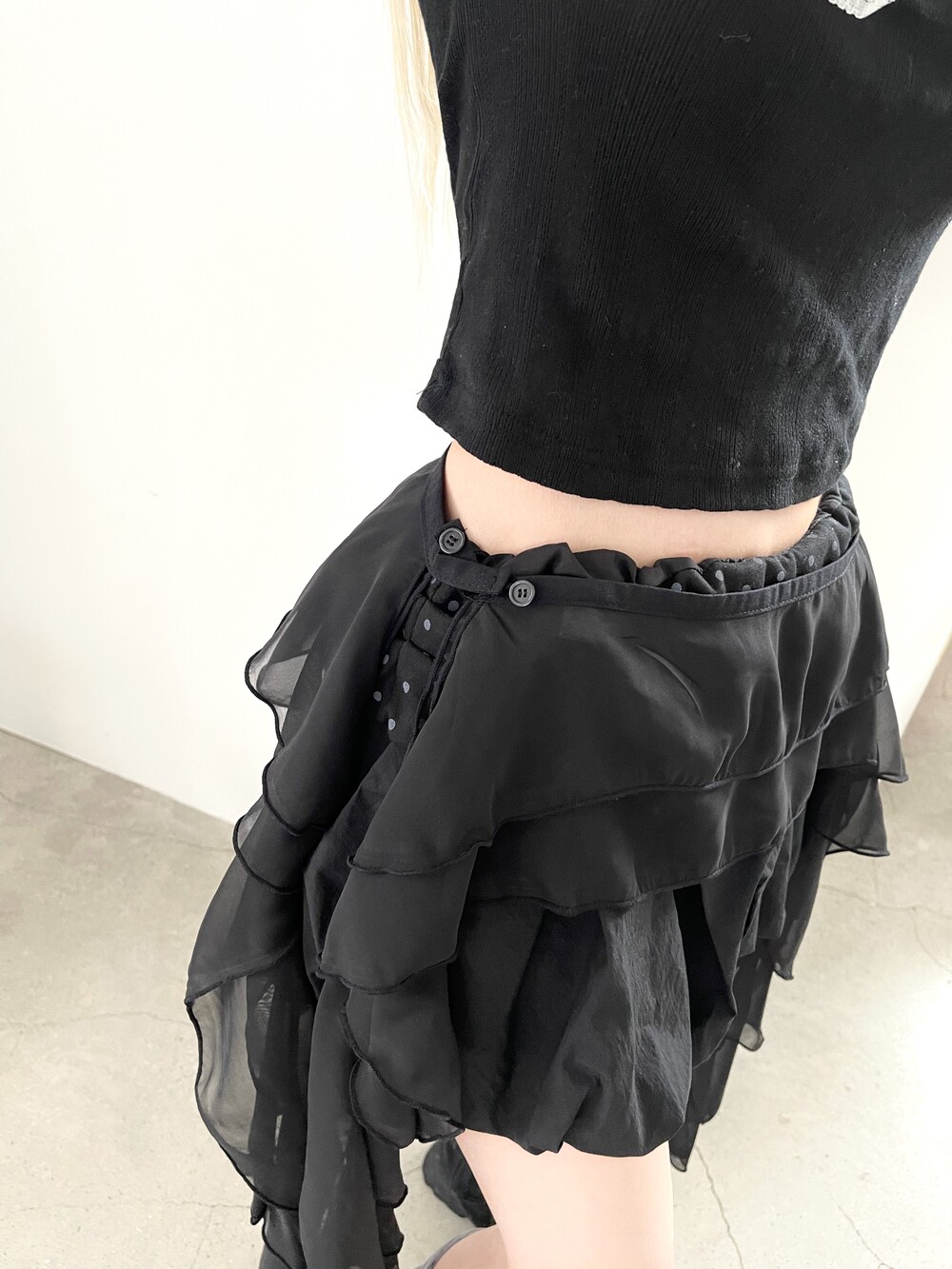 1461. 뮤뮤 프릴 러플 롱 쉬폰 레이어드 커버 스커트 (2color)