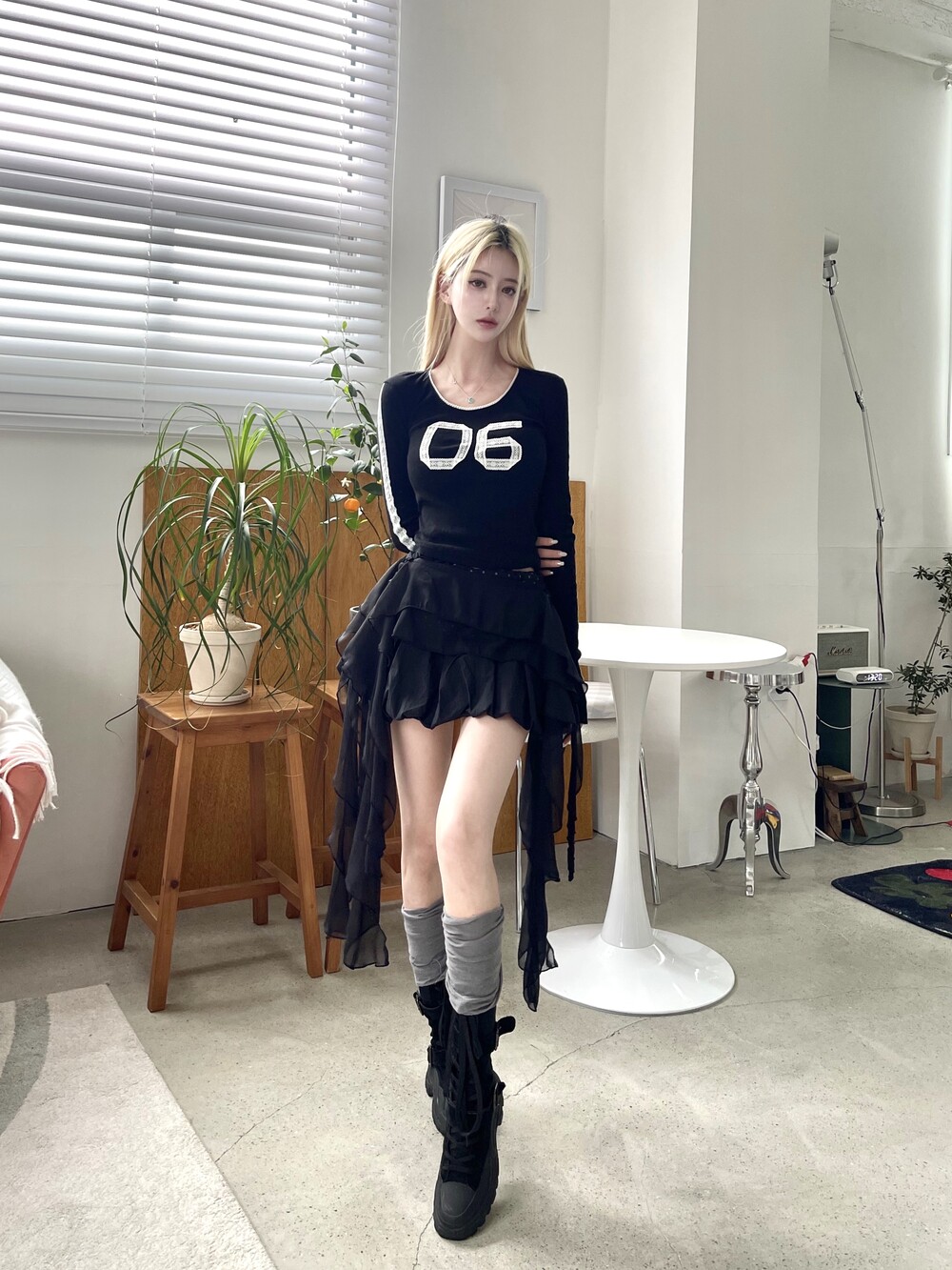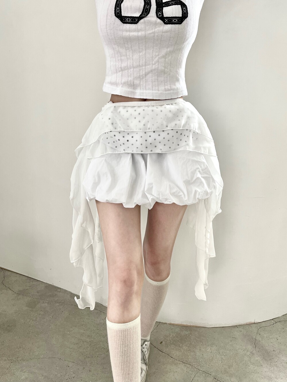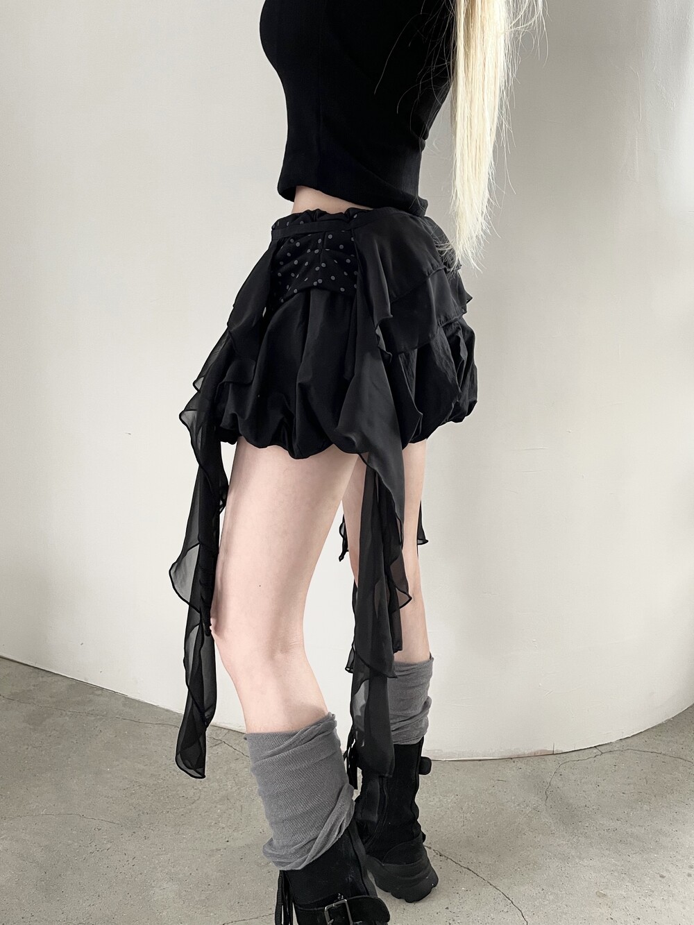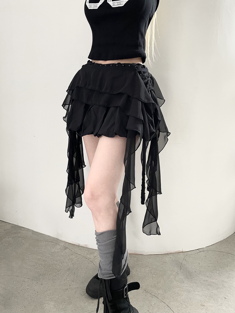 1461. 뮤뮤 프릴 러플 롱 쉬폰 레이어드 커버 스커트 (2color)