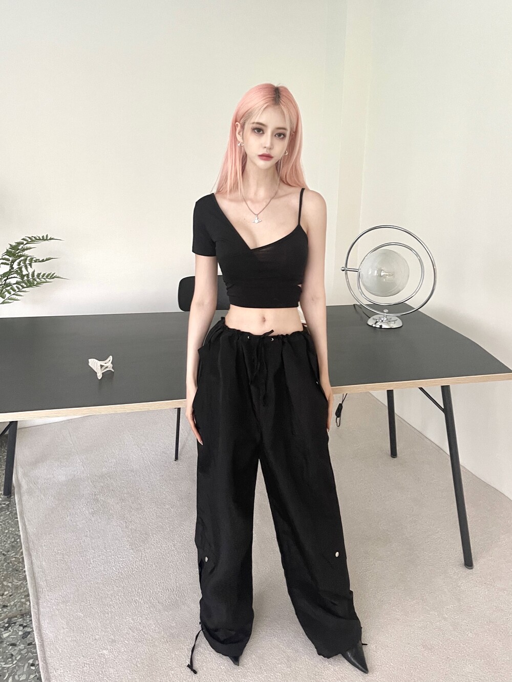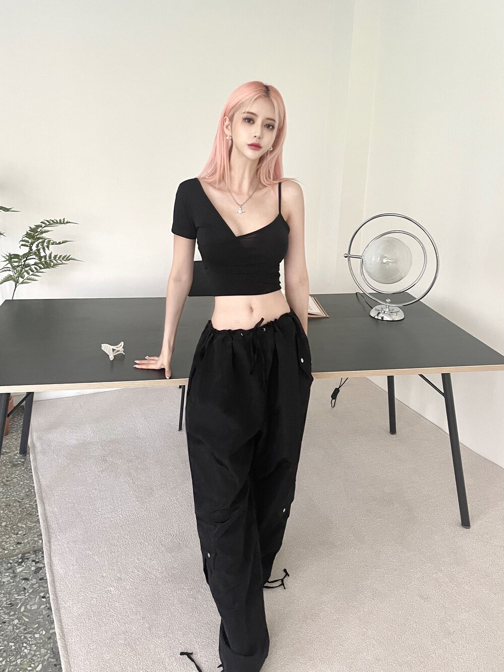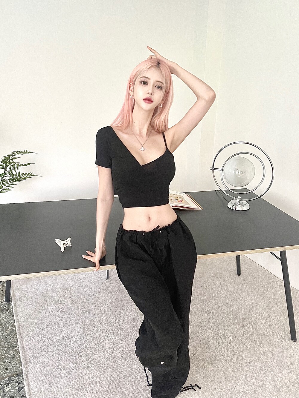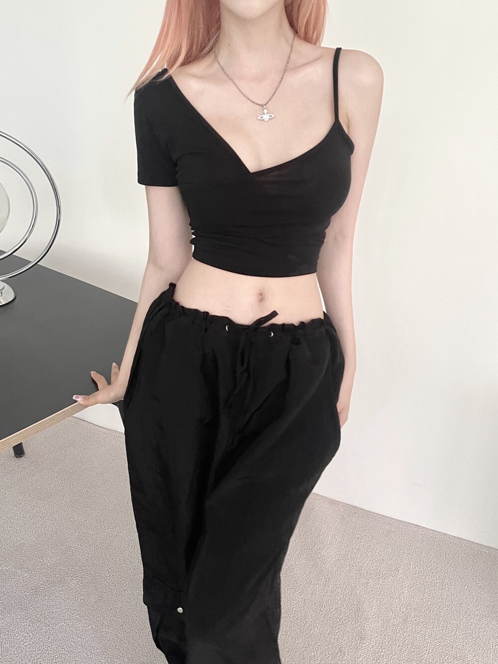 언발 원숄더 더블 레이어드 크롭 티셔츠
