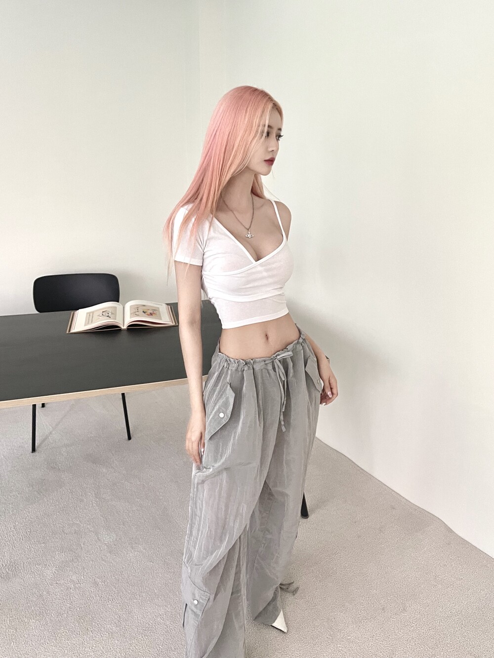 밑으로 내릴 시 허리 윗선이 트임이 보이게 연출도 가능한