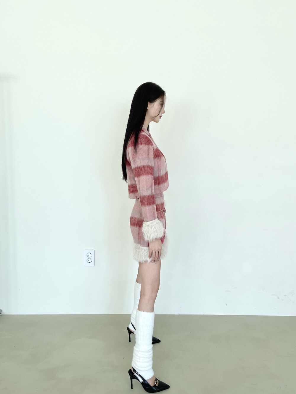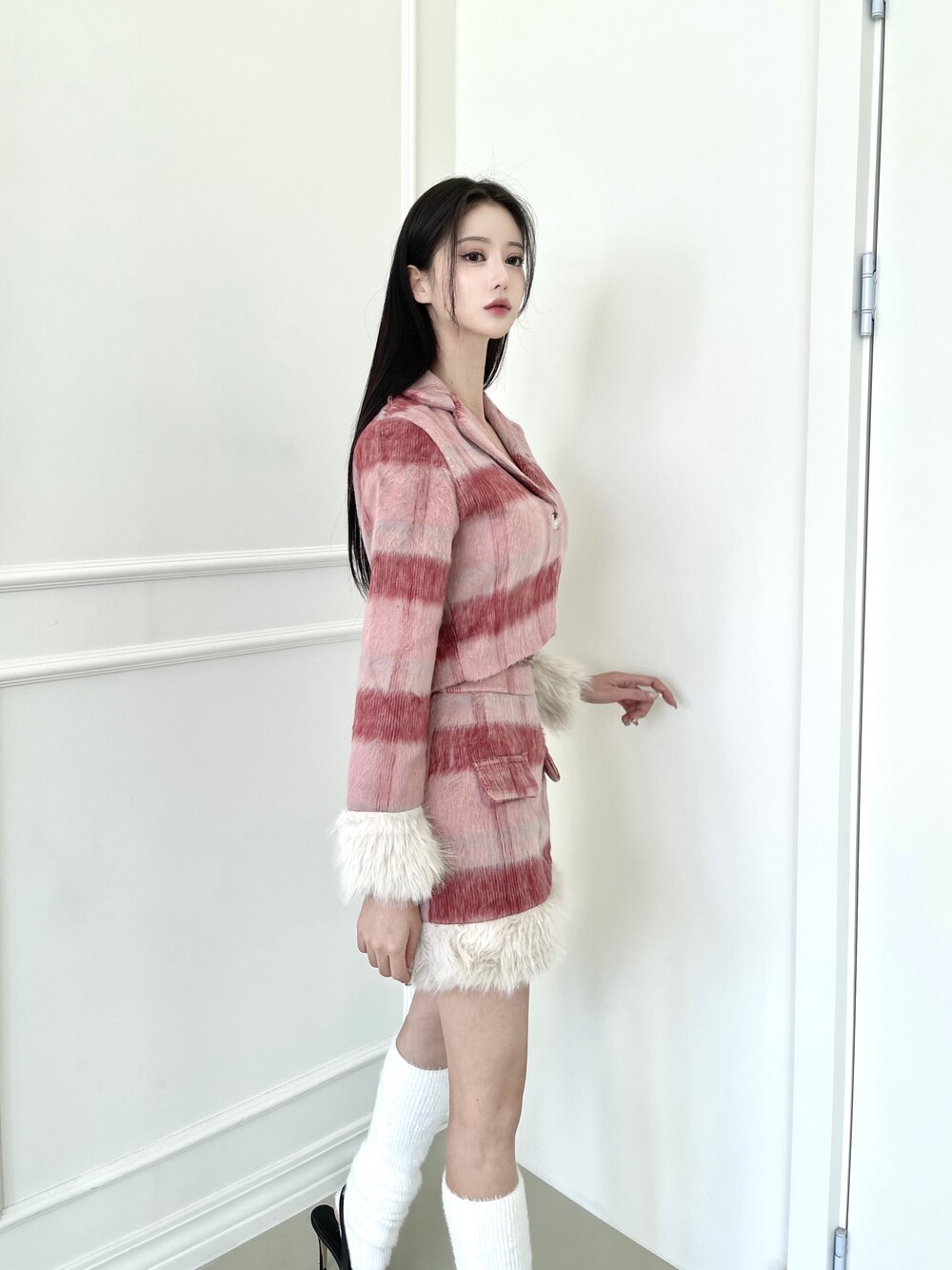 상의 소매와 치마 밑단 퍼 트리밍 포인트