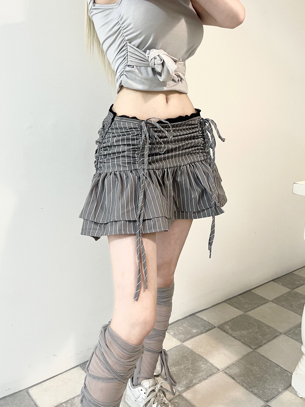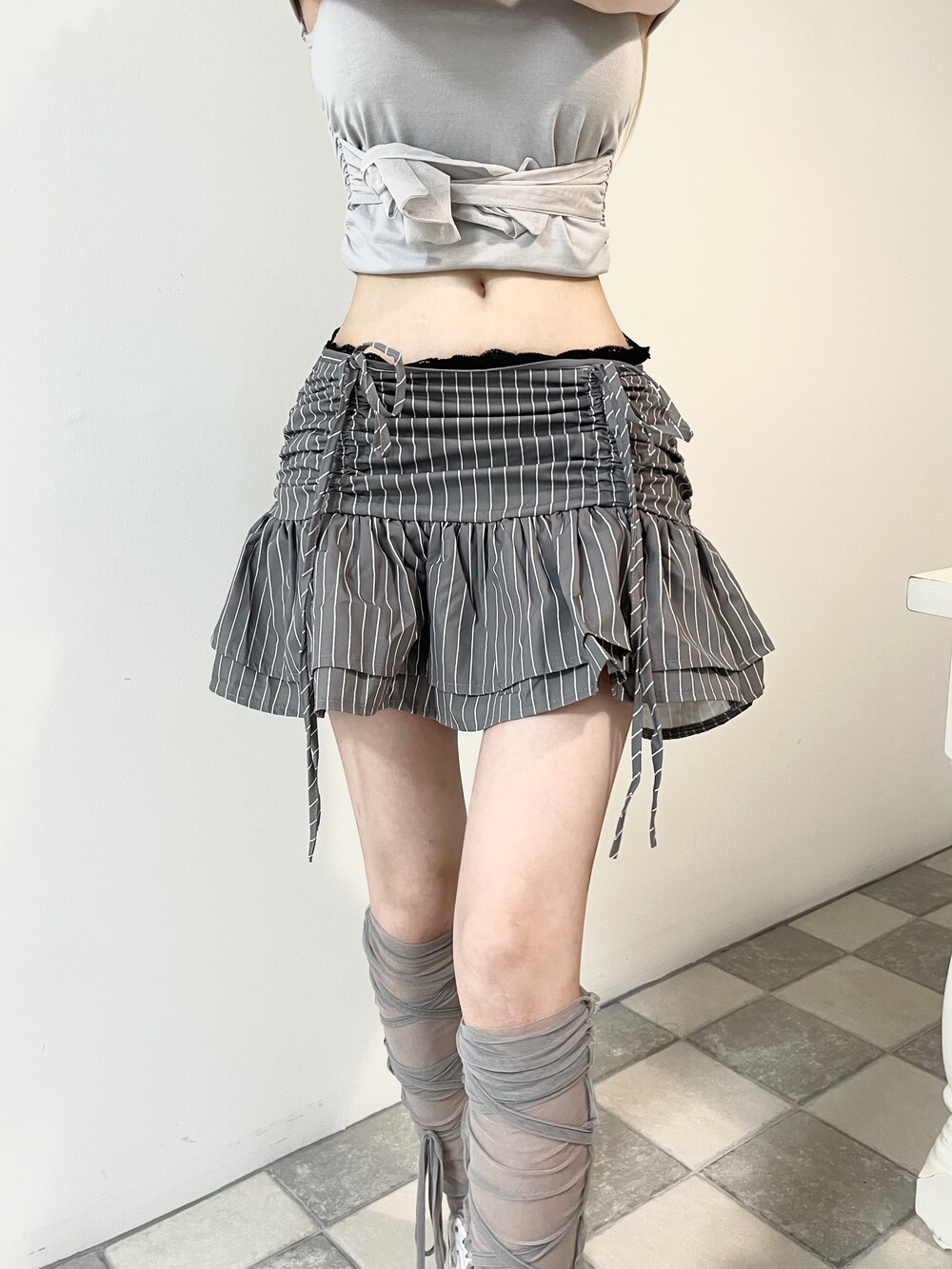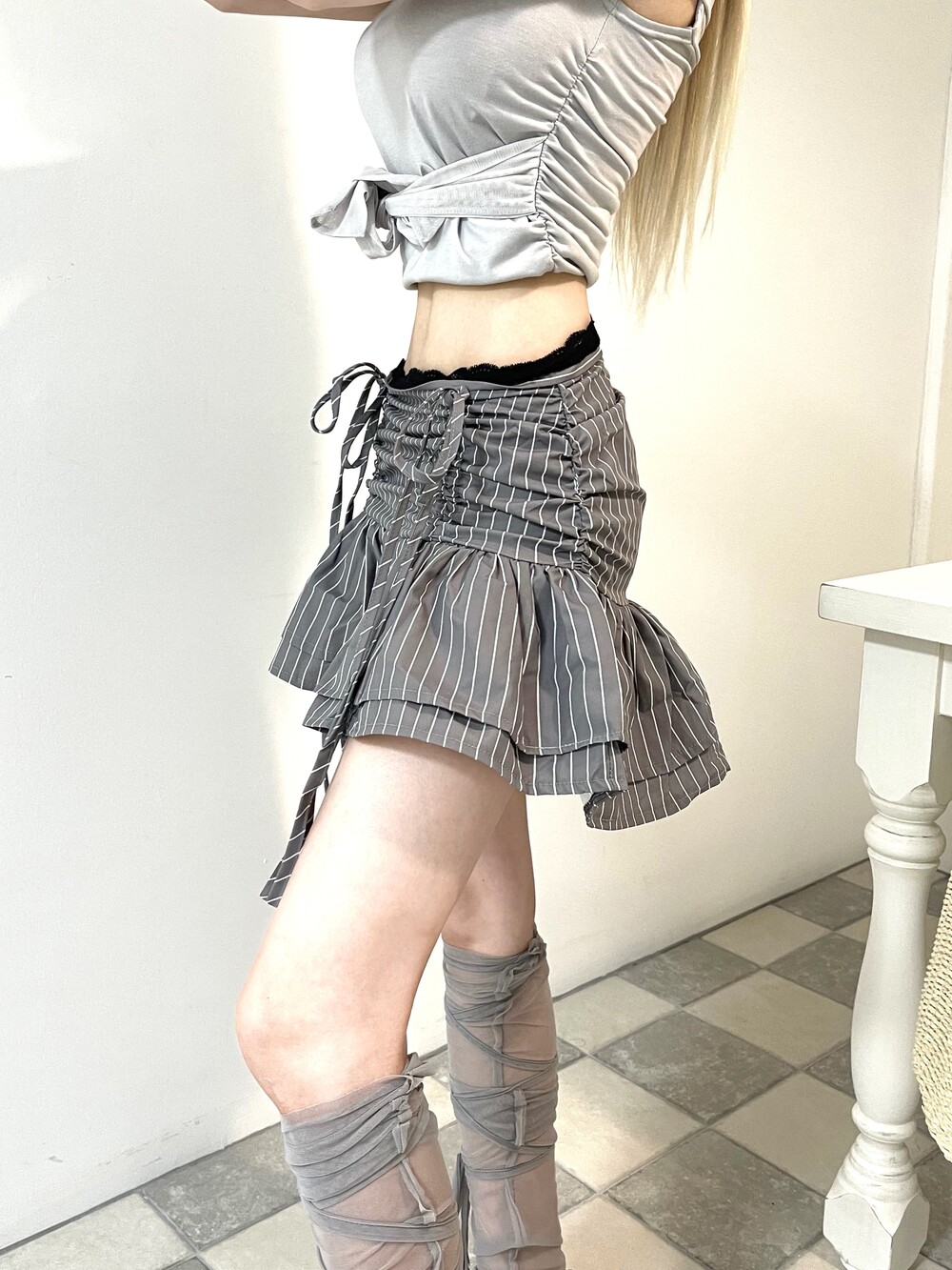 드레이프 셔링 스트라이프 리본 캉캉 미니 스커트