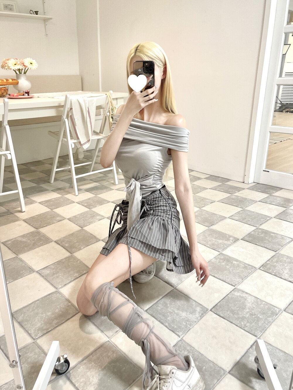 러블리 힙한 무드감의 드레이프 포인트 미니 스커트