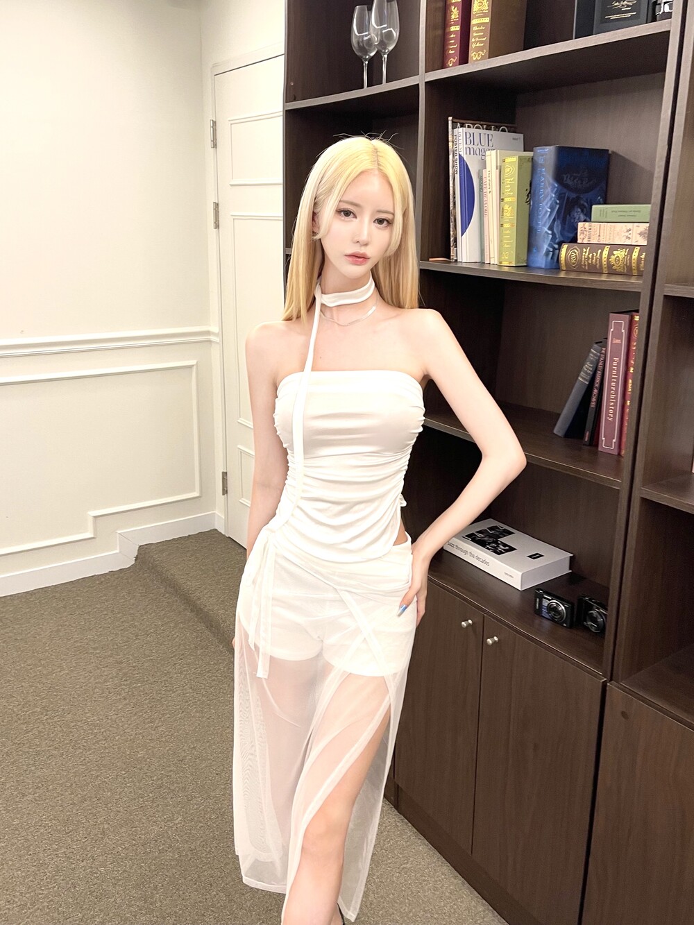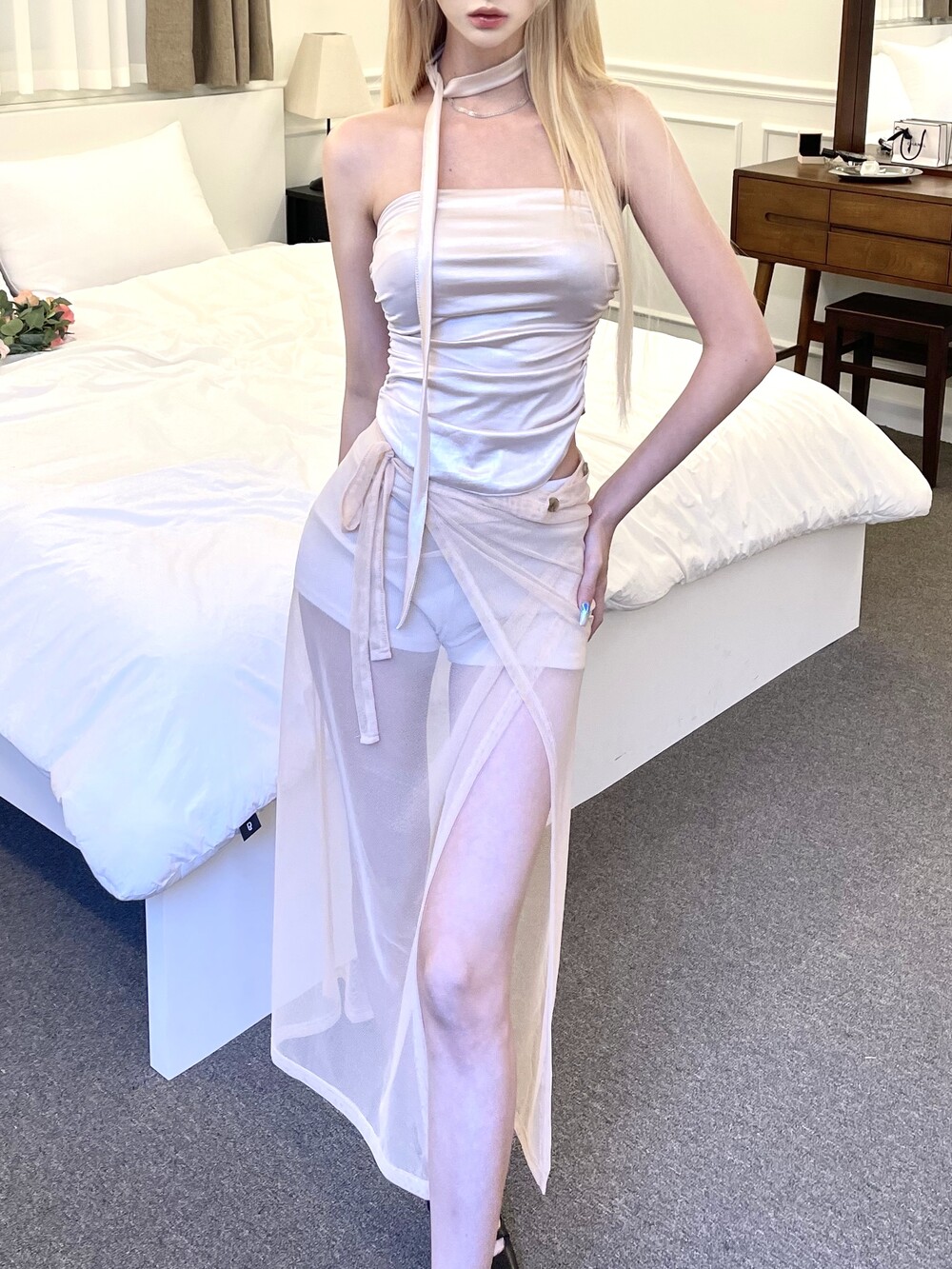 1326. Wrap see through strap long cover sk (4color)