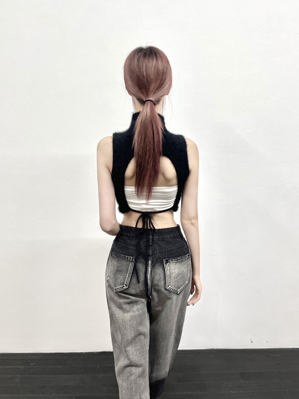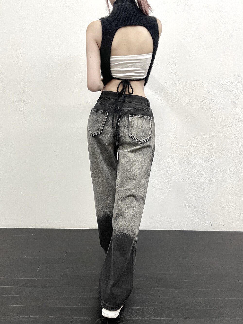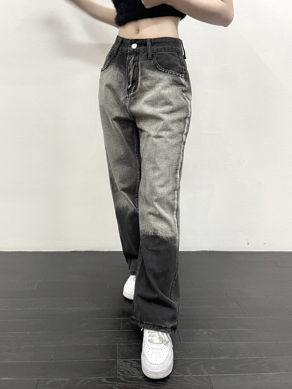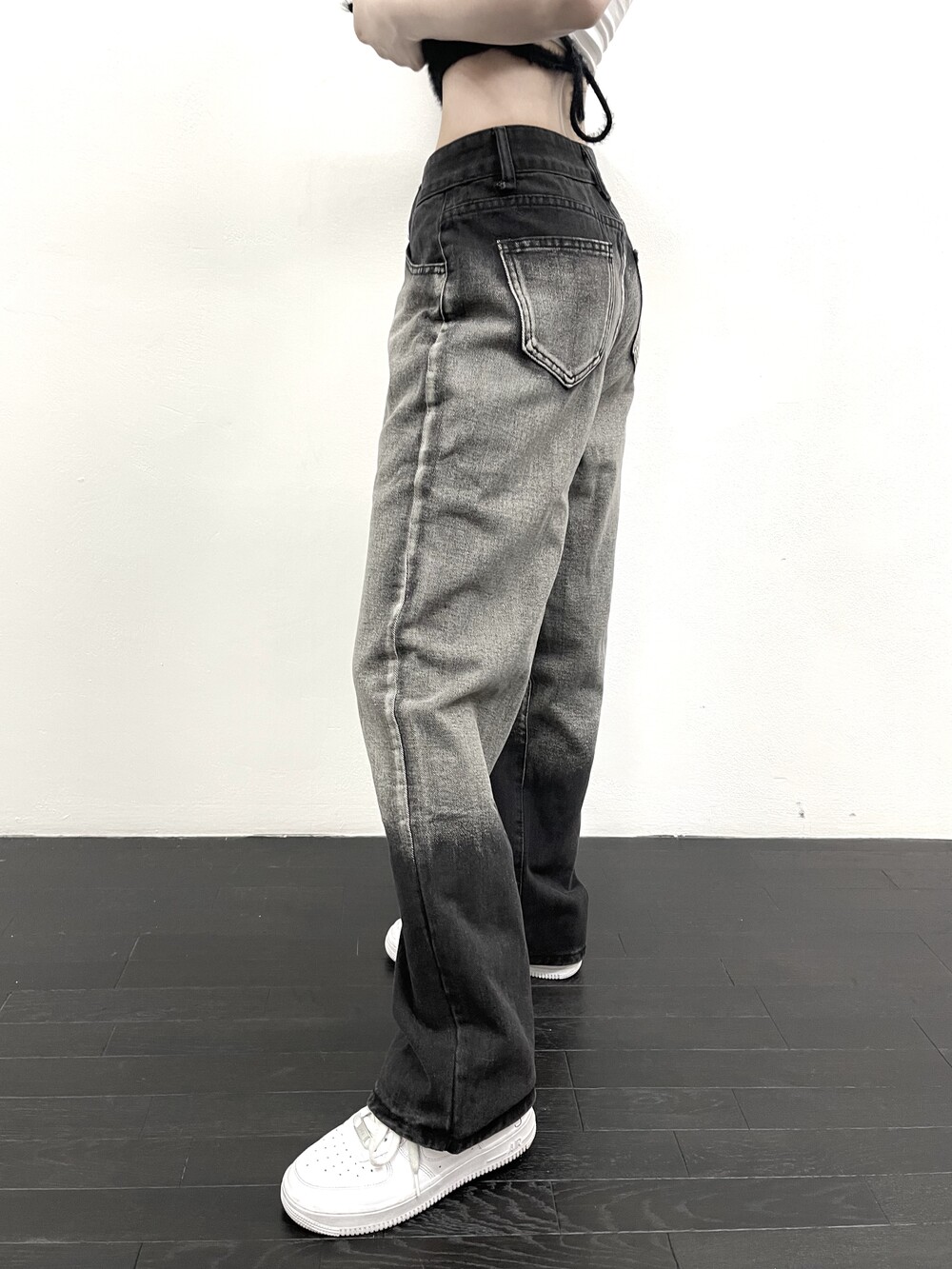그라데이션 터프 워싱 흑청 와이드 팬츠
