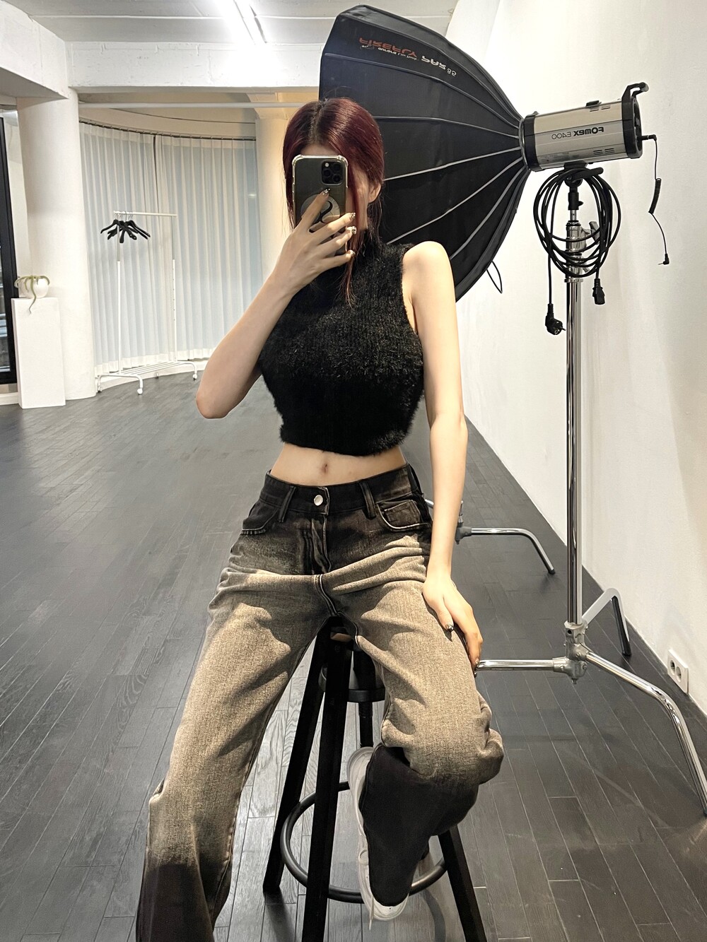 흑청바탕에 화이트워싱이 들어가있는 세련되고 힙한 무드의 와이드데님