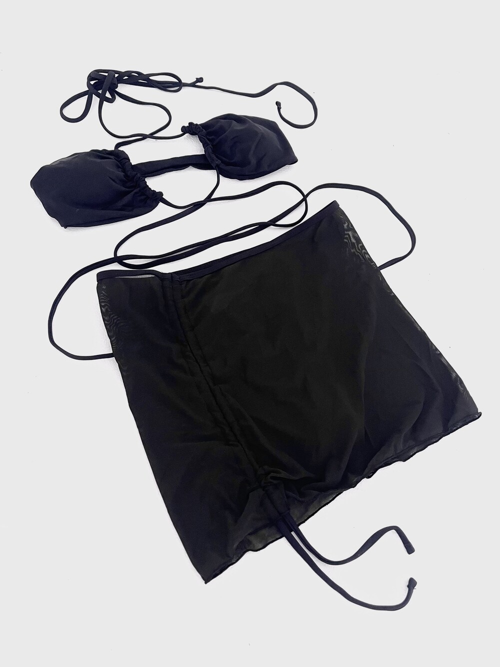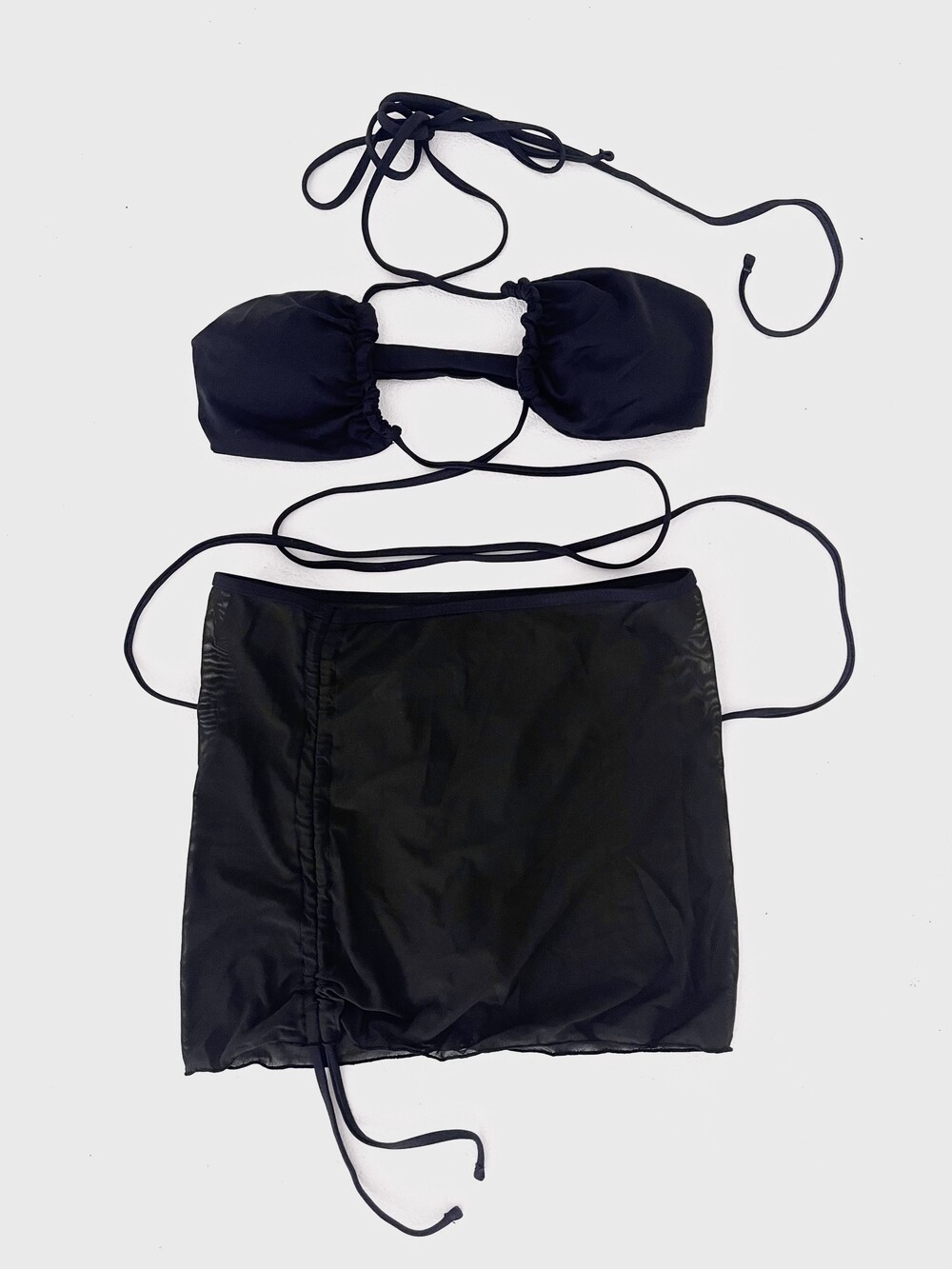 스트랩 비키니 / 시스루 셔링 스커트 3pc