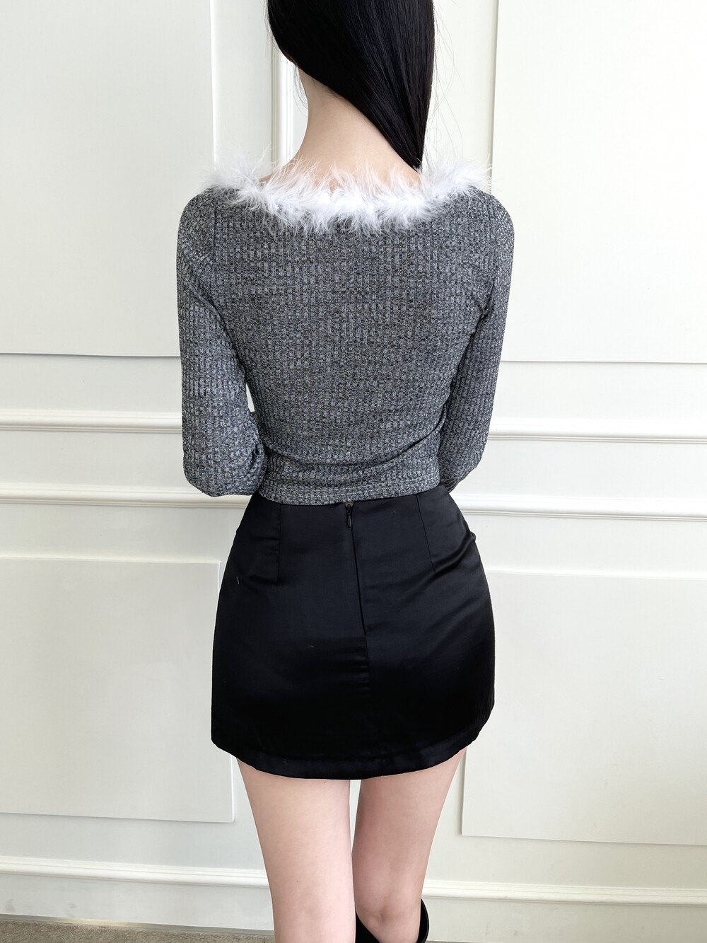 넥라인과 소매 끝 퍼 트리밍 디테일
