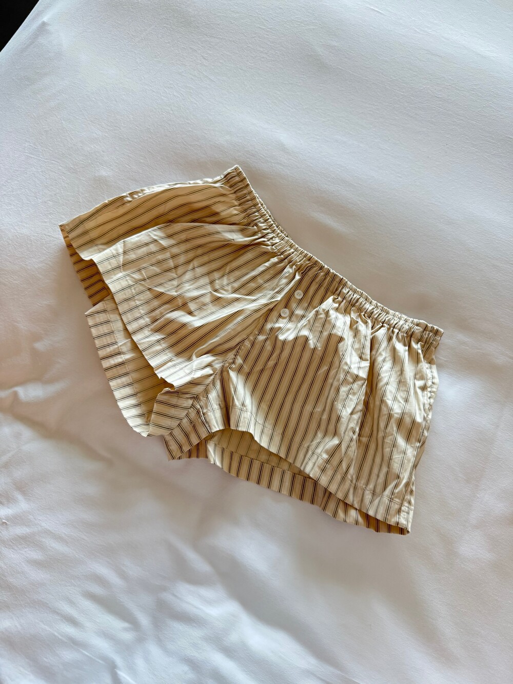 코지한 무드의 스트라이프 컬러 조합이 돋보이는 코튼 쇼츠입니다.