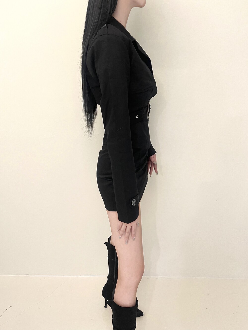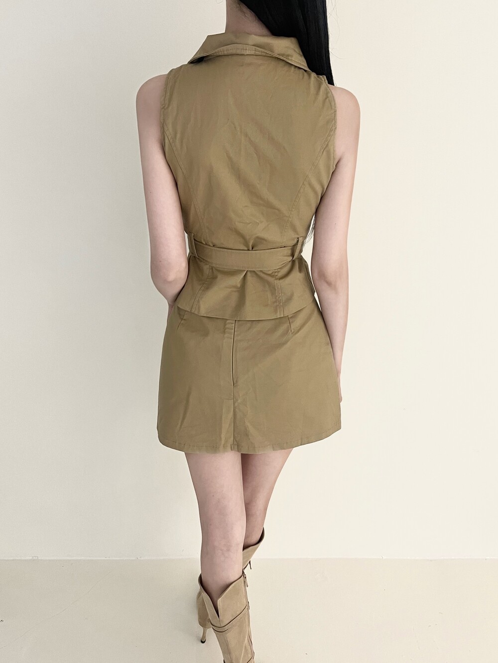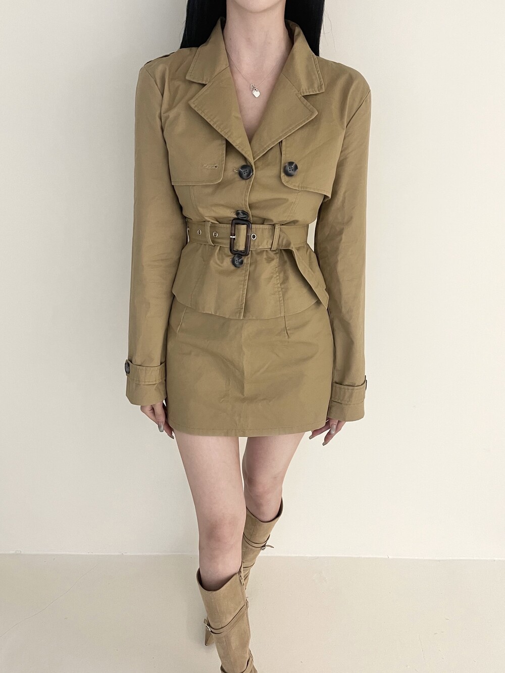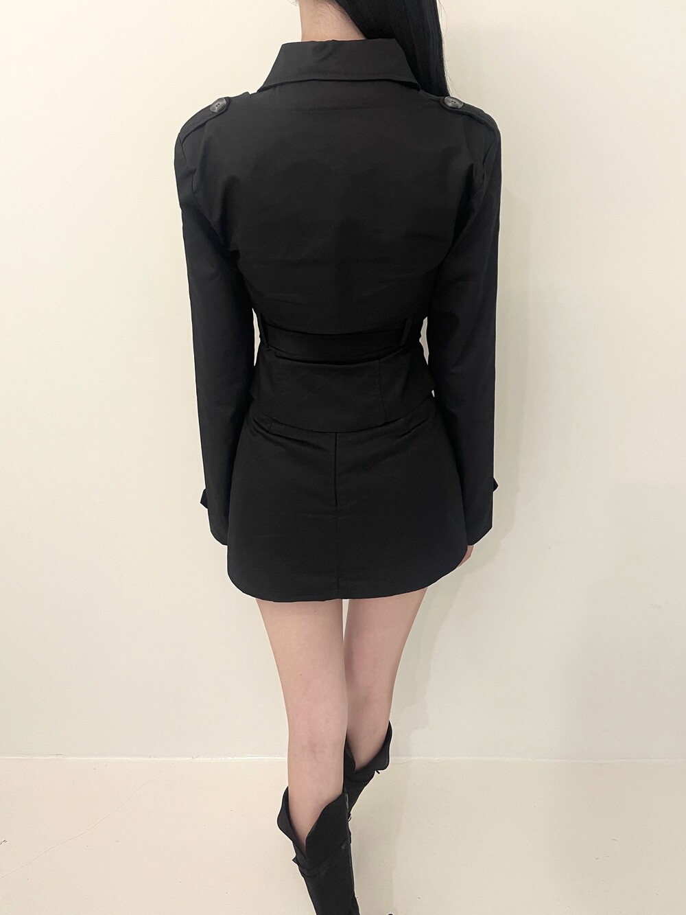 트렌치 볼레로 자켓 - 베스트 - 미니 스커트 쓰리피스