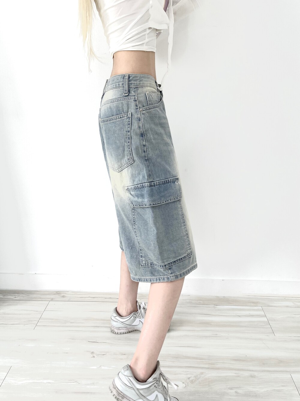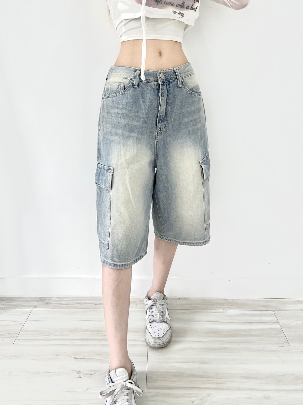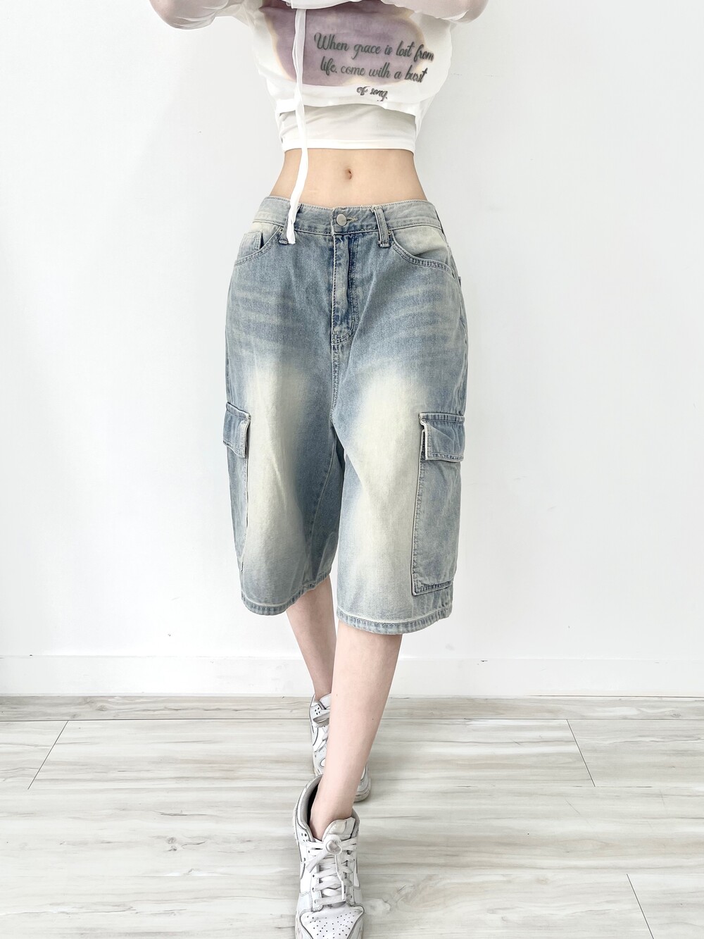 트렌디한 무드의 워싱 디테일 버뮤다 팬츠