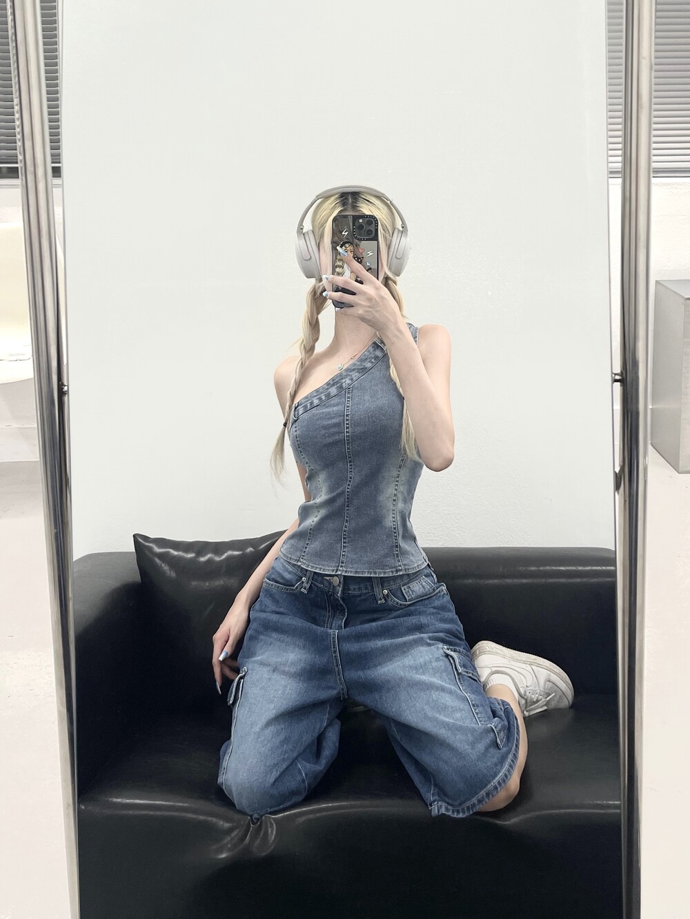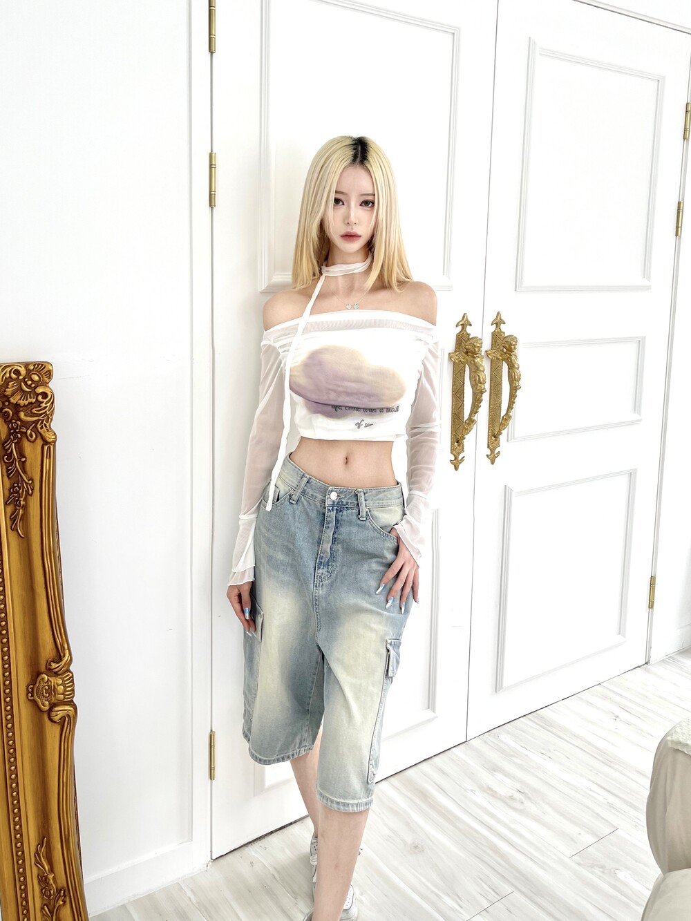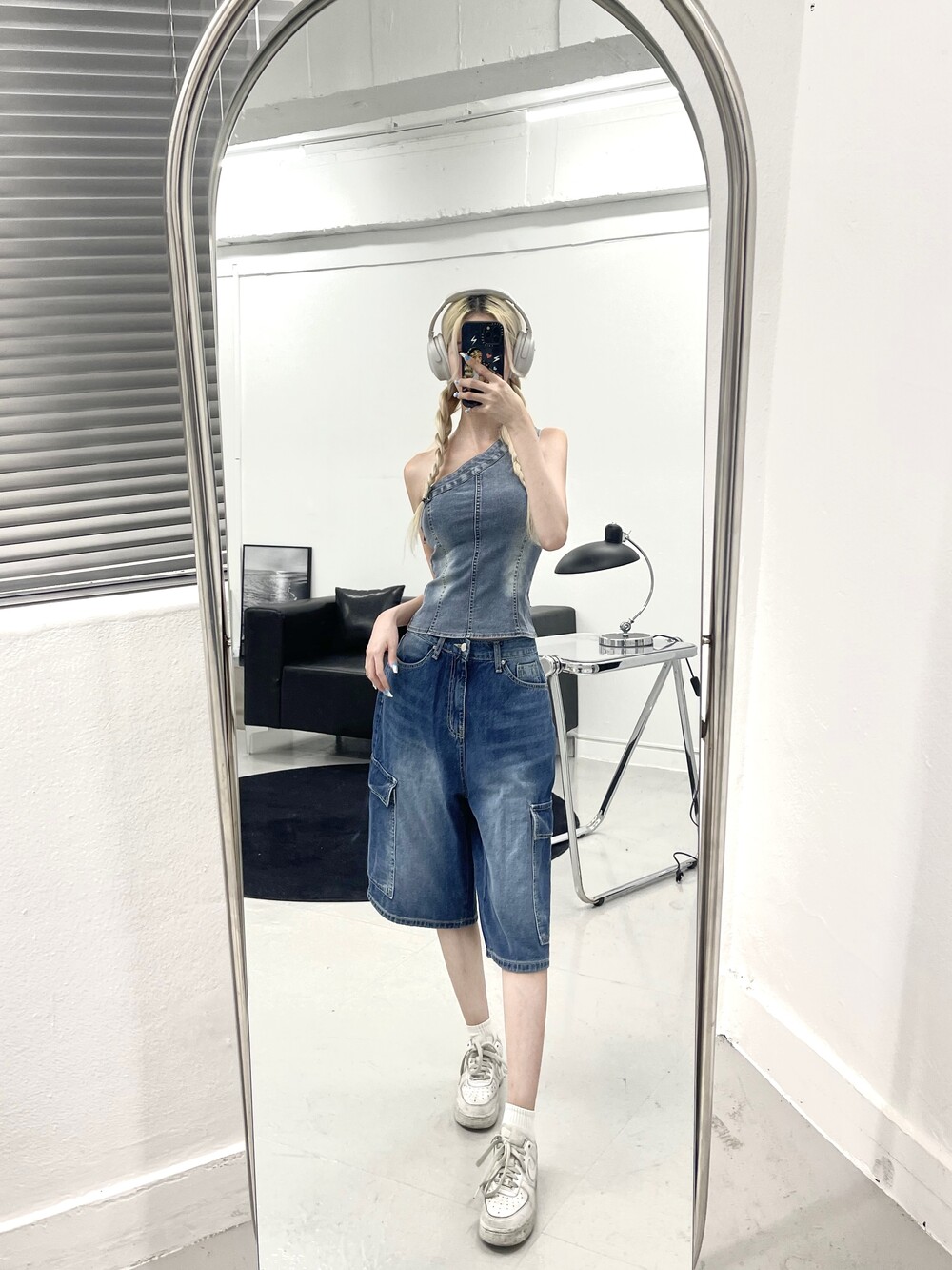 트렌디한 무드의 워싱 디테일 버뮤다 팬츠