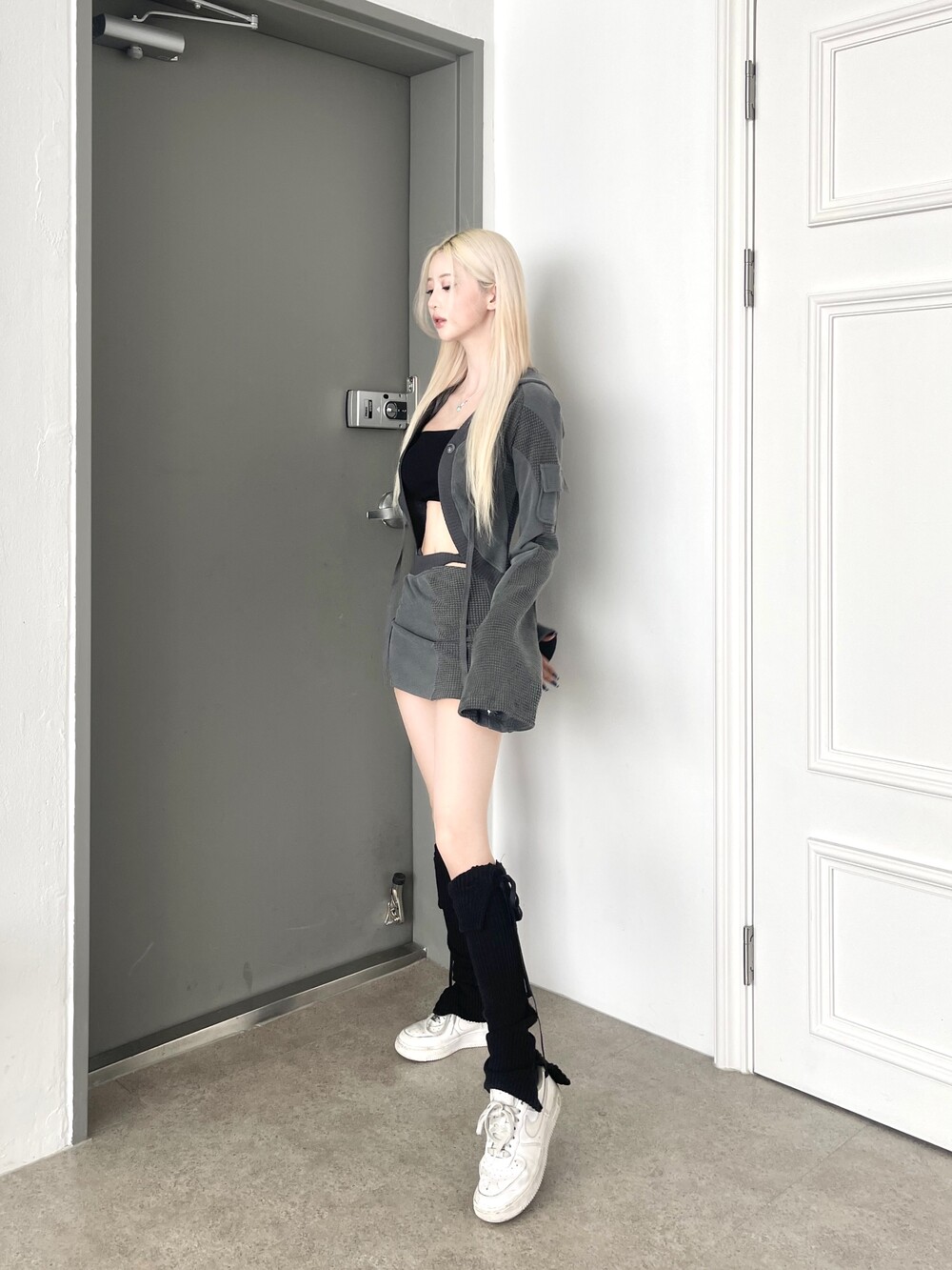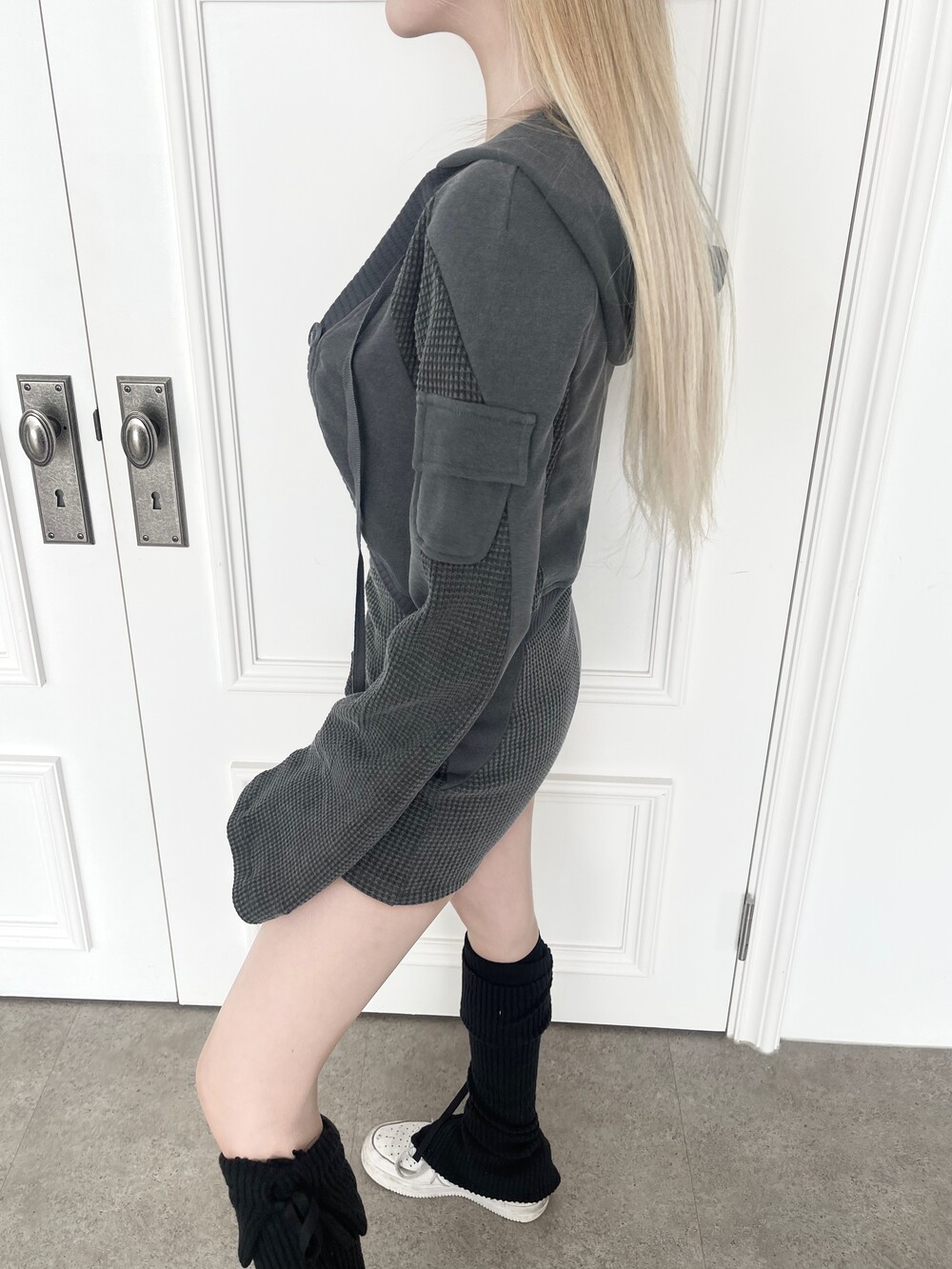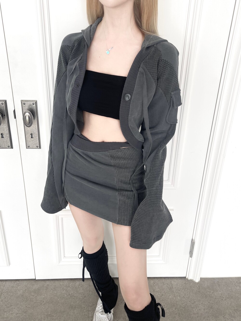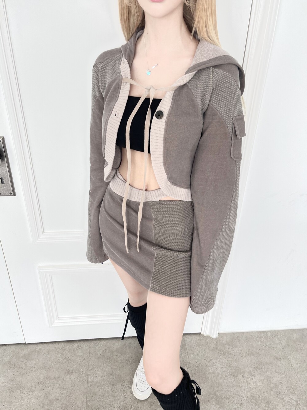 1236. Patchwork cargo crop hood cardi (3color)