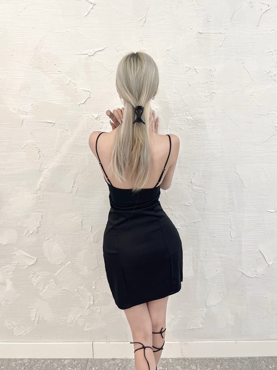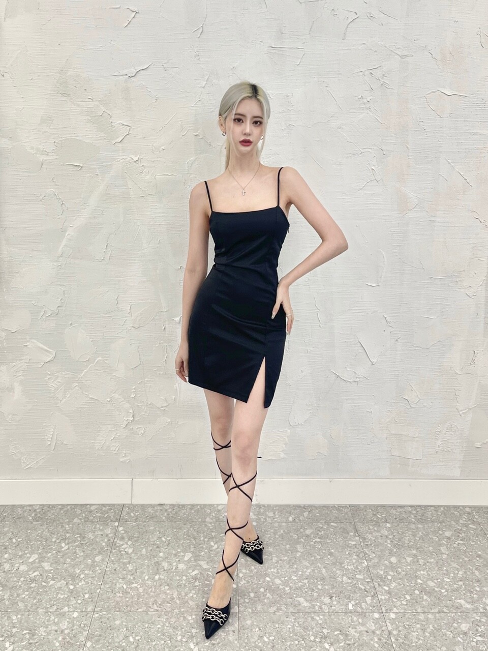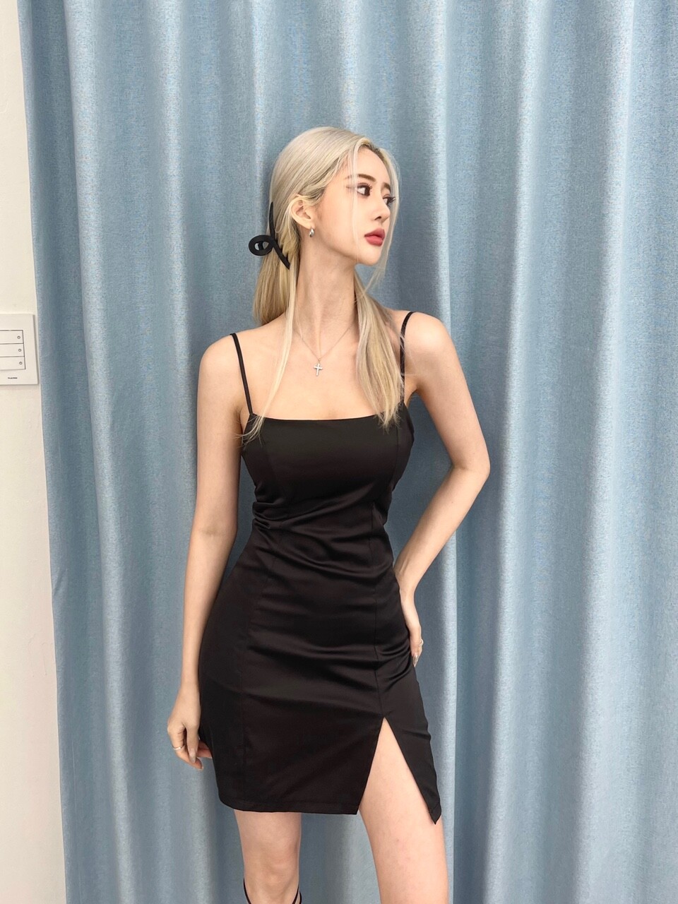 스판 새틴 밑단 트임 미니 원피스