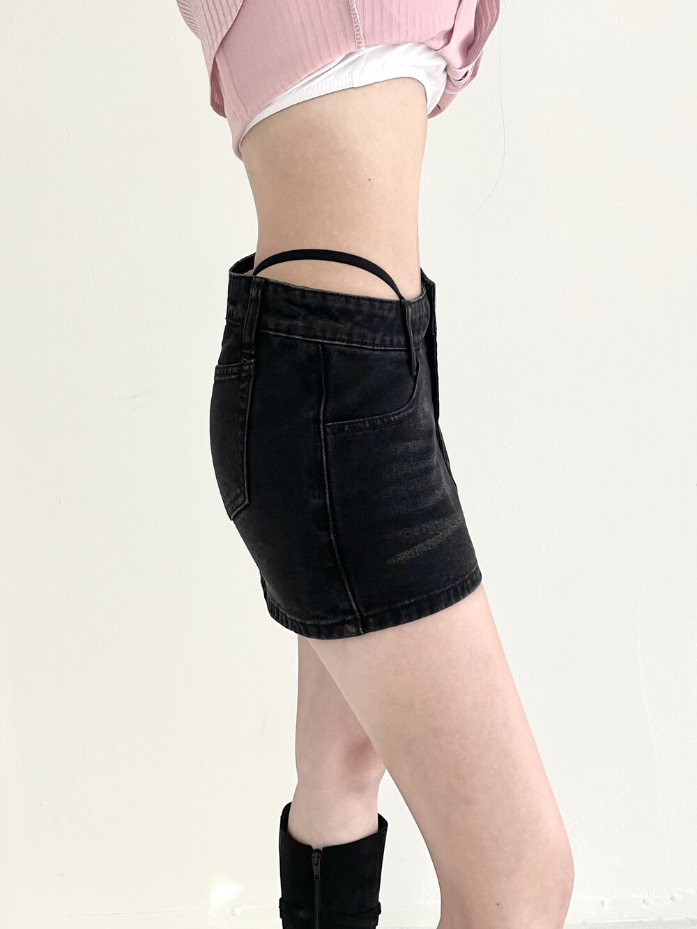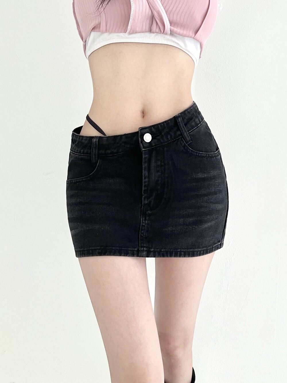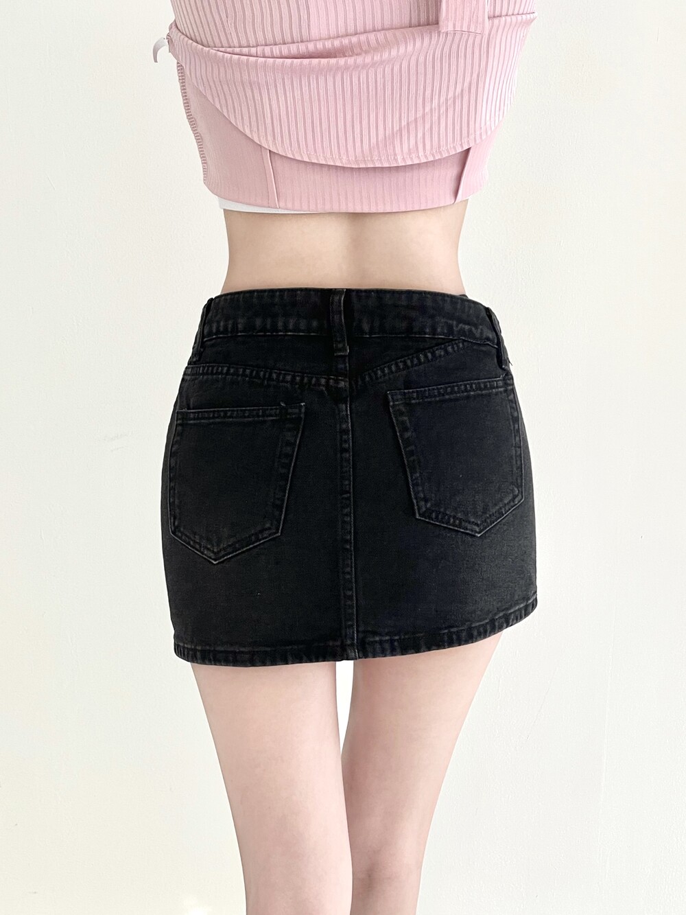 트렌디한 언밸런스 디자인의 블랙 데님 스커트
