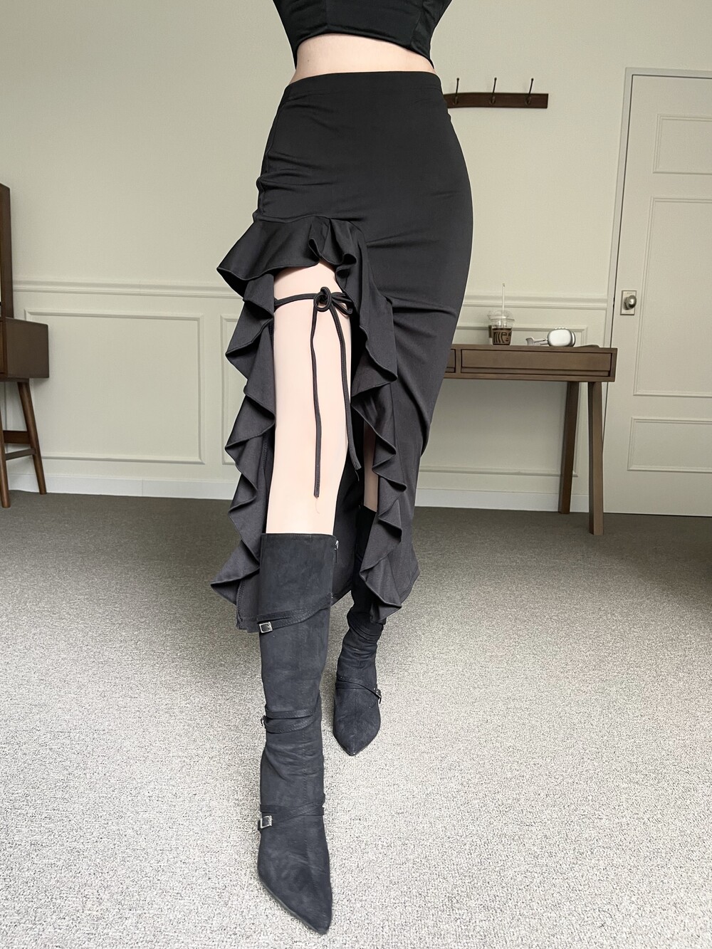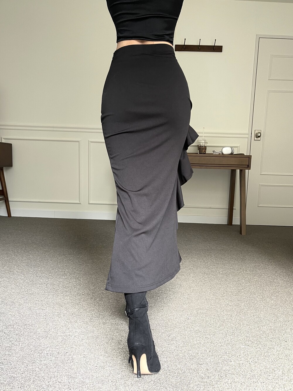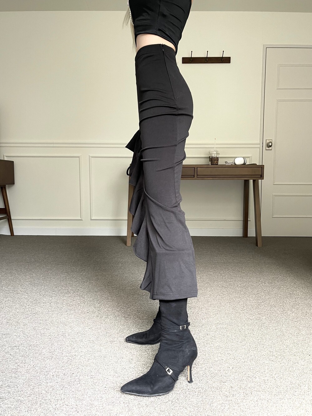 미니멀한 상의에 포인트가 되는 페미닌한 스타일