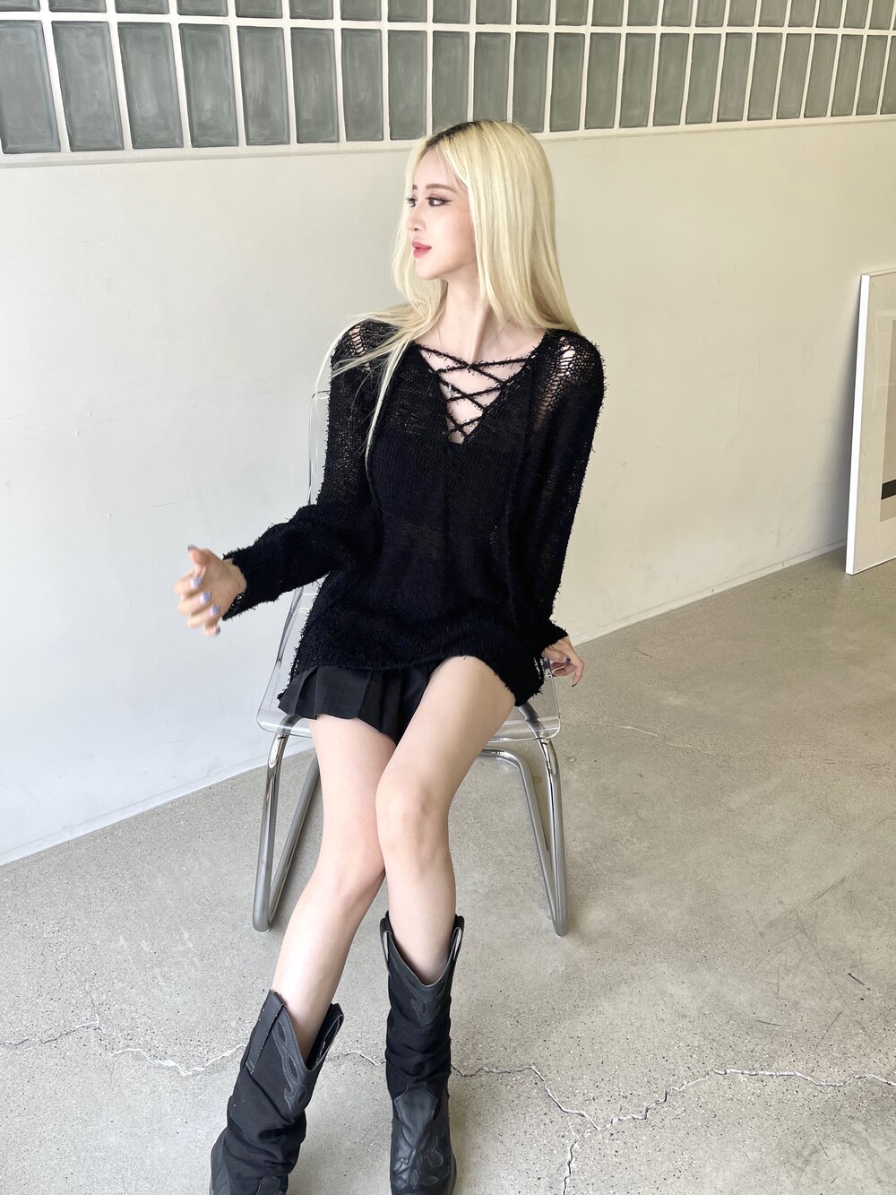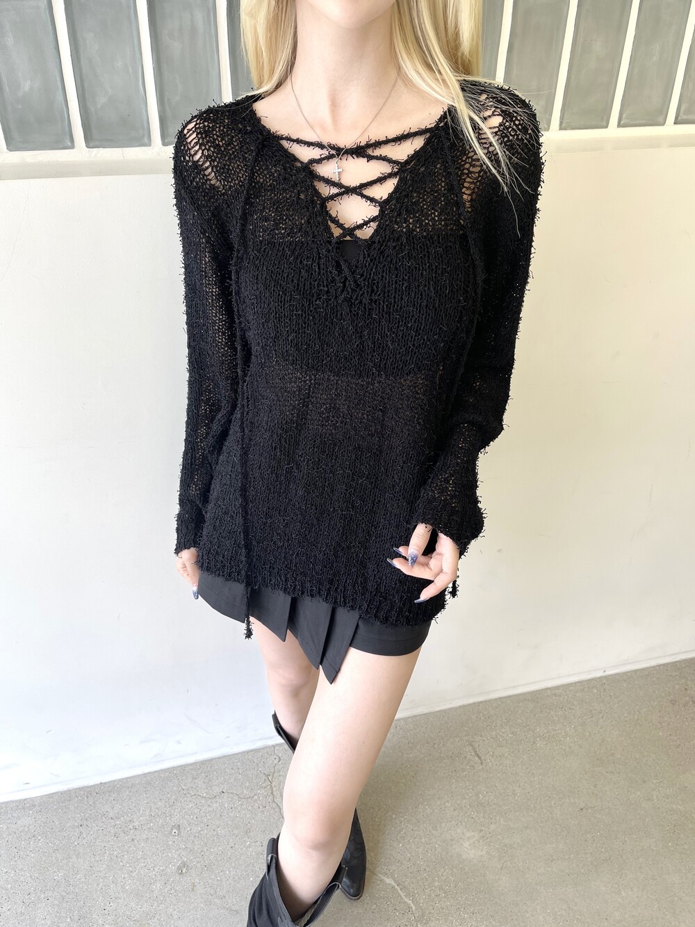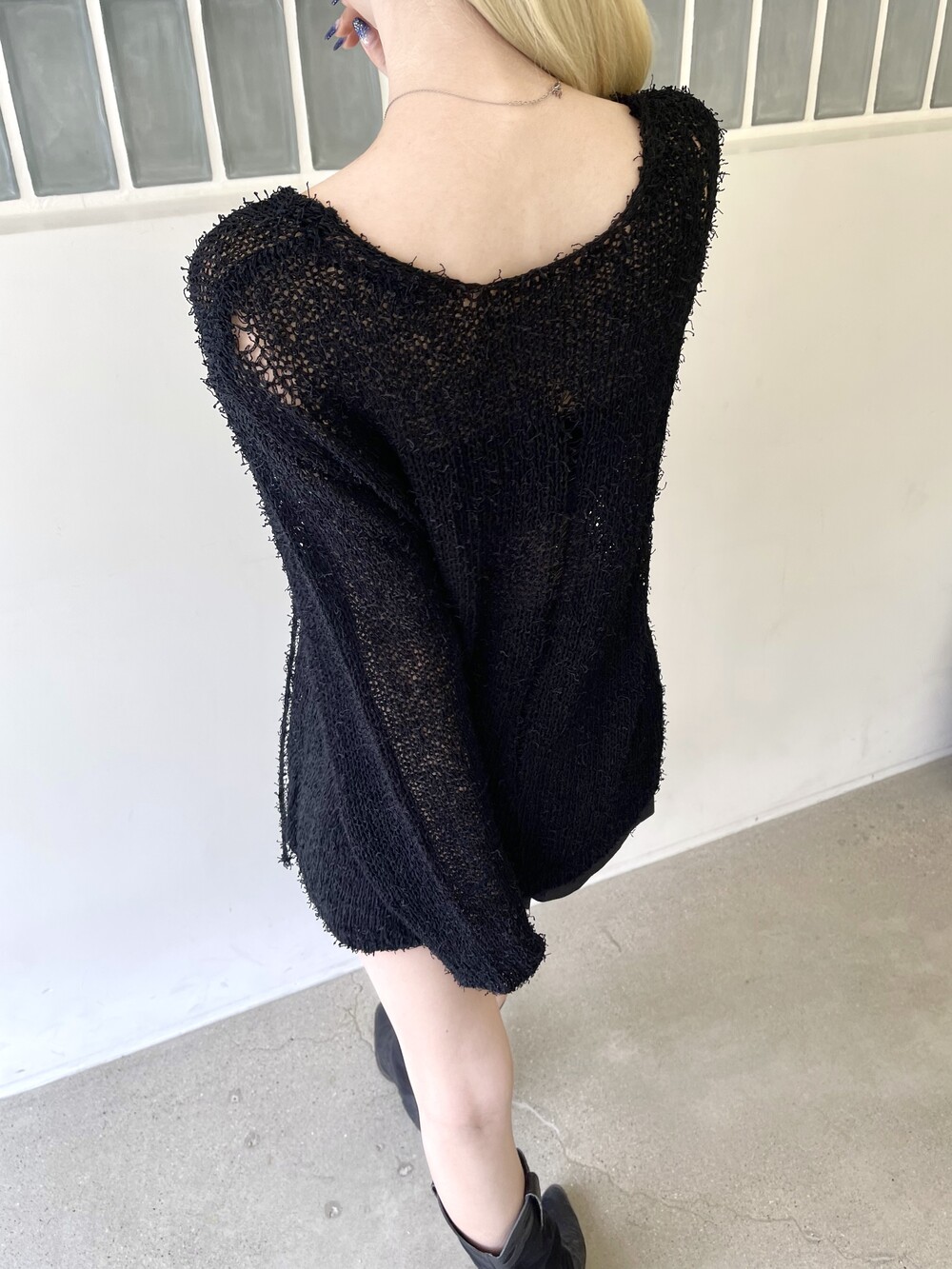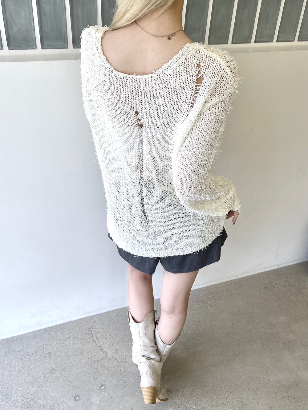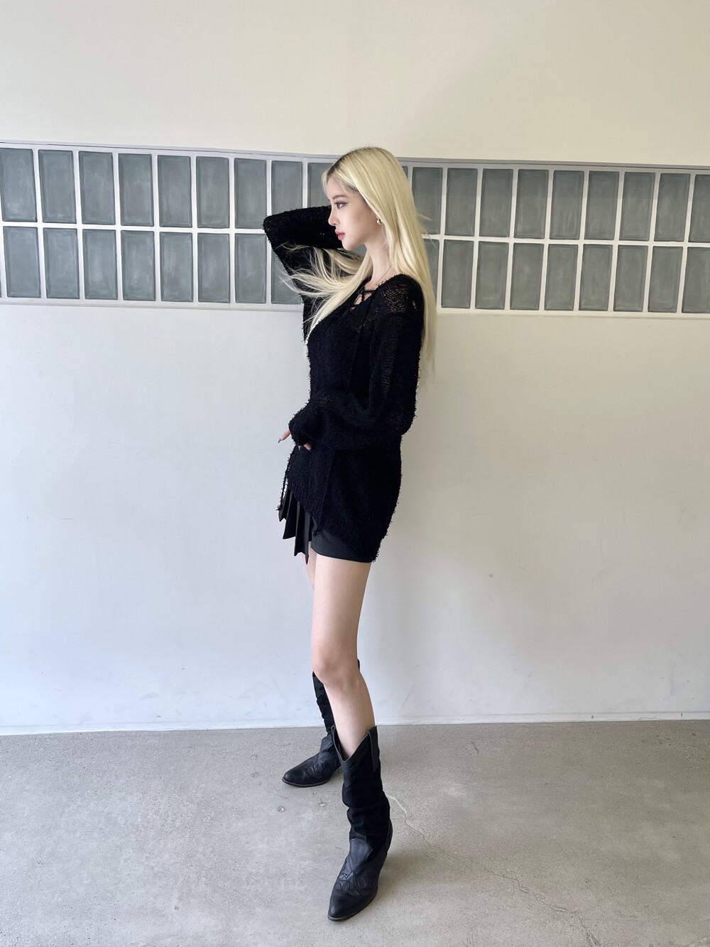 루즈한 짜임에 데미지 디테일의 니트웨어