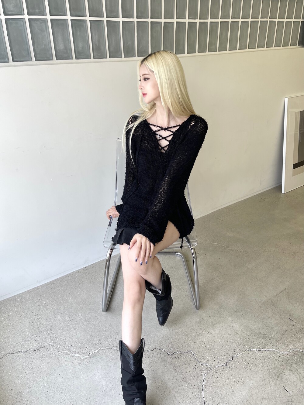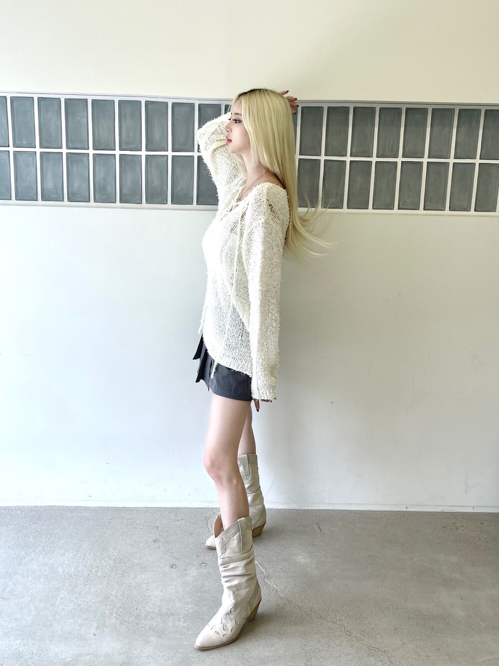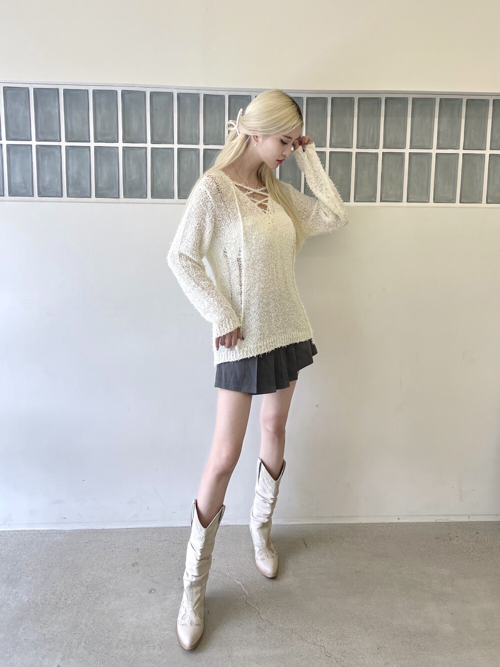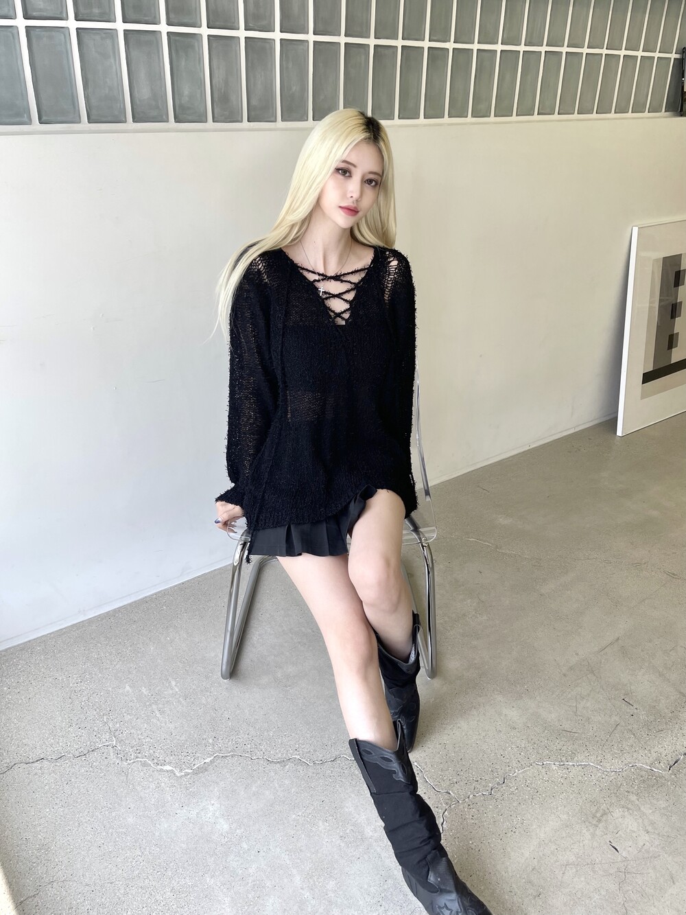 루즈한 짜임에 데미지 디테일의 니트웨어