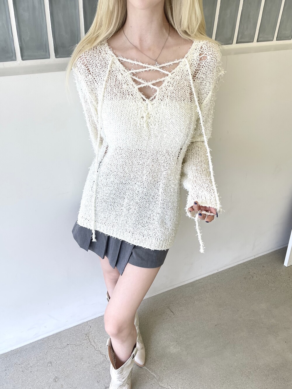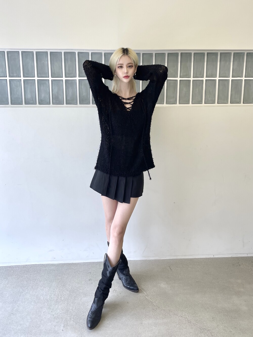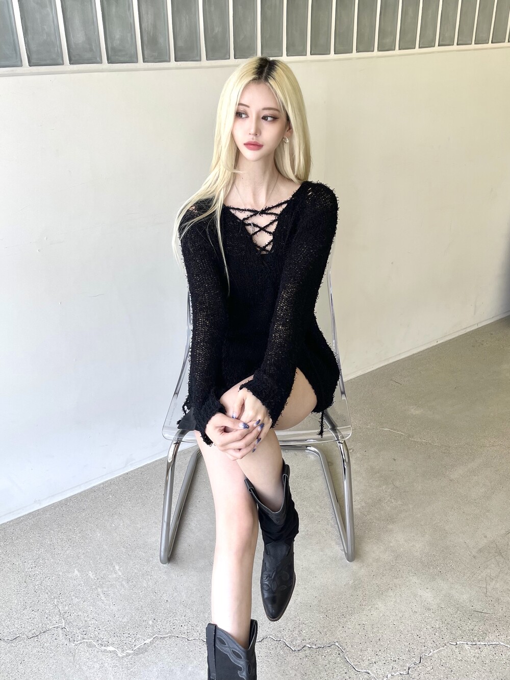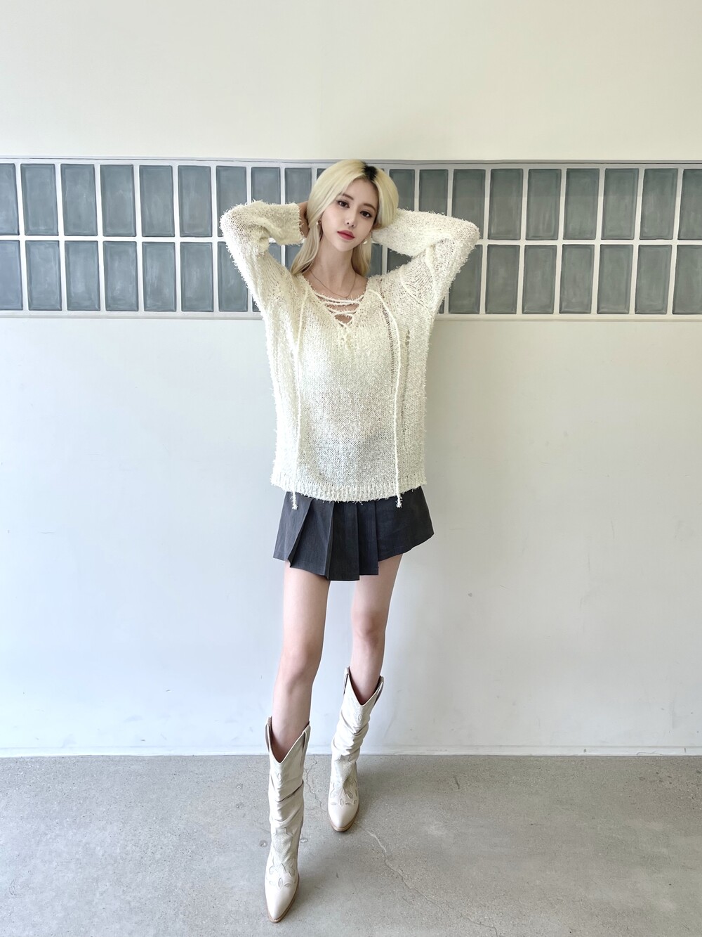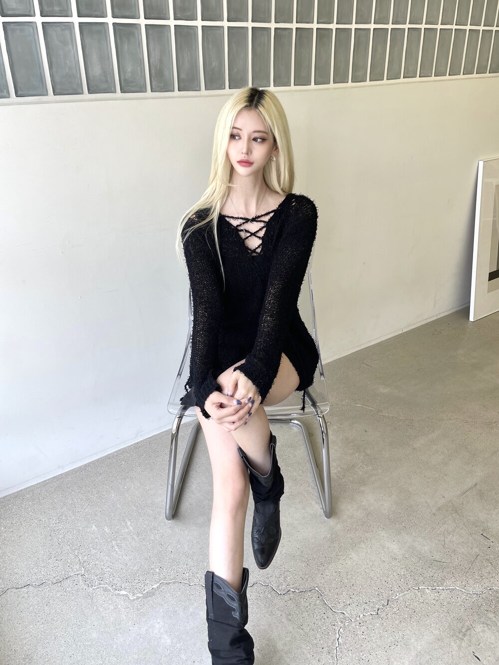 루즈한 짜임에 데미지 디테일의 니트웨어
