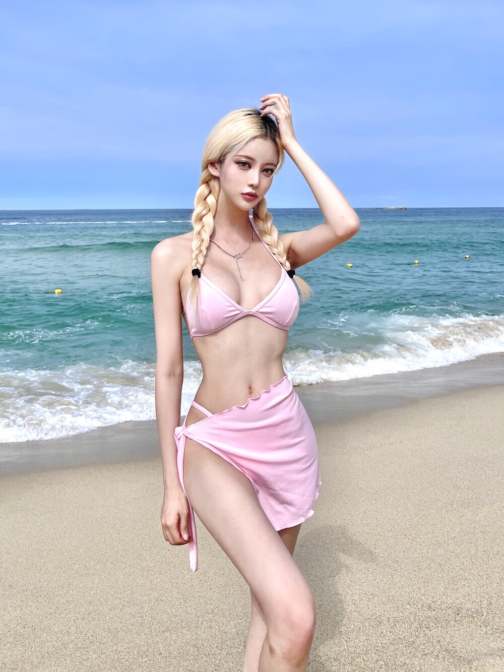 리본을 묶어 커버업이 가능한 타입으로 여러 체형에 소화가 가능합니다.