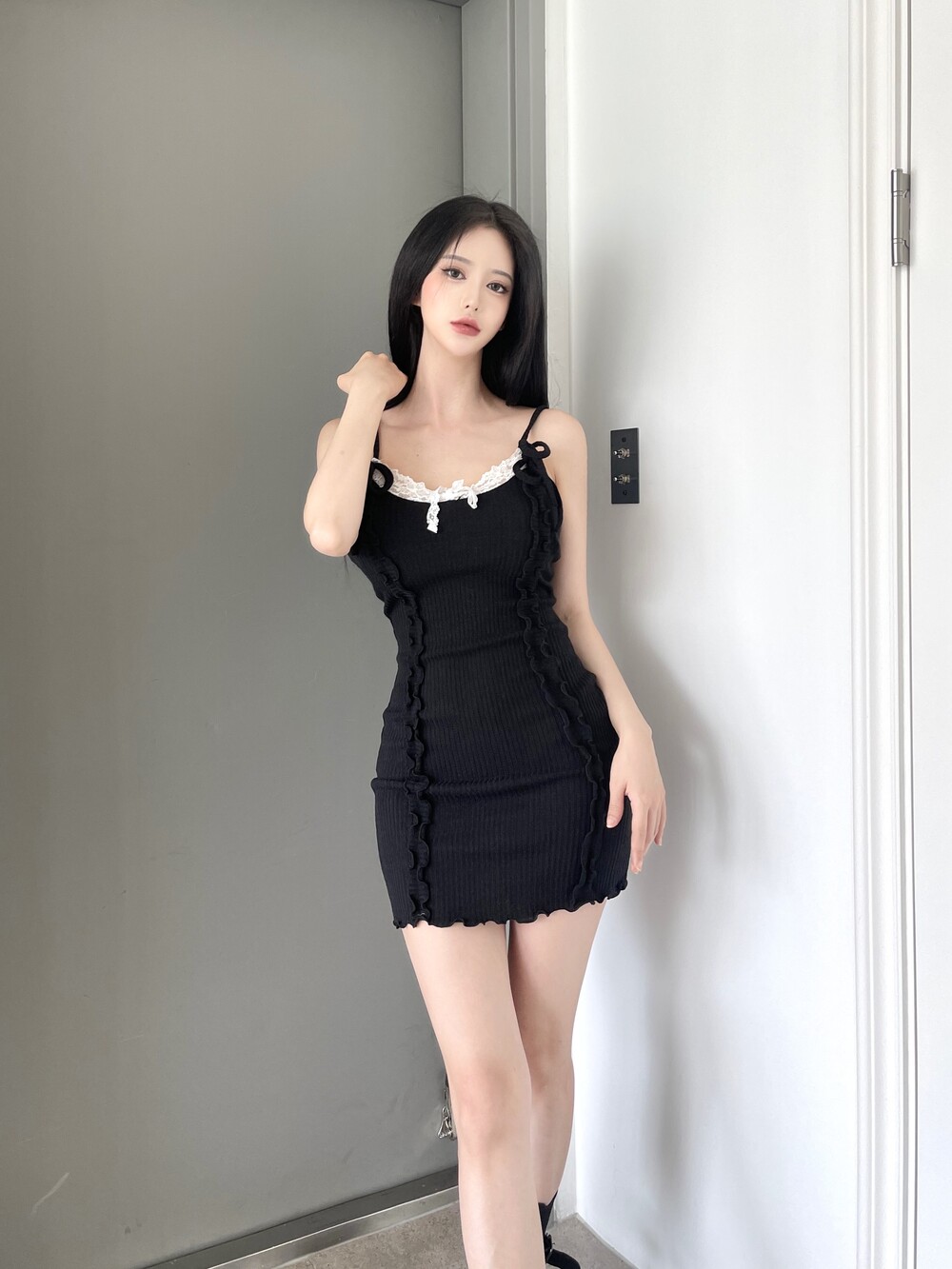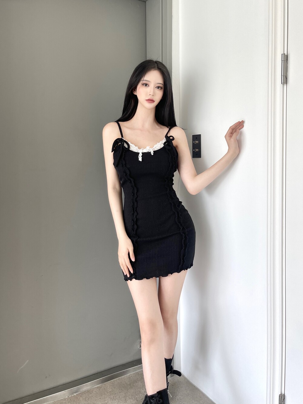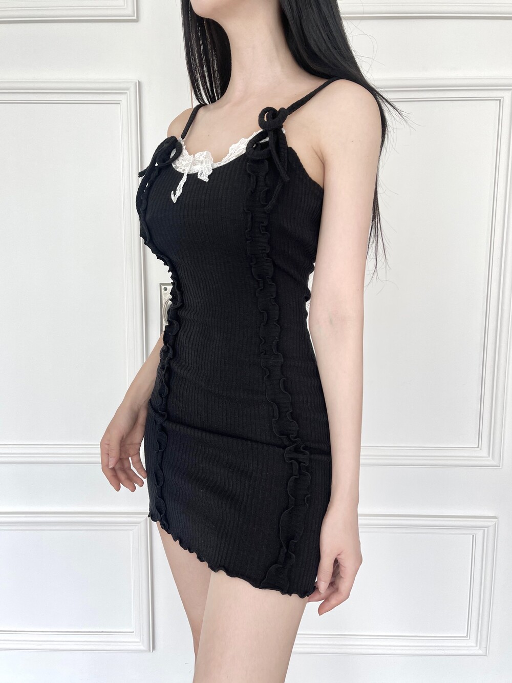 레이스 리본 미니 원피스