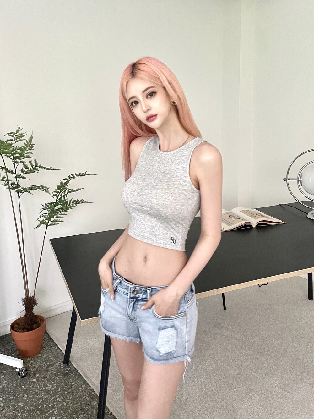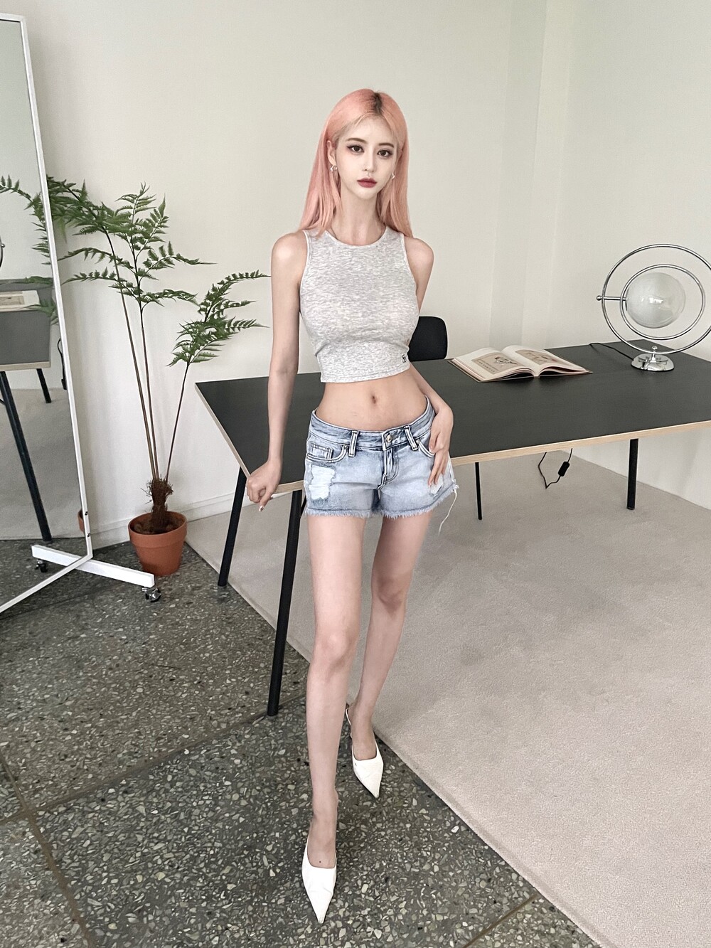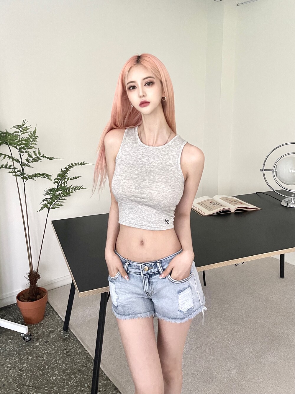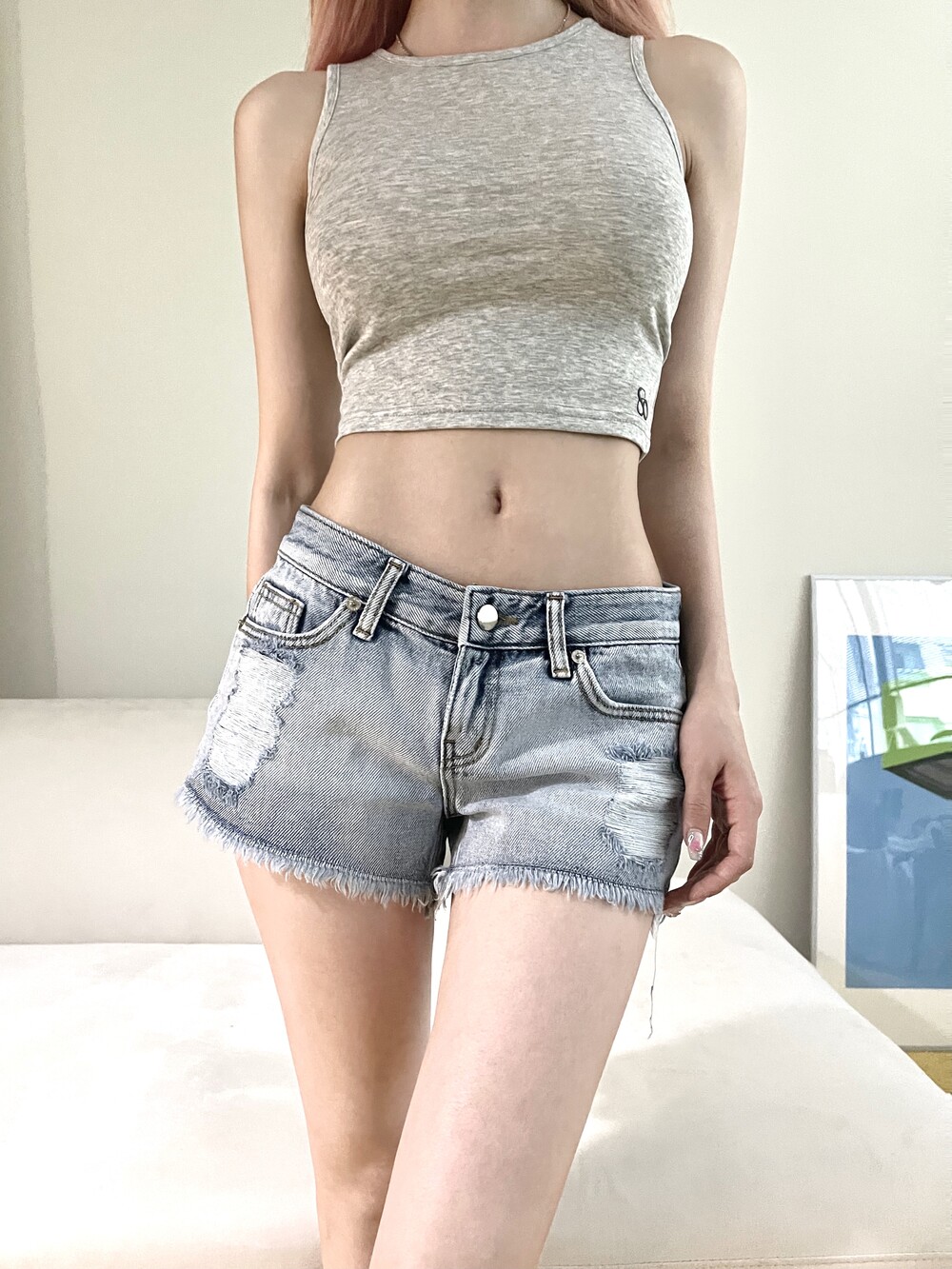 숏한 밑위기장으로 트렌디한 로우라이즈 숏팬츠입니다