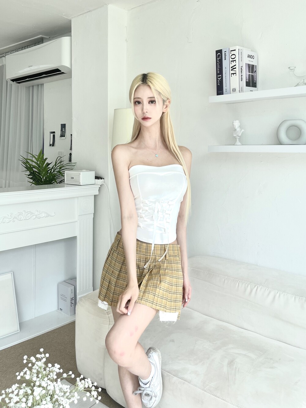잔플리츠 디자인 스커트로 더 슬림해보이는 레그라인