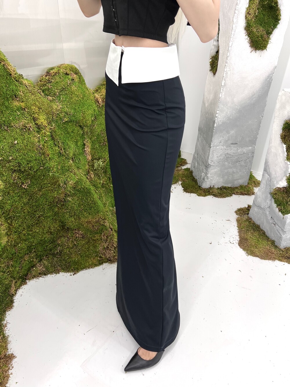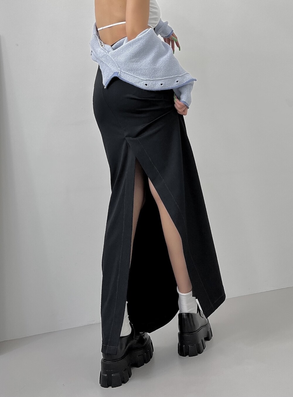 백 딥슬릿 맥시 롱 스커트
