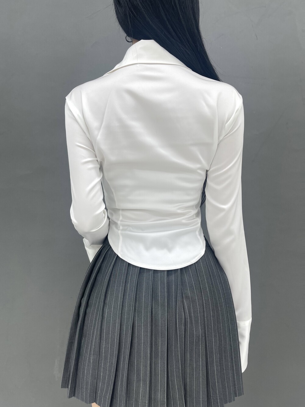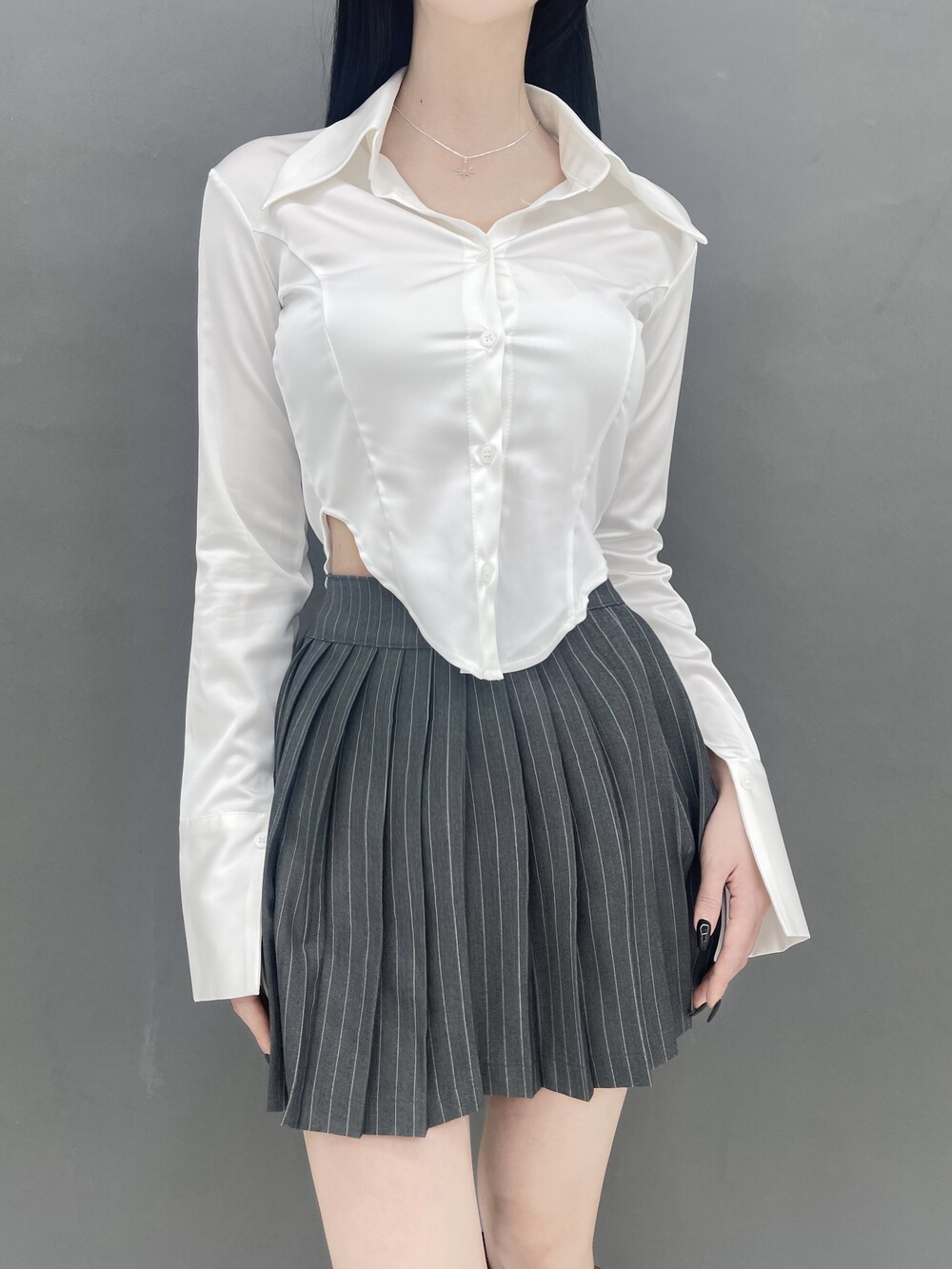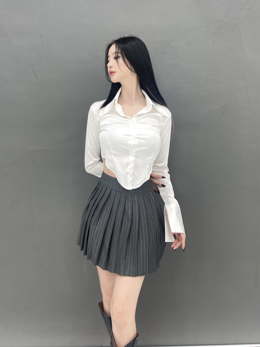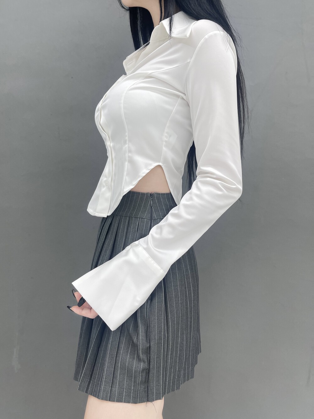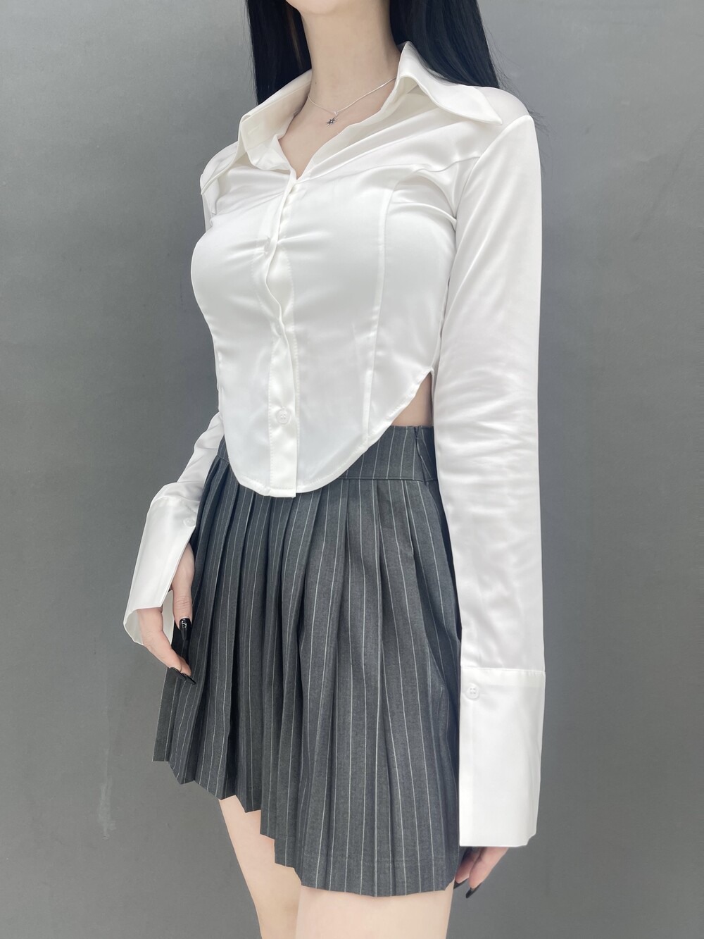 라운드 밑단/슬림 핏/롱 슬리브로 여리해보이는 체형 연출