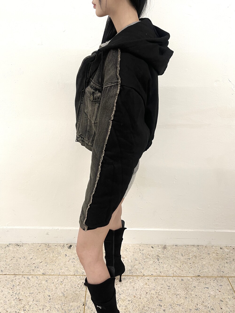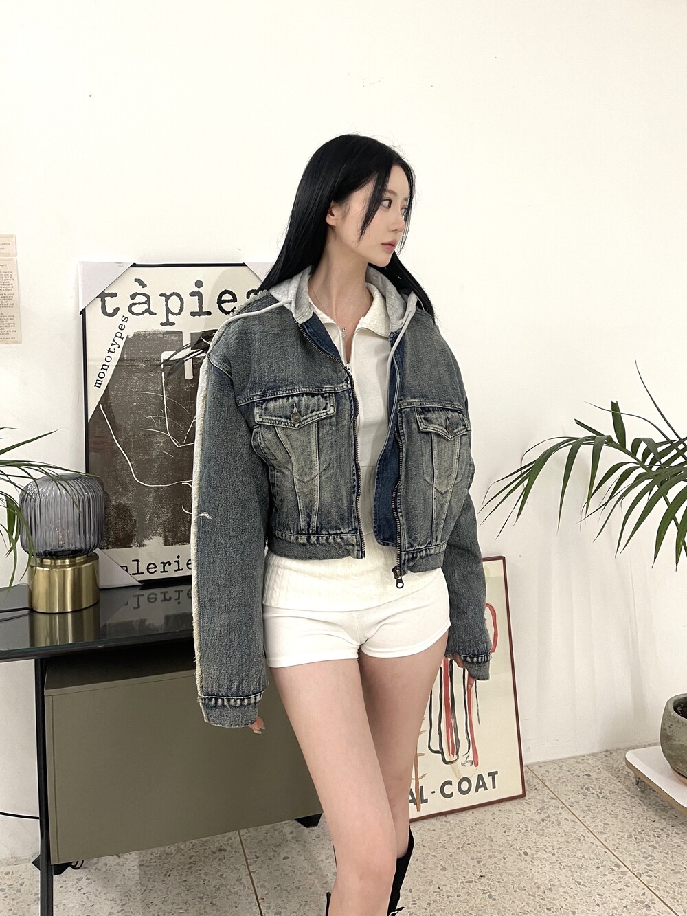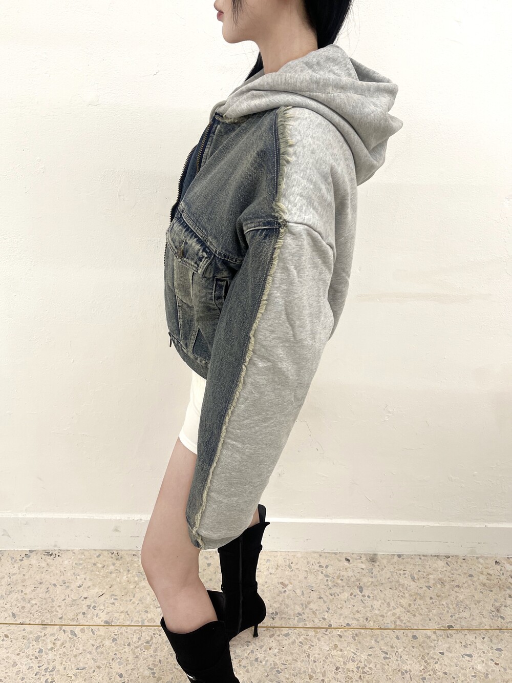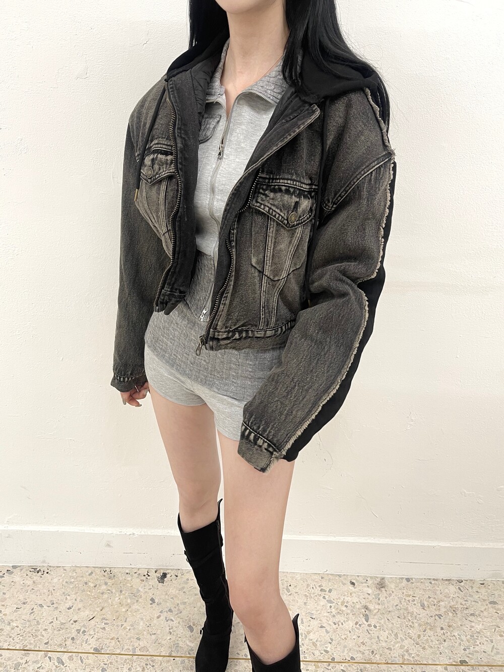 1438. 메이 데님 배색 패딩 후드집업 (2color)