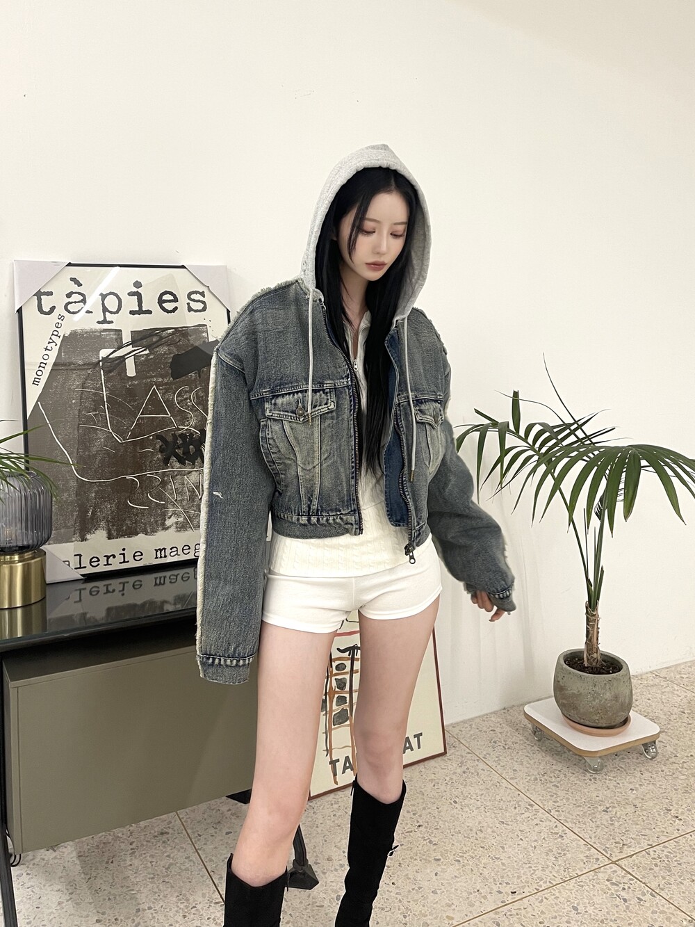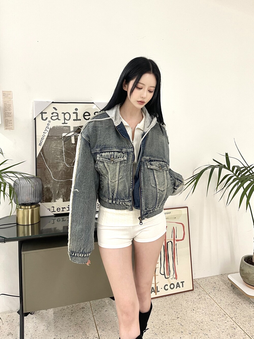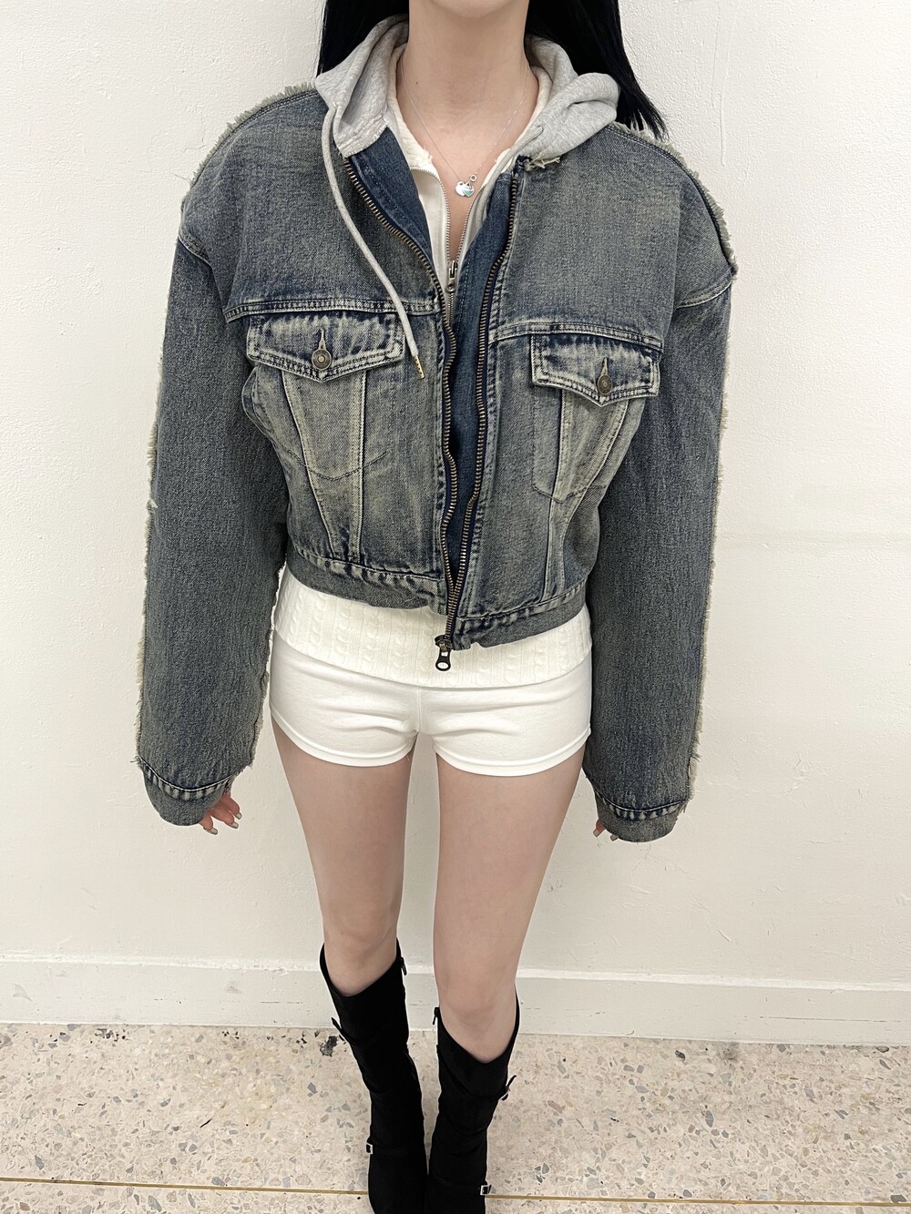 1438. 메이 데님 배색 패딩 후드집업 (2color)
