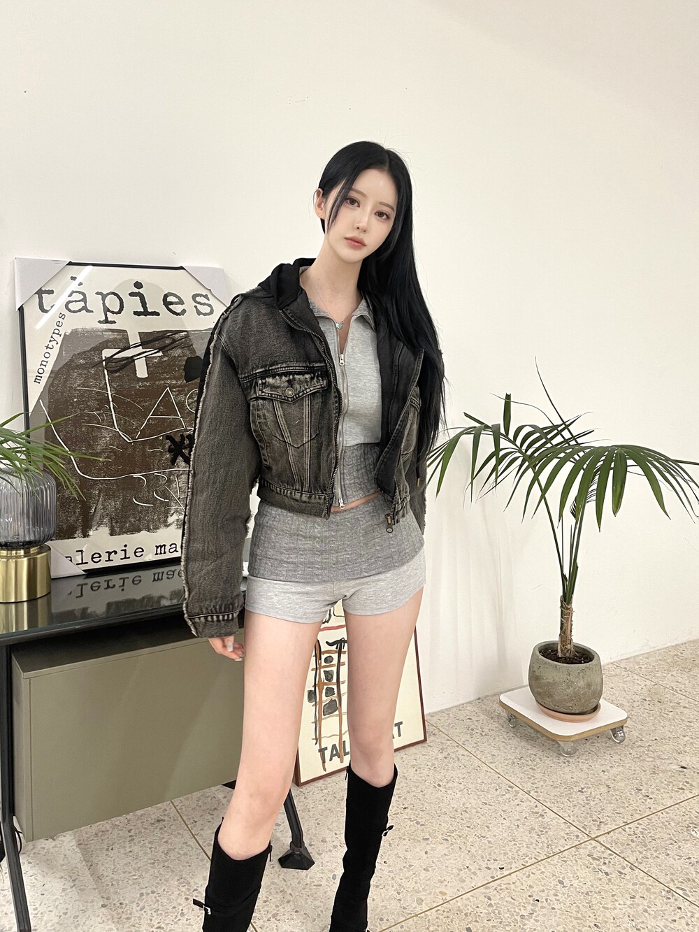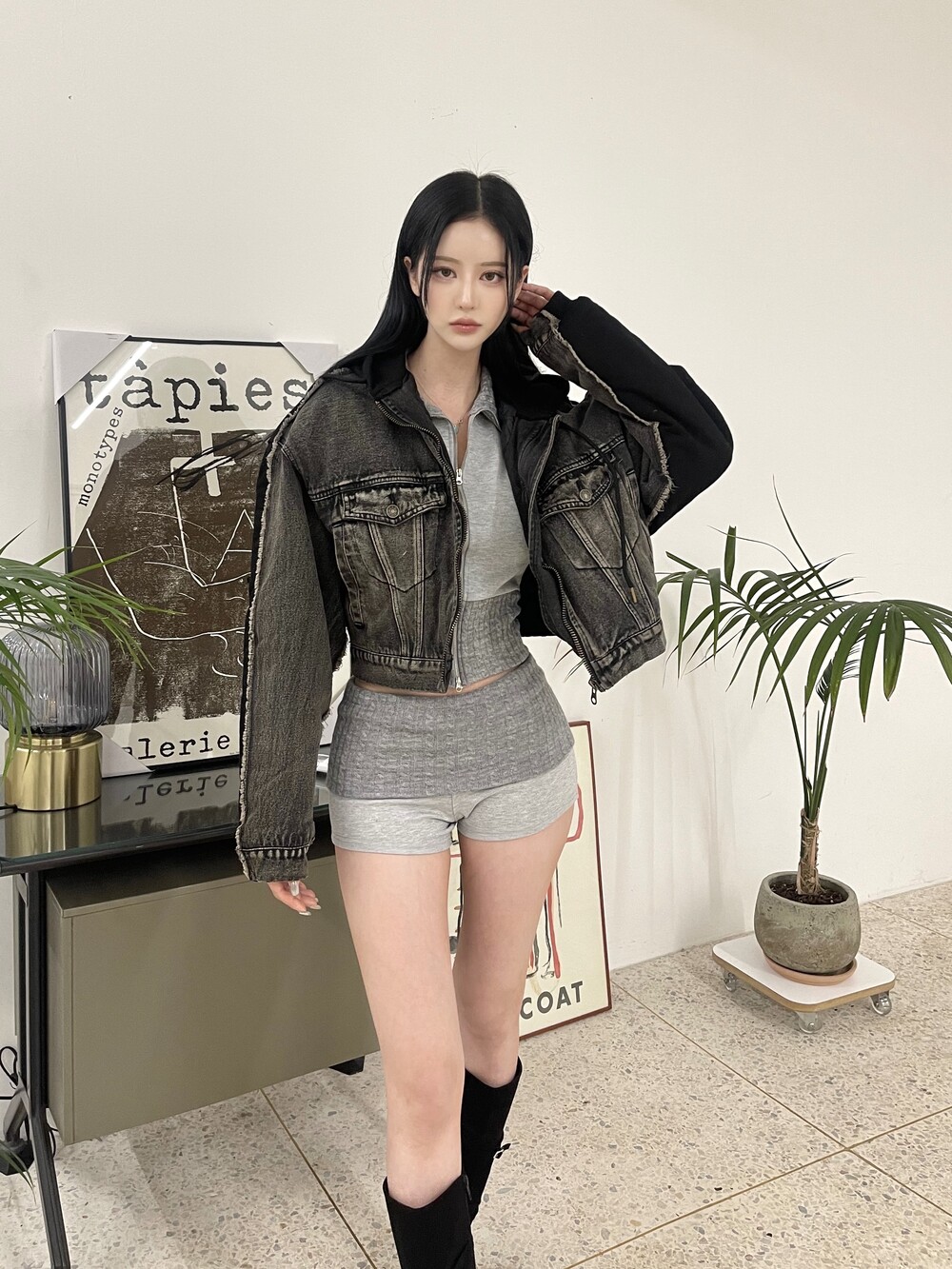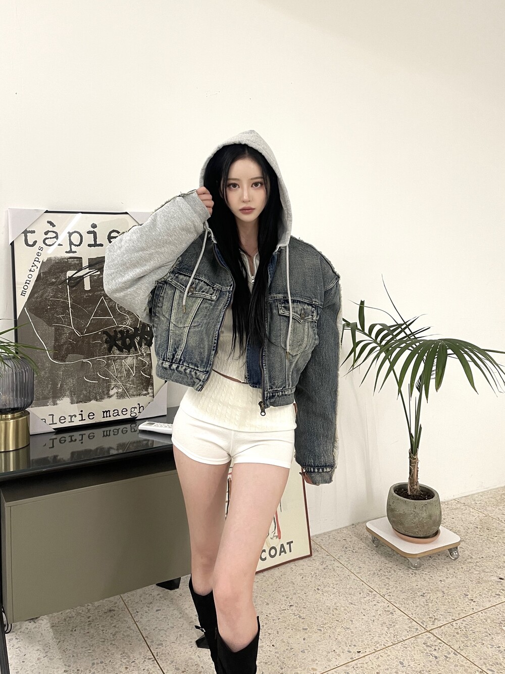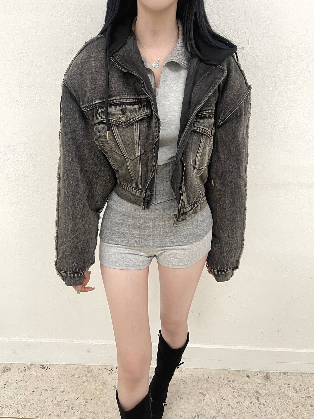 1438. 메이 데님 배색 패딩 후드집업 (2color)