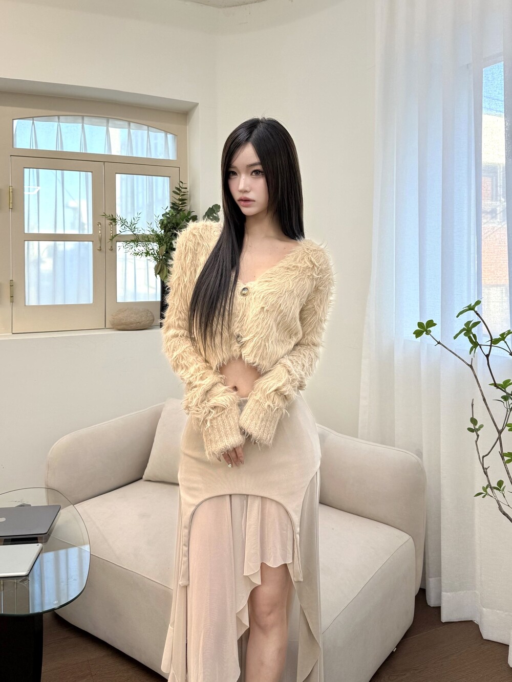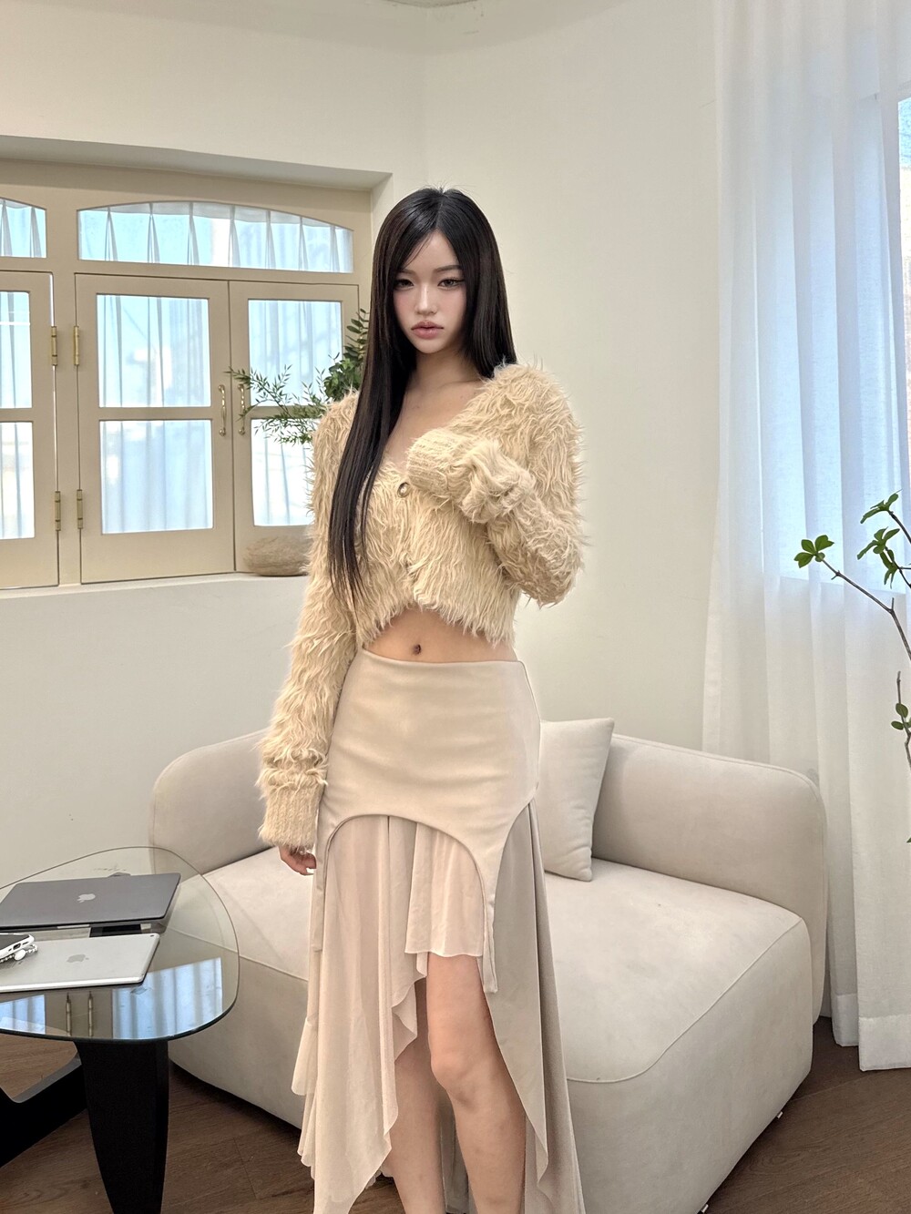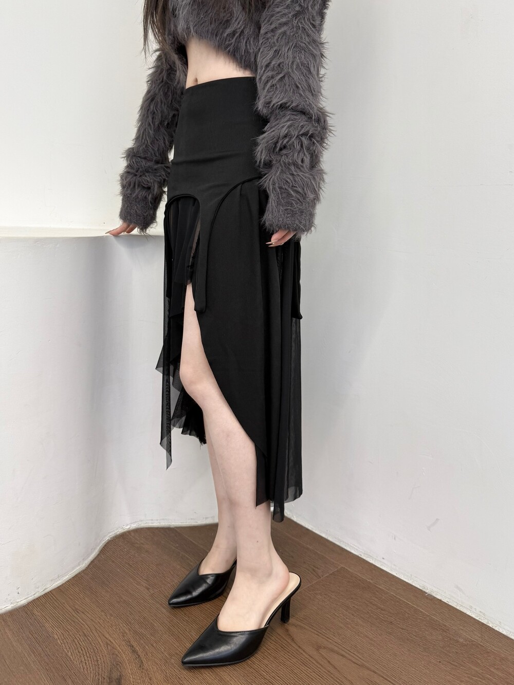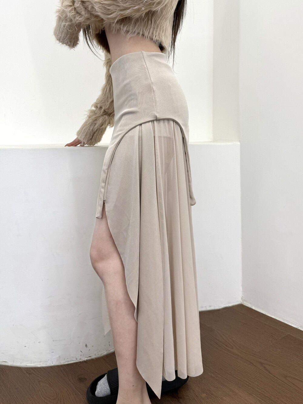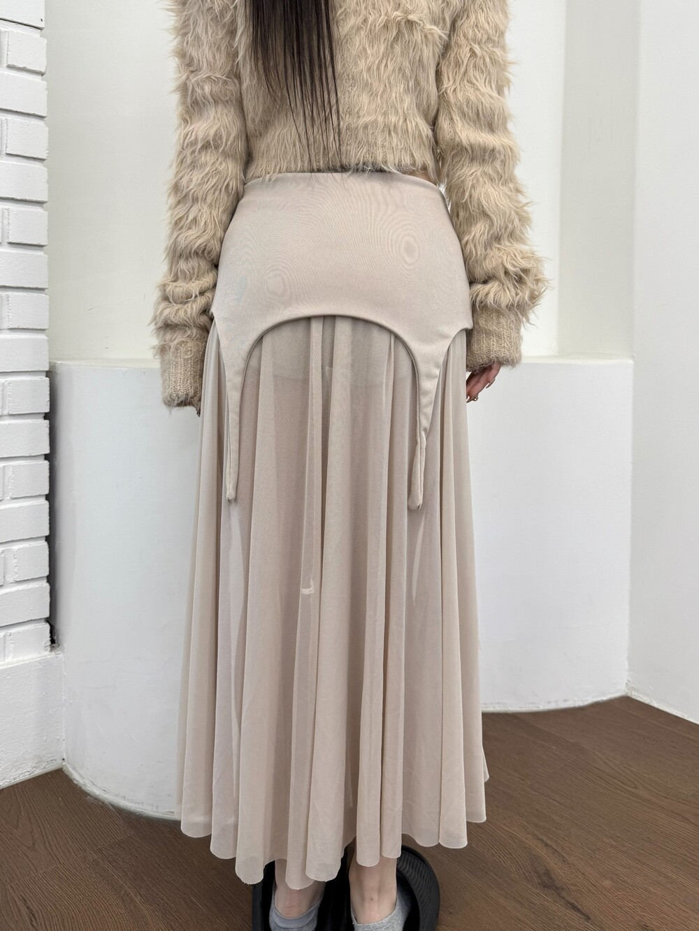 쉬폰 롱 스커트가 레이어드 되어 있어 더 유니크한 아이템