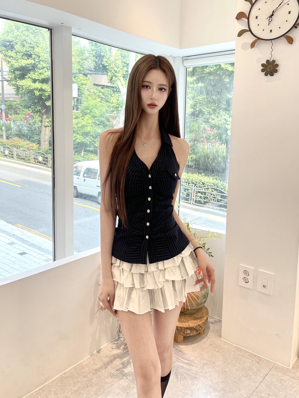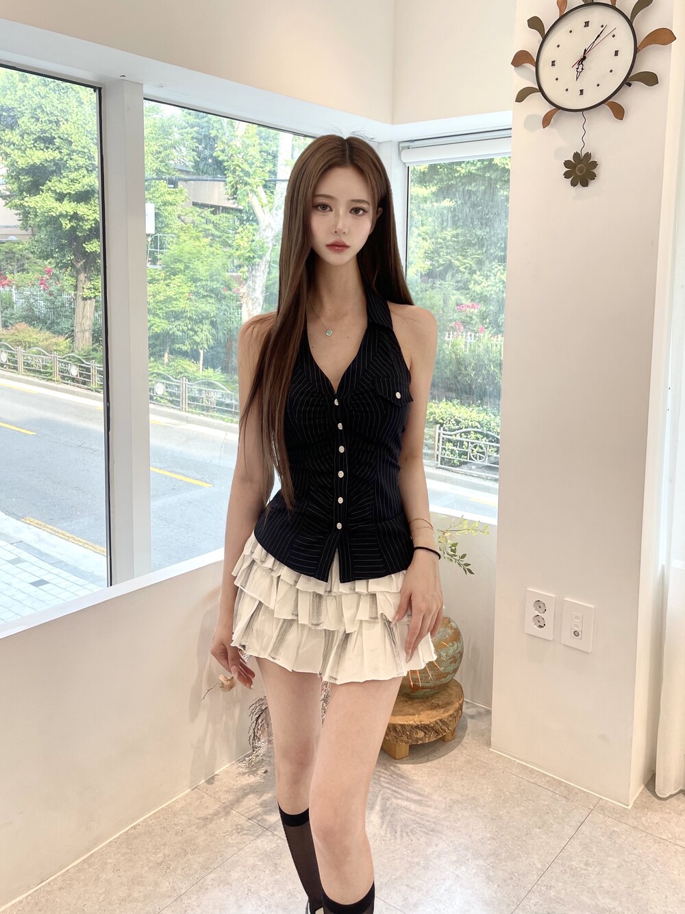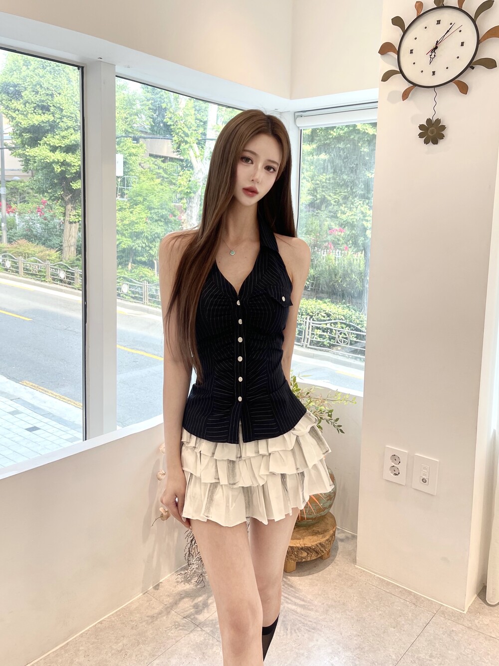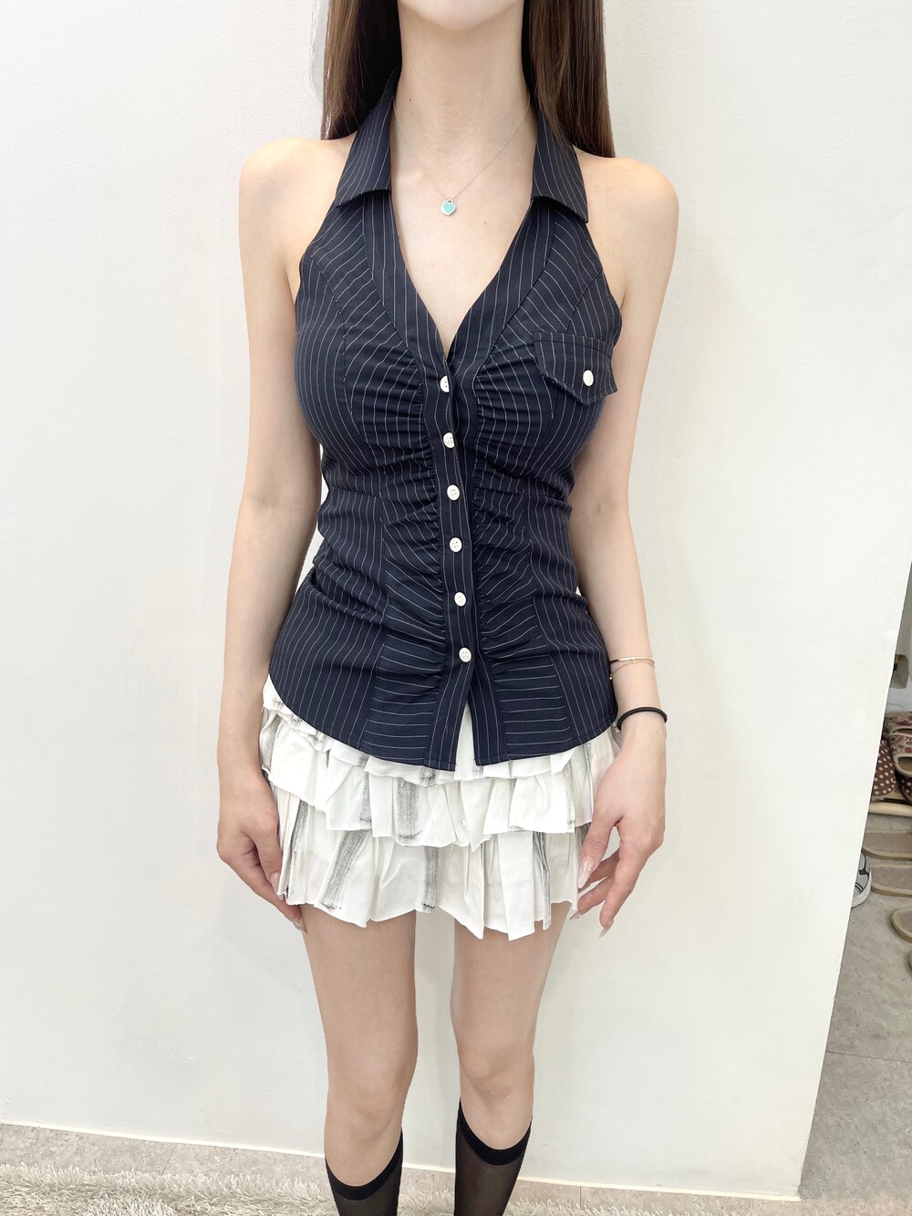 1511. 스트라이프 셔링 홀터 탑 (2color)