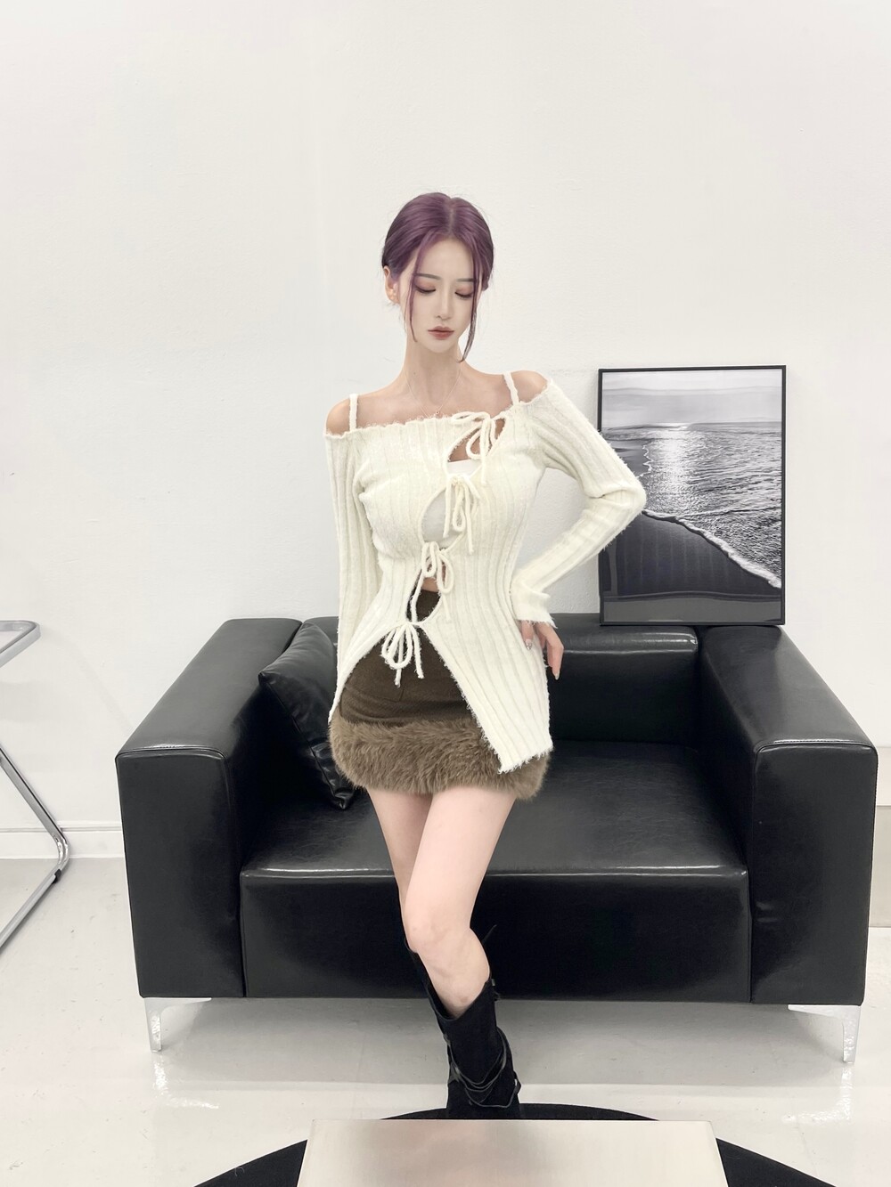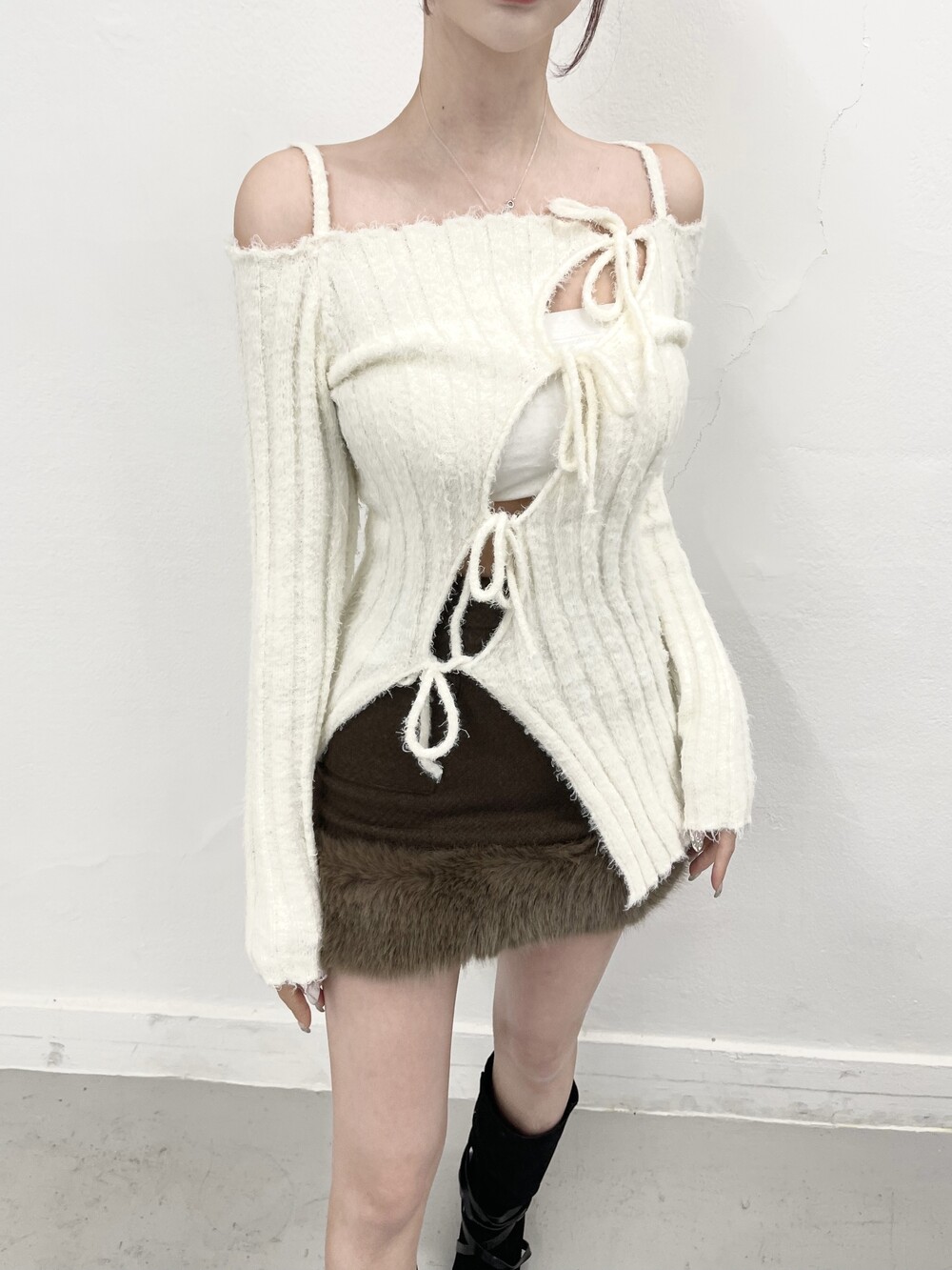 오프숄더 라인으로 여리하면서 숄더끈 부착형으로