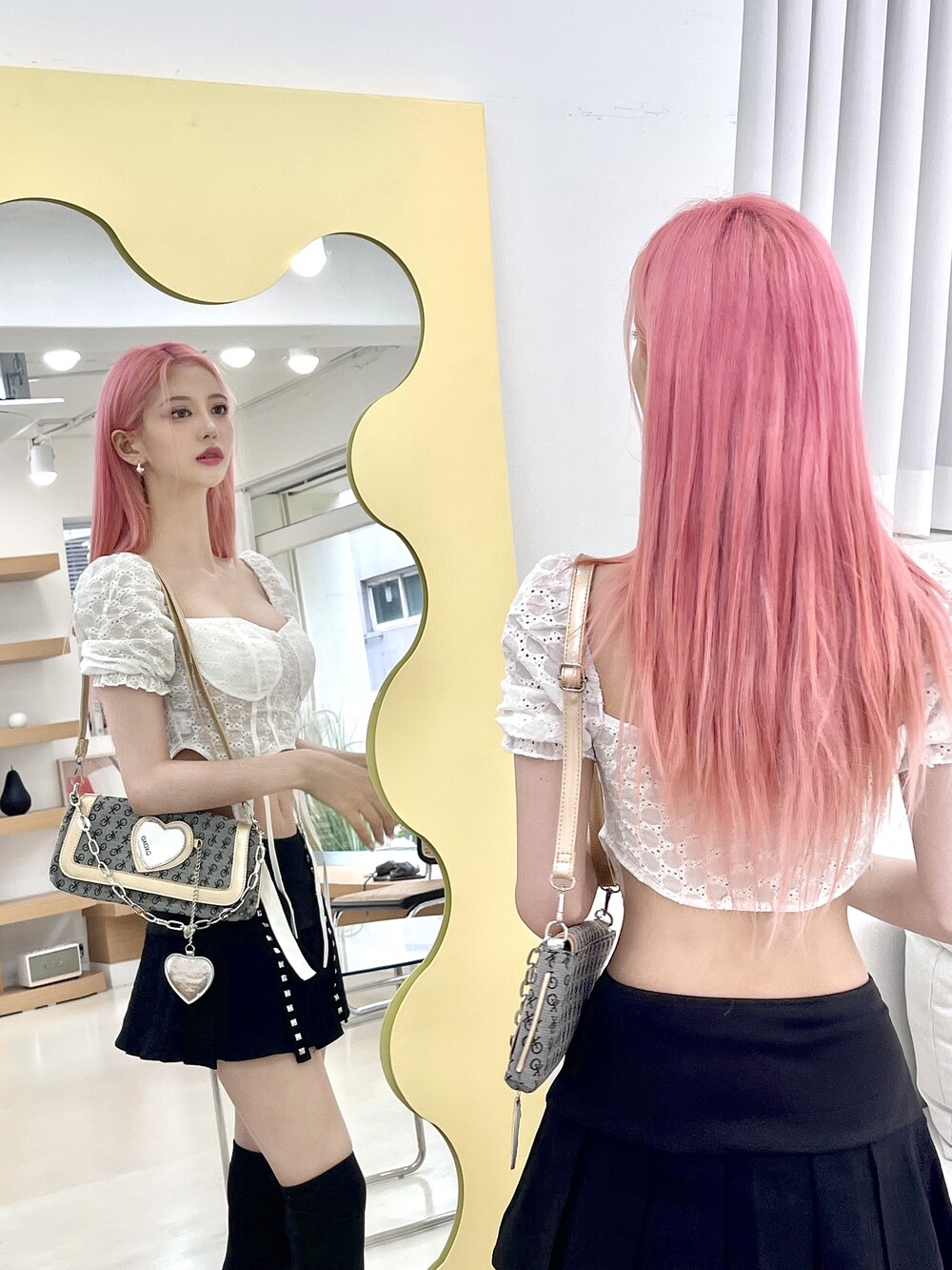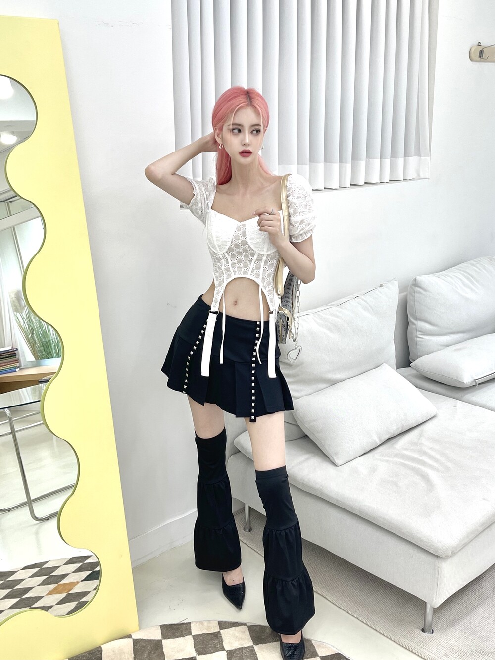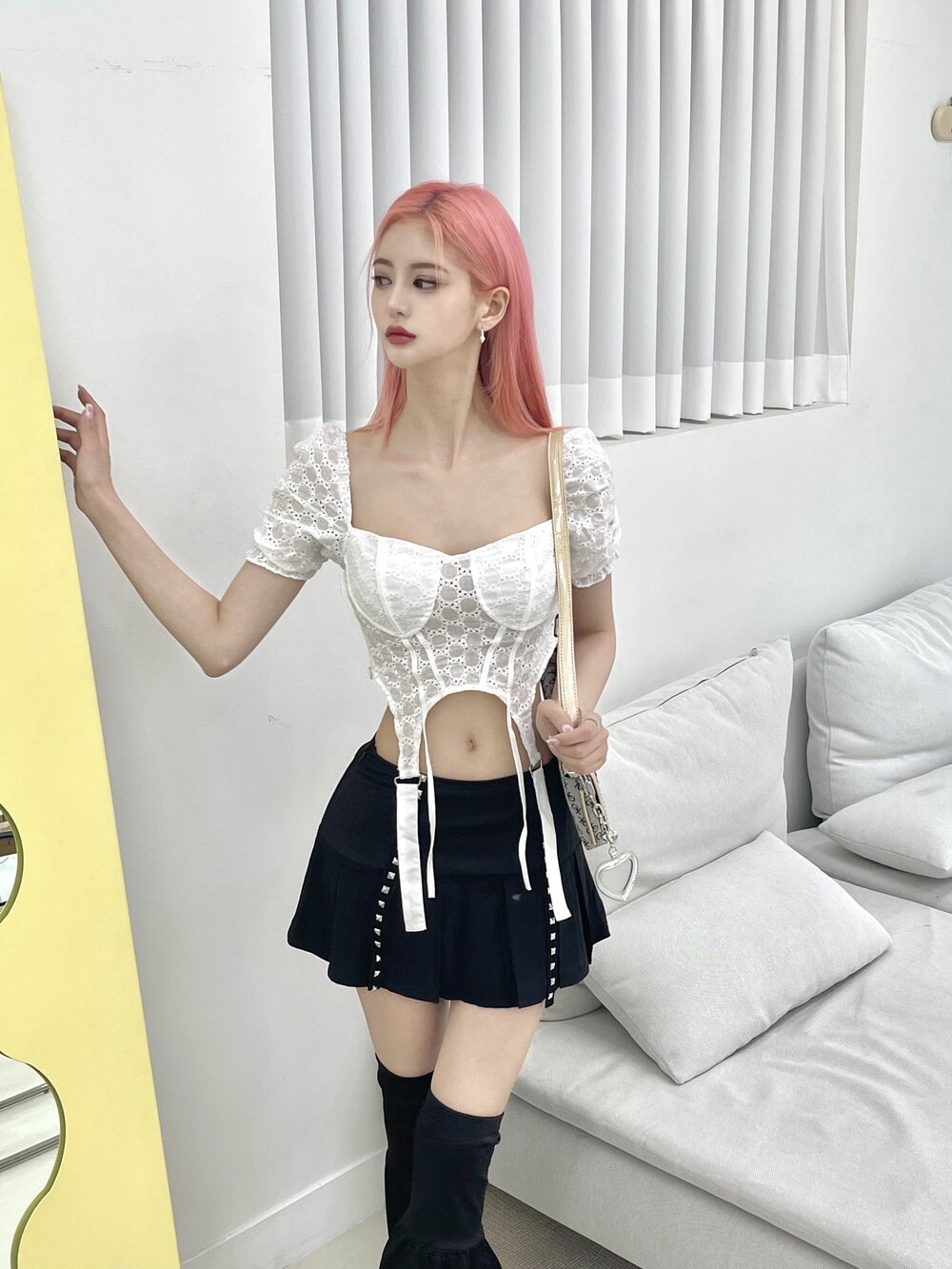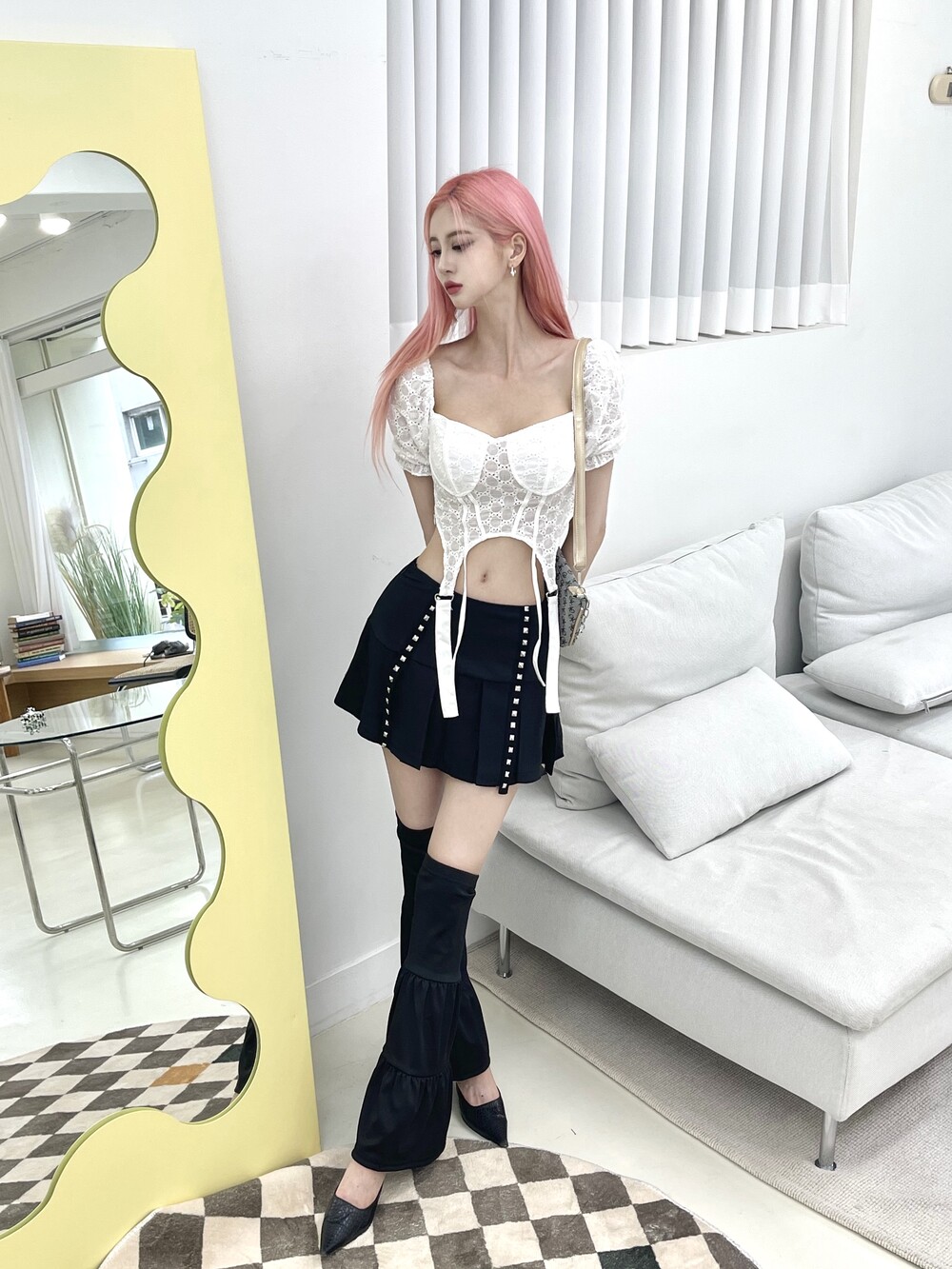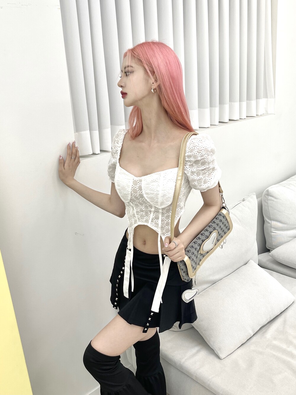 가터 스트랩 포인트가 내려와있어 독특한 블라우스