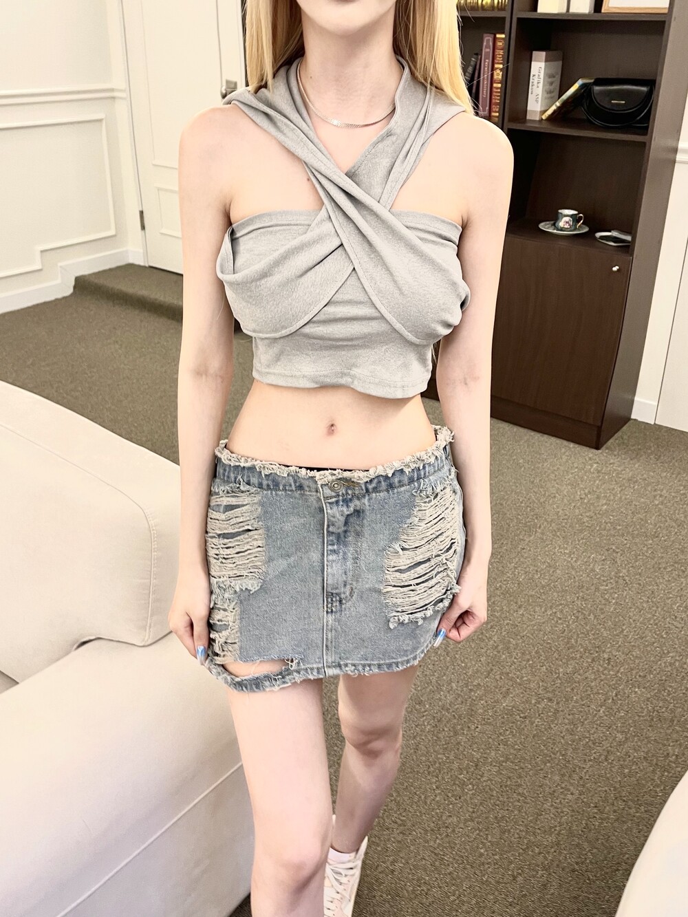 후드가 앞으로 오게 튜브탑을 착용하고 난 후,