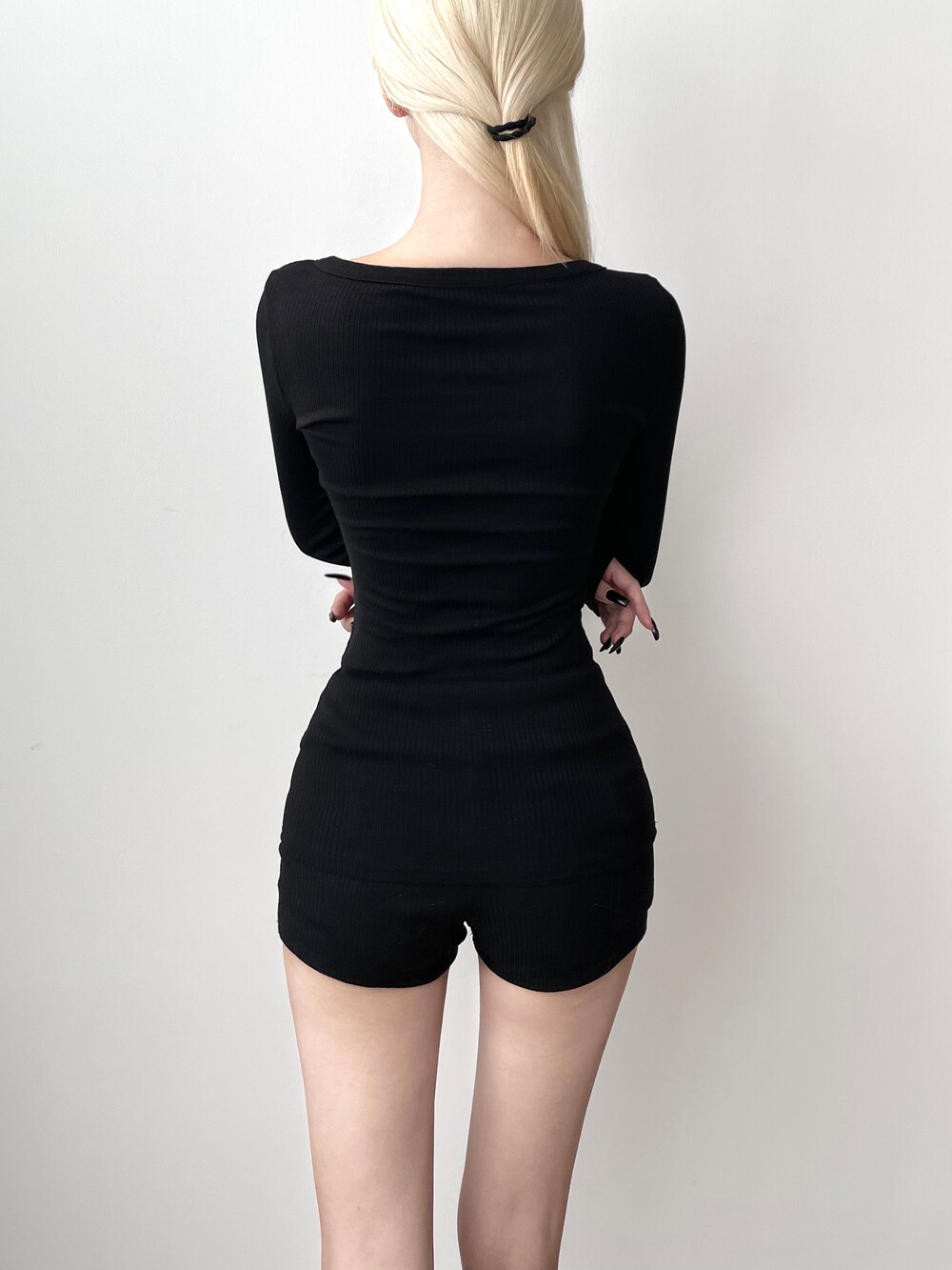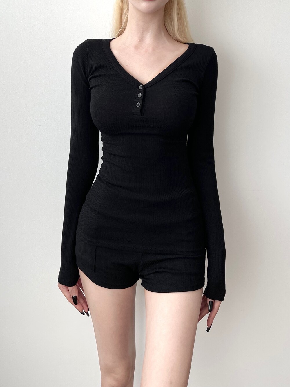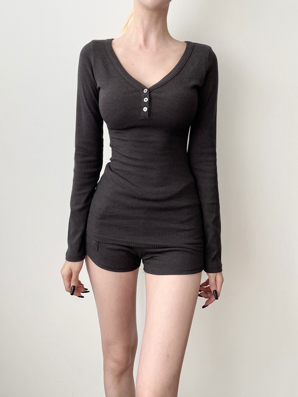 와이드한 네크라인과 오픈클로징 가능한 버튼 디테일