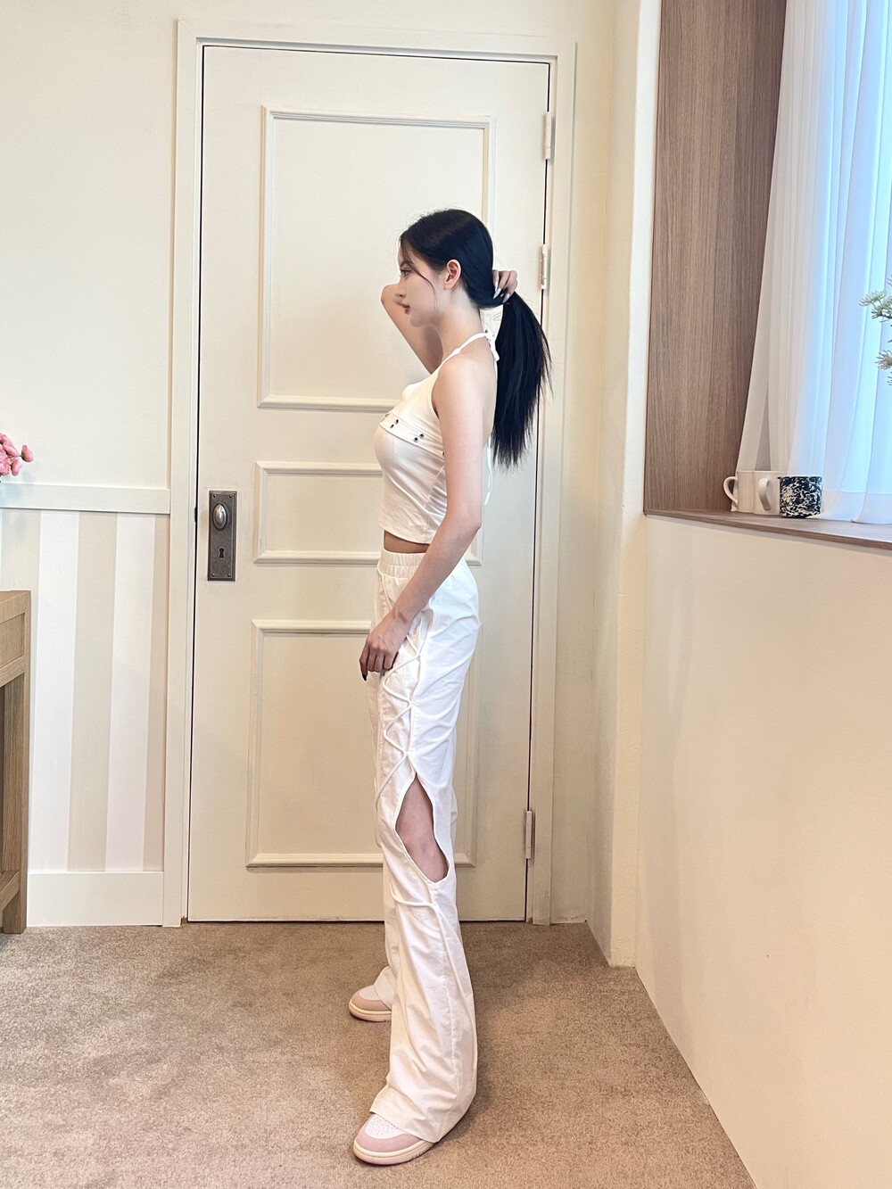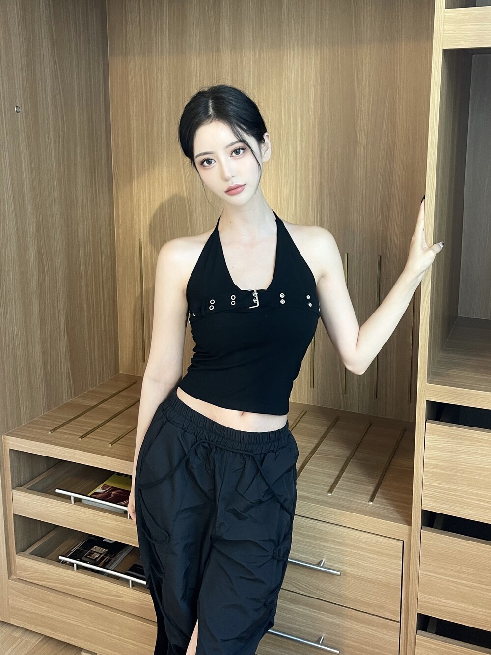 가볍고 부드러운 소재감의 홀터 슬리브리스