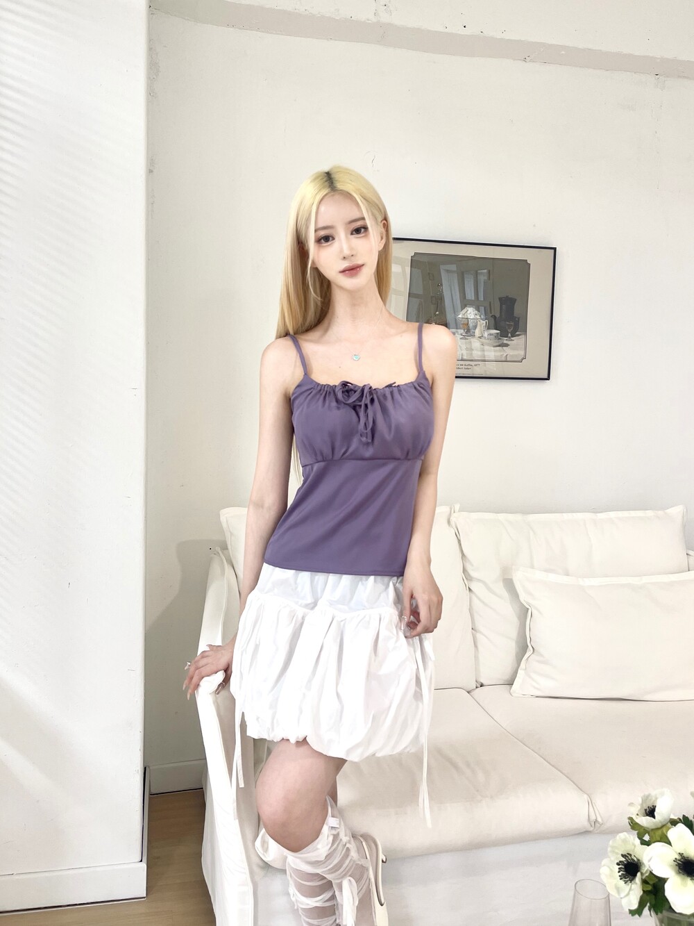 쉬폰 스트랩 리본 시스루 레그 워머
