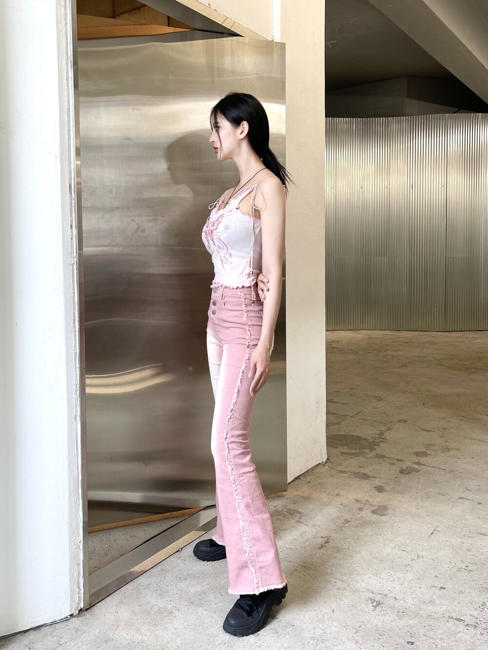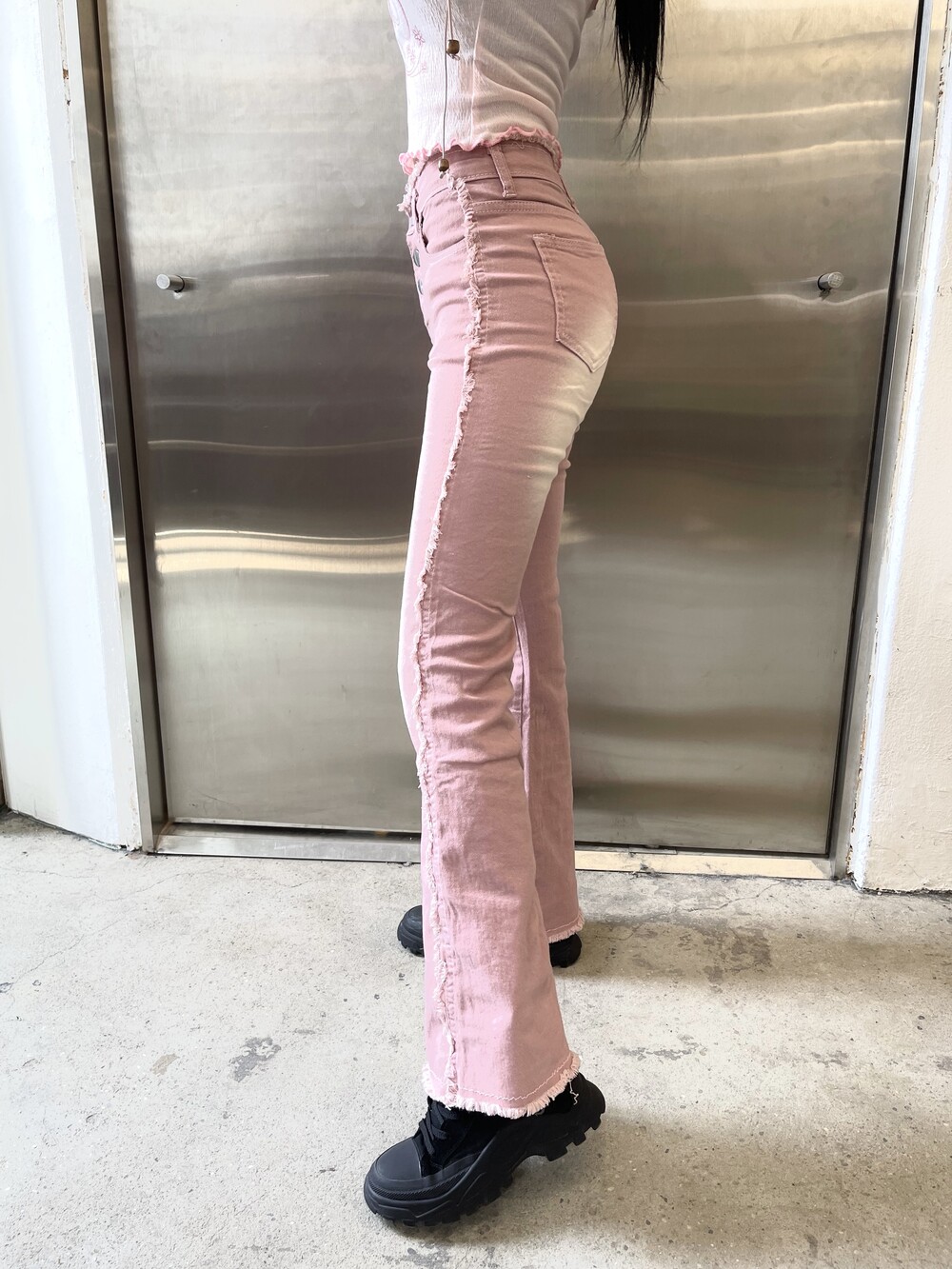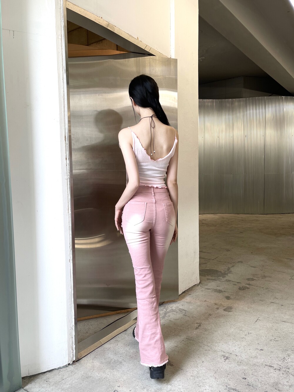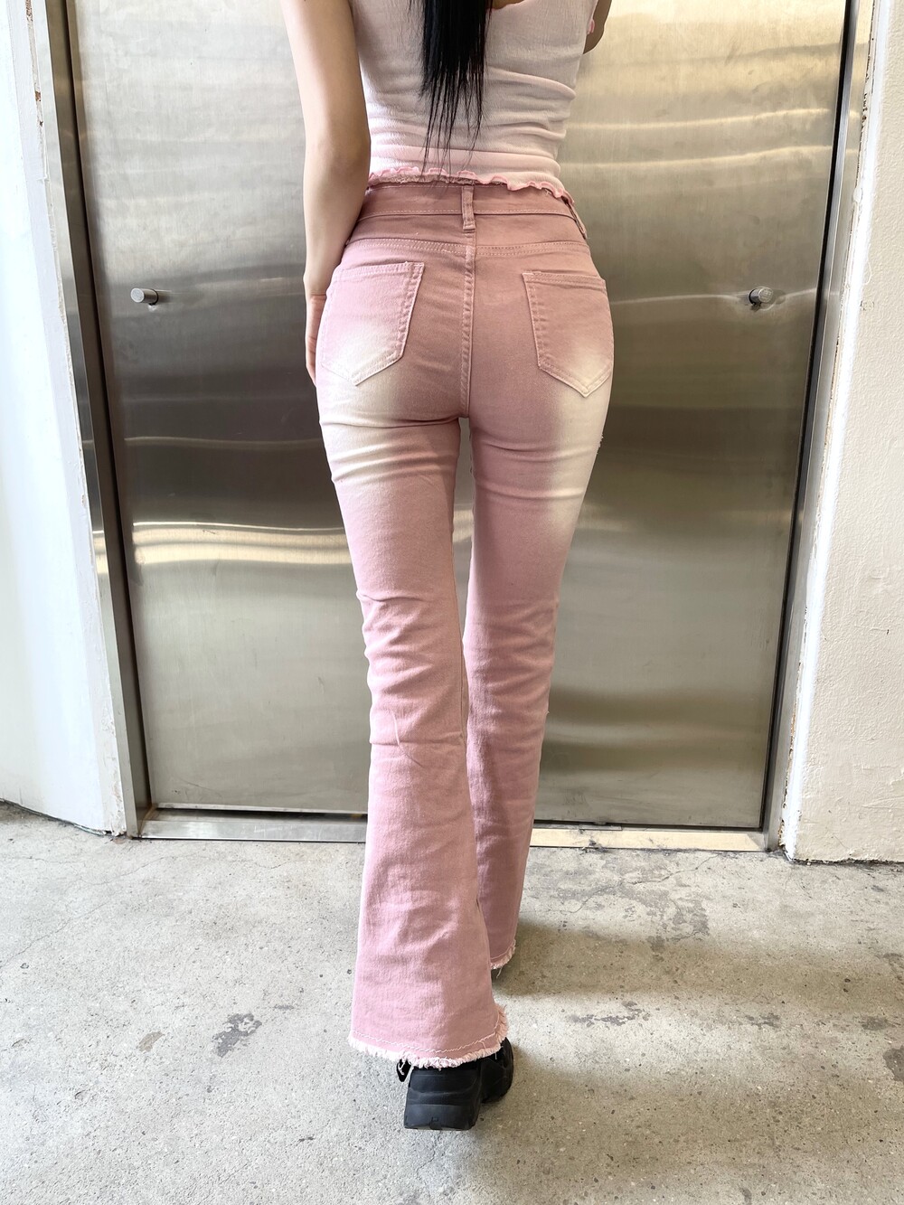 로제핑크 데미지 슬림 부츠컷 팬츠